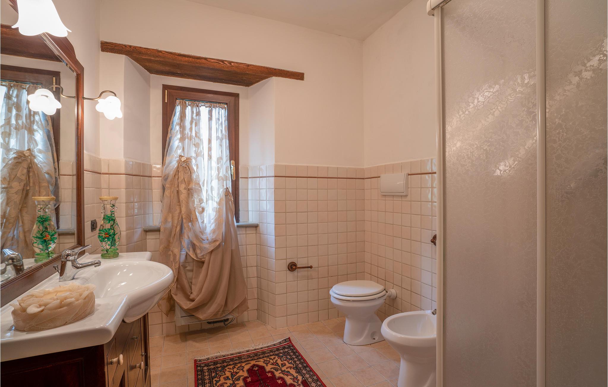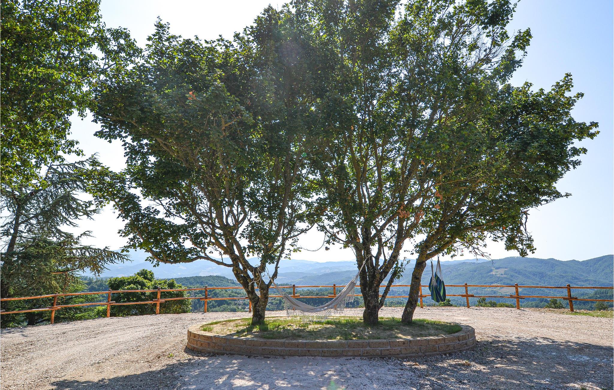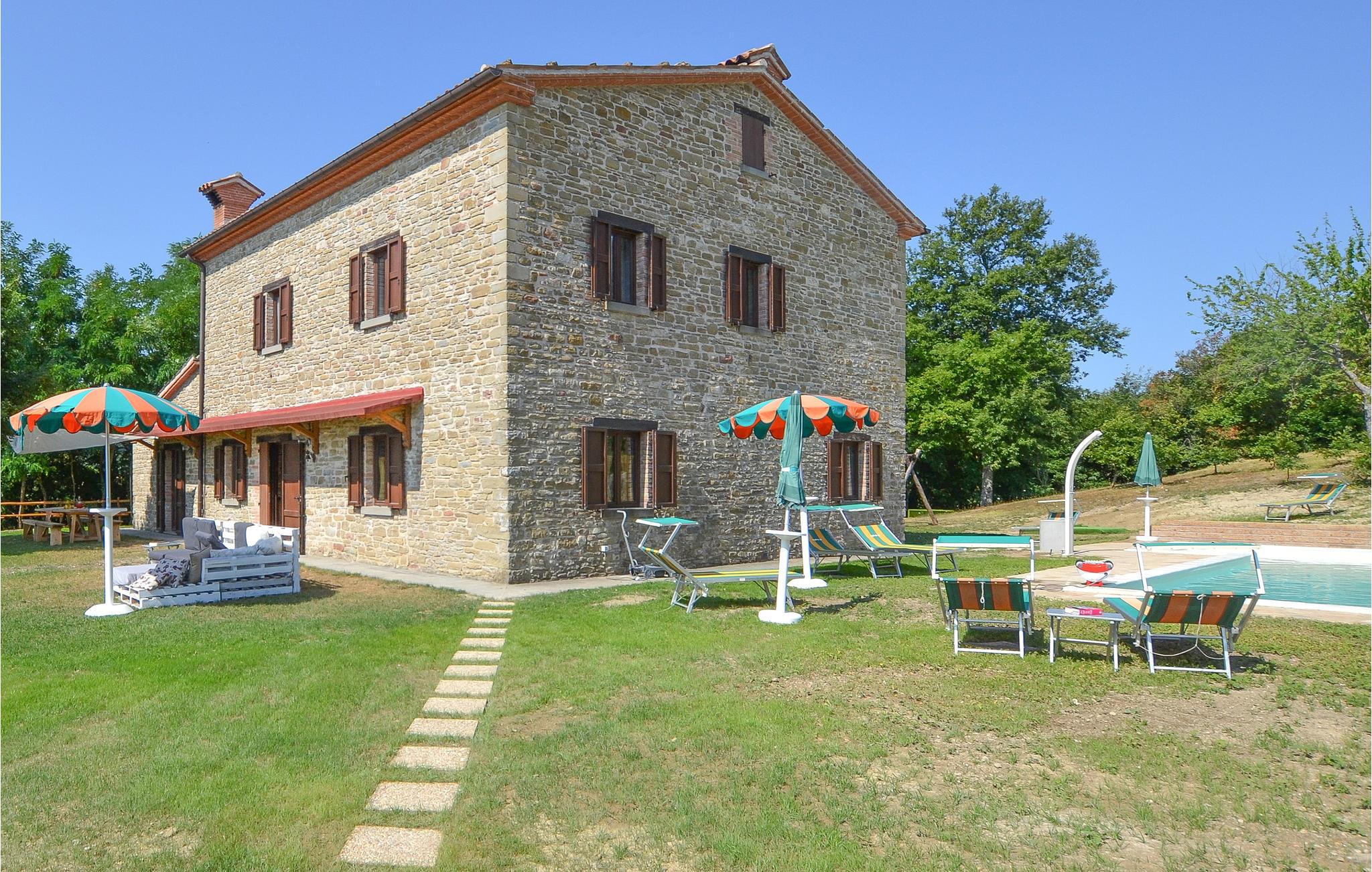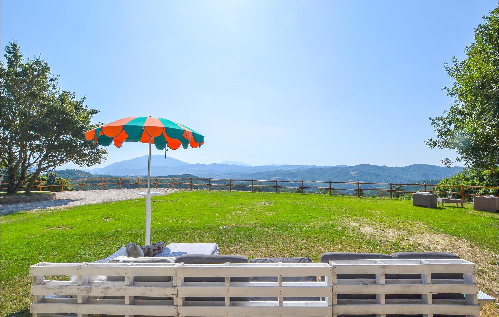 Etwa 9 km oberhalb von Apecchio liegt dieses rustikale Landhaus in Einzellage in 800 m Höhe - ideal für Familien und Gruppen, die ungestört Ferien in der Natur verbringen möchten. Das ehemalige Bauernhaus wurde stilvoll restauriert und eingerichtet. In den beiden einstigen Ställen im Erdgeschoss stehen Ihnen heute zwei Wohnräume mit langer Tafel und offenem Kamin zur Verfügung. Außerdem im Erdgeschoss ein Spielzimmer für die Kleinen! Die vier Schlafzimmer liegen im 1. Stock. Vorm Haus gib es einen schattigen Gartensitzplatz mit Barbecue. Das weitläufige Grundstück ist vollständig umzäunt. Liegestühle zum Sonnen stehen bereit und Platz und Möglichkeiten für Ballspiele – Badminton, Volley, Boccia – gibt es zudem. Von überall haben Sie einen einzigartigen Panoramablick auf die Berge und Hügel der Umgebung; auf den Monte Nerone (1525 m). Wanderwege laden Sie direkt vom Haus aus ein - Trekken und Biken Sie durch diese beeindruckende Landschaft, gezeichnet von weiten Wäldern, schroffen Hängen und kühlen Wildbächen. Ausflugsziele: Neben Apecchio (9 km) ist Castello die nächste größere und durchaus sehenswerte mittelalterliche Stadt (27 km); besichtigen Sie Urbino und Gubbio (je etwa 50 km) und erobern Sie für sich die kleinen netten Städtchen der Umgebung, wo Sie überall die lokalen Spezialitäten probieren können, als da wären: Trüffelgerichte aller Art, ganz besondere Biersorten, Wildgerichte und leckerer Käse. Zur Abwechslung mal ein Tag an der Adria? Nach Pesaro/Fano sind es 77 km. 5,3 km unasphaltierte Zufahrt, für tief liegende Autos nicht geeignet.