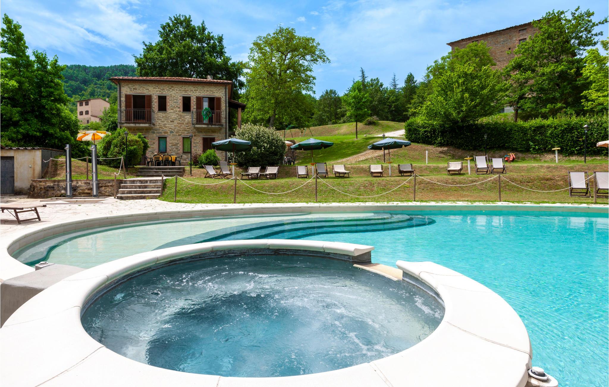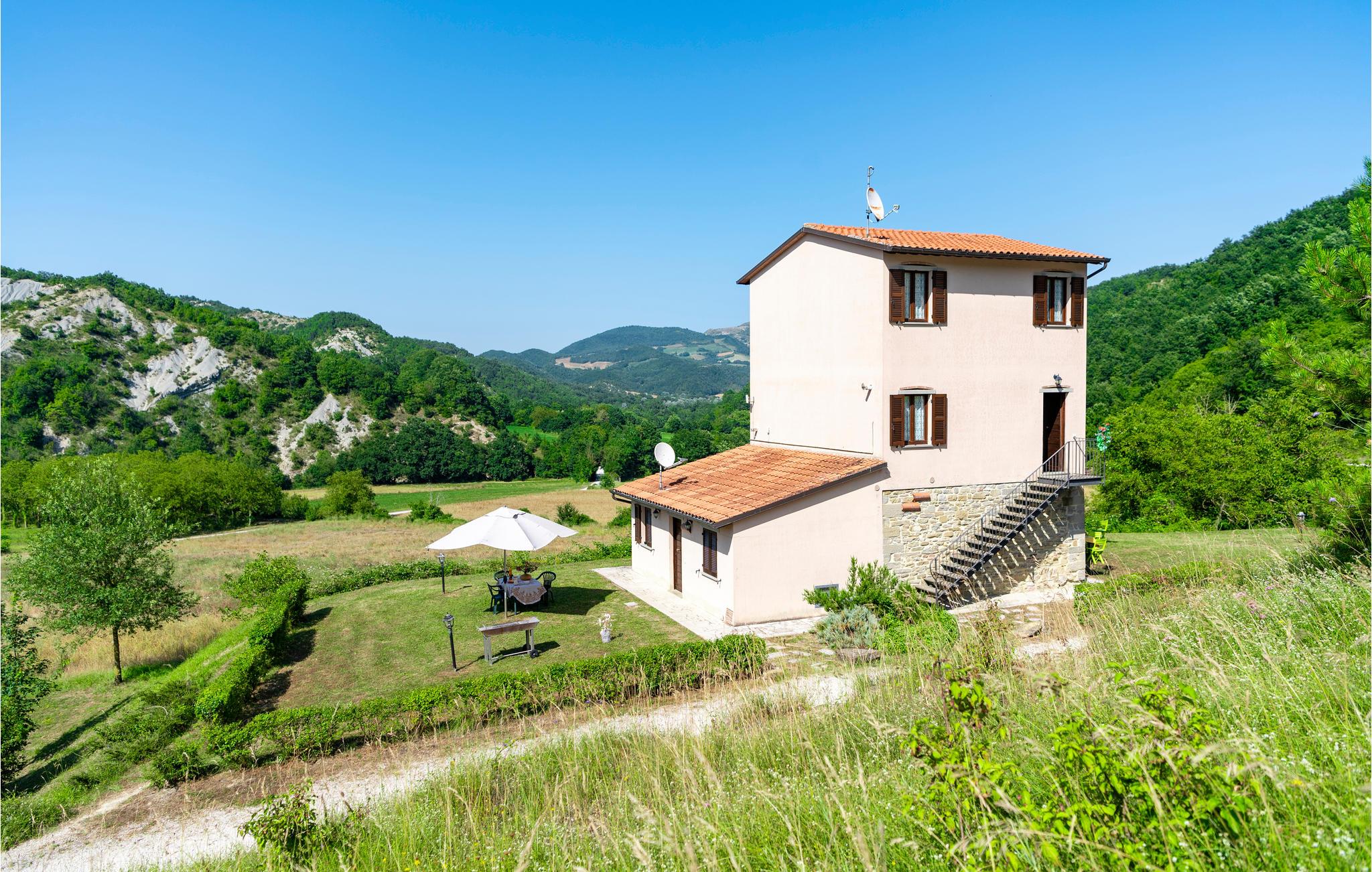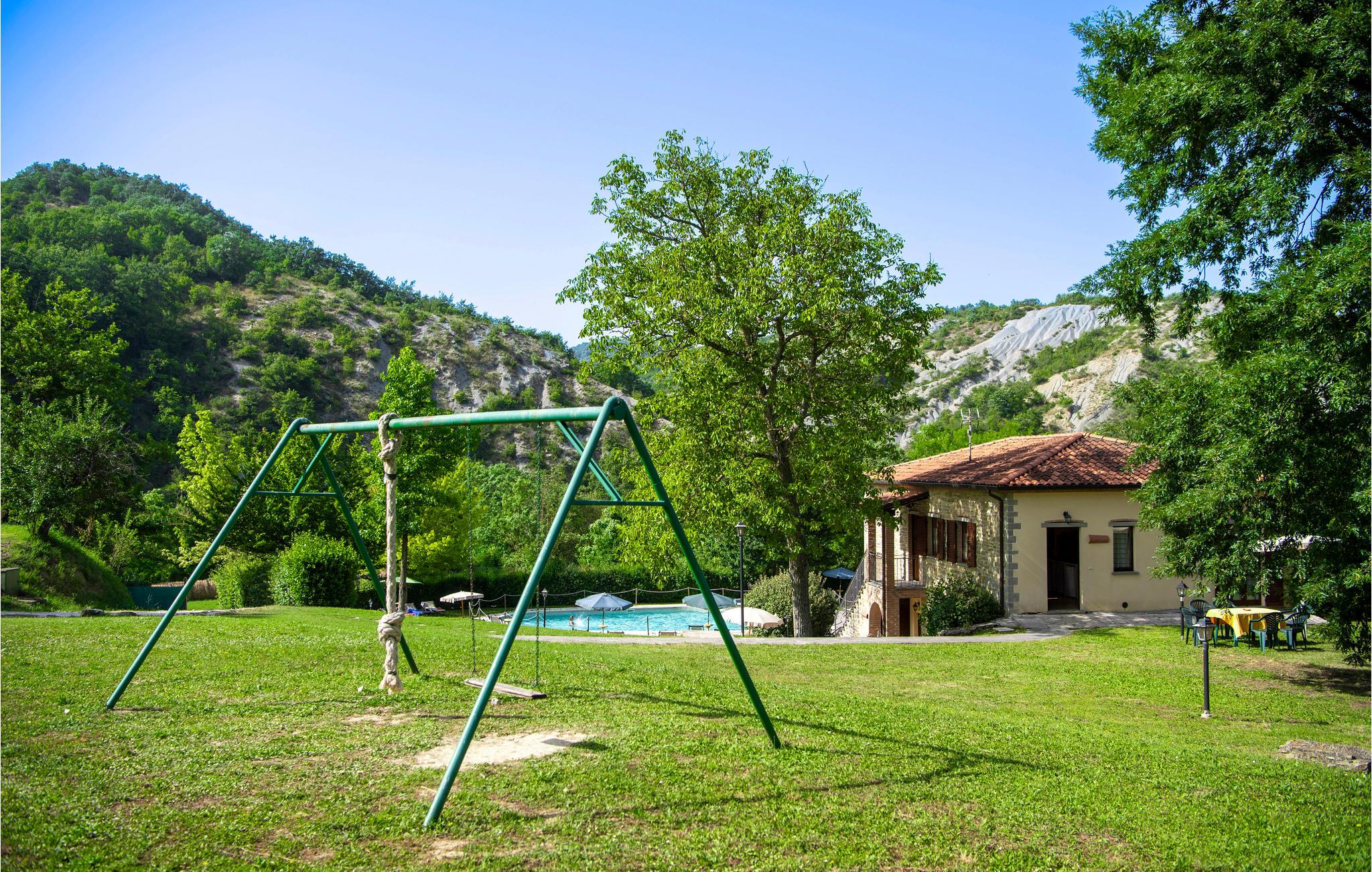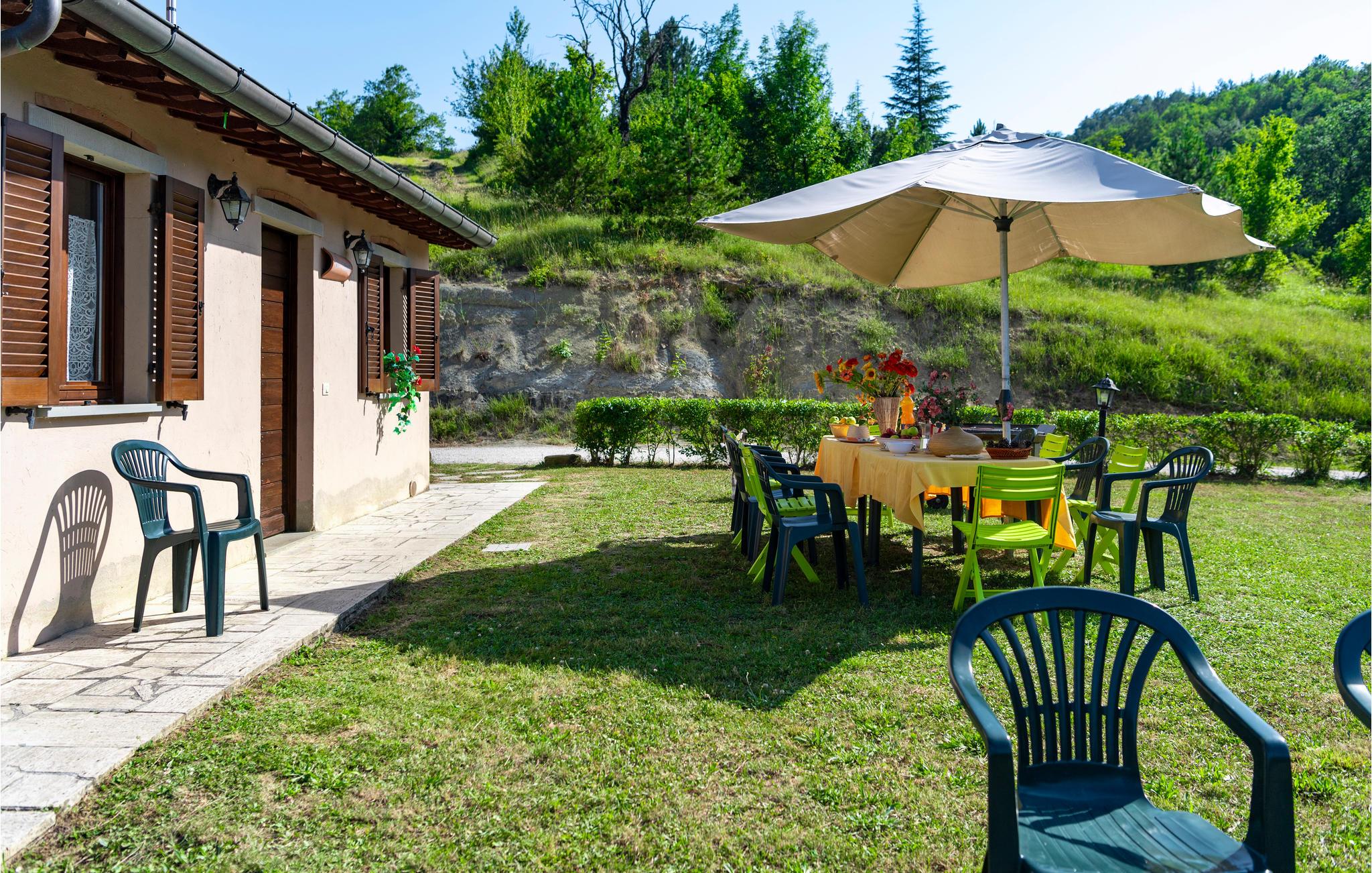 Diese Ferienwohnung befindet sich auf dem Anwesen namens Valguerriera ca. 4 km von Piobbico entfernt in einem Tal im Apennin, ein ideales Reiseziel für all diejenigen, die einen erholsamen Urlaub in unberührter Natur verbringen möchten. Das Anwesen besteht aus dem Herrenhaus und drei Landhäusern, den großzügigen, gemeinschaftlichen Außenbereichen und dem schönen, gemeinschaftlichen Schwimmbad (17x10m) mit Unterwassermassage. In den Landhäusern entstanden insgesamt 11 ansprechend eingerichtete Ferienwohnungen. Die Wohnung verfügt über einen unabhängigen Eingang im eigenen Außenbereich mit Tisch, Stühlen und Sonnenschirm, wo Sie sich entspannen und Ihre Mahlzeiten im Freien einnehmen können. Grill zur gemeinschaftlichen Benutzung. Parkplatz auf dem Grundstück. 1 Babybett verfügbar. Das Anwesen befindet sich in den Marken an der Grenze zu den Regionen Toskana und Umbrien in der Nähe von Piobbico (Provinz Pesaro und Urbino), in einem ruhigen Tal namens Candigliano, eins der schönsten und ursprünglichsten Täler im Hinterland von Pesaro, das über ein mildes Klima verfügt und von wo aus Sie einen wundervollen Blick auf den Apennin genießen. In der Umgebung finden Sie Kunst- und Renaissancestädte wie beispielsweise Urbino, UNESCO-Welterbe, bezaubernde, mittelalterliche Dörfer wie Piobbico, Apecchio, Sant’Angelo in Vado und Acqualagna, bekannt für ihre Trüffel, oder Urbania, Cagli, San Marino, Gradara und San Leo. Die Lage des Anwesens ist günstig auch für etwas weitere Tagesausflüge nach Gubbio, Assisi, Perugia, Città di Castello, Arezzo, San Sepolcro, Loreto, Florenz und Siena, alles Orte von großem, kunsthistorischem Interesse, oder nach San Marino, zur Burg von Gradara, den Grotten von Frasassi bzw. zum Furlopass. ENTFERNUNGEN: 4 km Piobbico (Lebensmittelgeschäft und andere Einkaufsmöglichkeiten, Bank, Apotheke, Arzt), 30 km Urbino, 55 km Fano und die Strände der Adriaküste, die man in etwa einer Autostunde erreicht. 6 km ein Wellnesscenter und 10 km entfernt eine Reitbahn. Möglichkeit zu geführten Ausflügen. Die 11 Ferienwohnungen und das unabhängige Ferienhaus, das sich aus 3 der insgesamt 11 Ferienwohnungen zusammensetzt, haben die folgenden Referenznummern: IMM127/422/423/424; IMM128/129/130/131; IMM421/412/419/420. Als Willkommensgeschenk erhalten die Gäste eine Flasche Wein und eine Weinprobe (einmal pro Woche) in einem Weinkeller mit Weinen und typischen Produkten. Für Gäste gibt es auch Sonderpreise bei einem 10 km entfernten Ausritt und bei einem 6 km entfernten Wellnesscenter. WLAN in den Außengemeinschaftsbereichen.