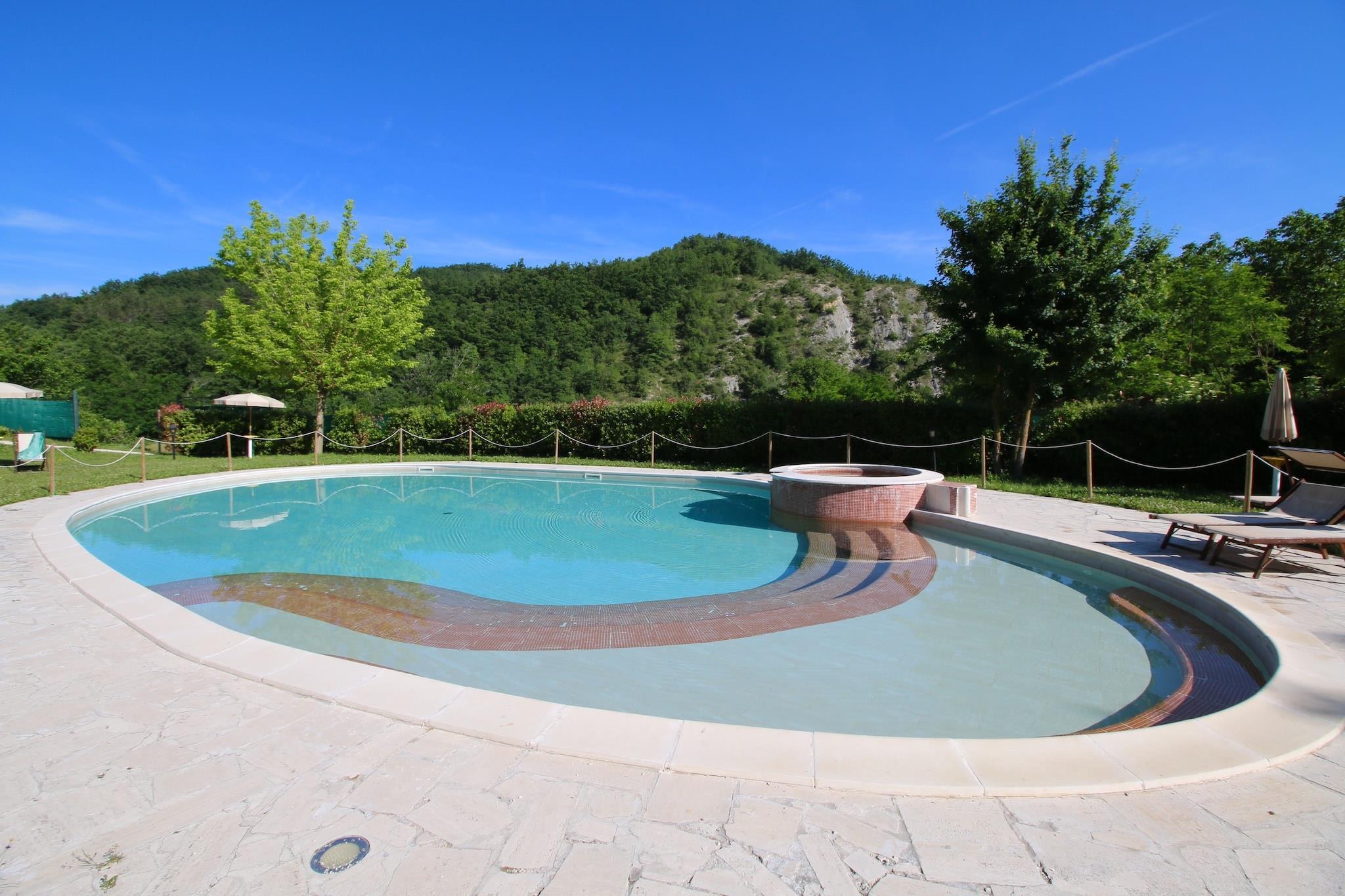 Ruhiges Landidyll mit Pool-Charme Versteckt im ruhigen Candigliano-Tal bietet dieses gemütliche Apartment einen erholsamen Rückzugsort inmitten sanfter Hügel, üppiger Natur und unendlicher Ruhe. Das Apartment Sorgo ist Teil eines liebevoll restaurierten Landhauses mit nur wenigen, weit voneinander entfernten Häusern, was Gästen die perfekte Mischung aus Gemeinschaft und Privatsphäre bietet. Das Apartment, direkt neben dem Gemeinschaftspool gelegen, verfügt über eine private Terrasse, einen hellen, offenen Wohnbereich mit Doppelschlafcouch, ein separates Schlafzimmer und eine voll ausgestattete Küche – ideal für Familien oder Freunde. Entdecken Sie die Schönheit Umbriens und der Marken An der ruhigen Grenze zwischen Umbrien und den Marken gelegen, ist dieser Ort ideal für Naturliebhaber, Wanderer und Kulturinteressierte. Entdecken Sie nahegelegene Städte wie Piobbico, Apecchio und Sant’Angelo in Vado oder erleben Sie einen Tag voller Kunst und Architektur in Urbino, Gubbio und Perugia. Haustierbesitzer werden die 200 km Wanderwege lieben, die vom Anwesen aus erreichbar sind – ideal für lange Spaziergänge mit Ihrem Hund. Nur 10 km entfernt gibt es einen Reitstall, Fahrradverleih und malerische Bergrouten, die Sie gemeinsam erkunden können. Regionale Köstlichkeiten & lokale Gastfreundschaft Genießen Sie die regionale Küche in beliebten Restaurants wie der Locanda Val Pietro, dem Ristorante La Carrareccia oder dem Montenerone, wo Pilze, Trüffel und Holzofenpizza zu den Spezialitäten gehören. Jeder Aufenthalt beinhaltet eine kostenlose Flasche Wein, und im Sommer findet wöchentlich eine kostenlose Weinprobe im Haupthaus statt. Entspannen Sie nach einem erlebnisreichen Tag am Pool, während Ihr Haustier im Schatten ein Nickerchen macht – ein wahres Naturparadies für alle.