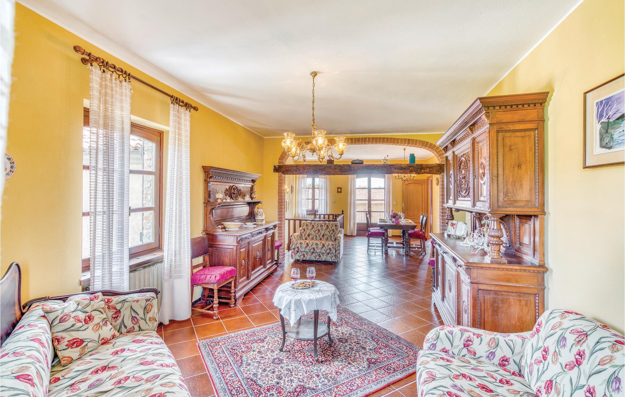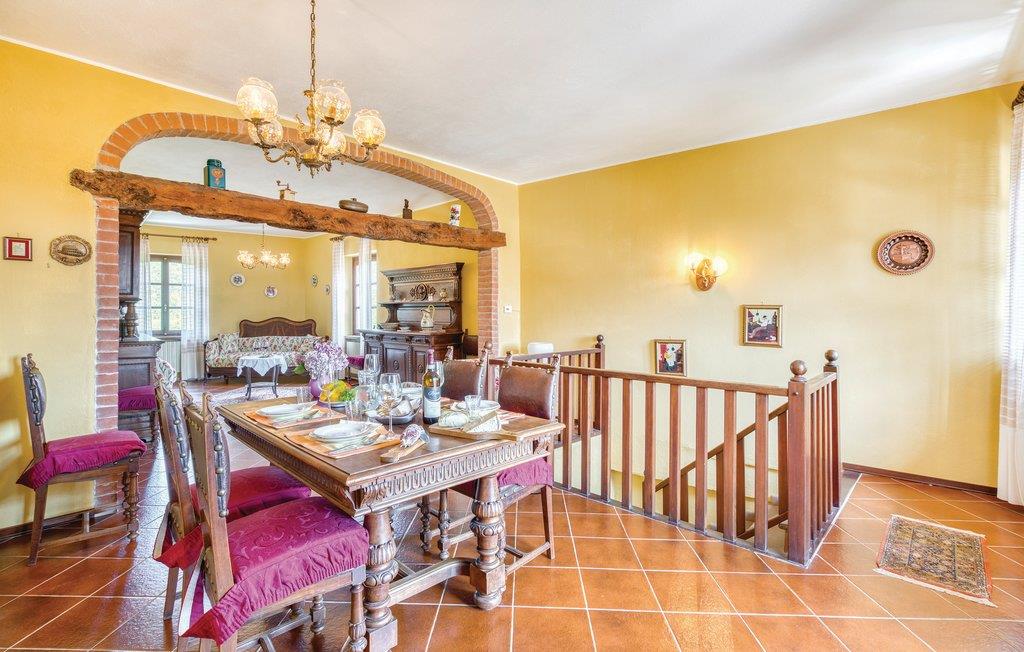 Ferienhaus mit ländlichem Charme in Aramengo im Gebiet des Monferrato. Großer, eingezäunter Außenbereich, ausgestattet mit Tischen, Stühlen, Liegestühlen und Grill, wo sich Erwachsene entspannen und Kinder spielen können. Verfügbar auf Anfrage und gegen Gebühr: Catering-Service, Weinprobe in den verschiedenen Weinkellern der Gegend, Kochkurs und Trüffelsuche mit lokalen Experten. Aramengo, Stadt in der Provinz von Asti, ist guter Ausgangspunkt zur Besichtigung von naheliegenden Städten, die reich an Geschichte, Schlössern und Naturschönheiten sind. Die Stadt ist umgeben von der typischen ländlichen Atmosphäre des Piemonts zwischen Wäldern, kleinen Dörfern und Weinbergen, eine Region die für die Vielfalt an önogastronomischen Produkten, in denen der Trüffel König ist, bekannt ist. Im Juli findet hier ein berühmtes Rockfestival statt. 80 km Acqui Terme mit seinem berühmten Thermalwasser mit einer großen Auswahl an Spas zum Entspannen, wo man sich entspannen kann. Turin, die erste Hauptstadt Italiens mit seinen Museen und Denkmälern, liegt 49 km entfernt. In Turin sollten Sie nicht das berühmte ägyptische Museum und den Palast von Venaria Reale (51 km), die ehemalige königliche Residenz, die in der Liste des Unesco-Erbes aufgeführt ist, verpassen. Mailand mit seinen Einkaufsstraßen liegt 134 km entfernt und ist leicht erreichbar. Geschlossene Räume im Erdgeschoß.