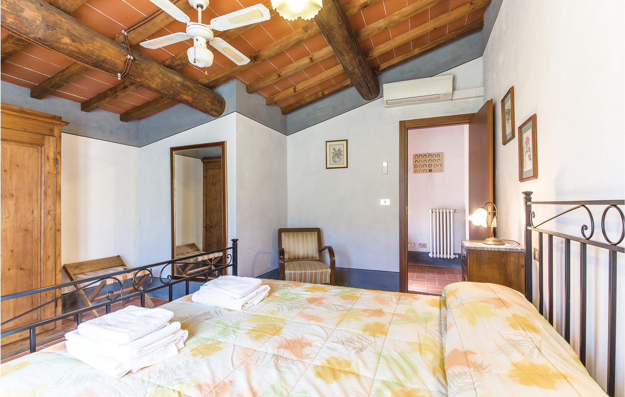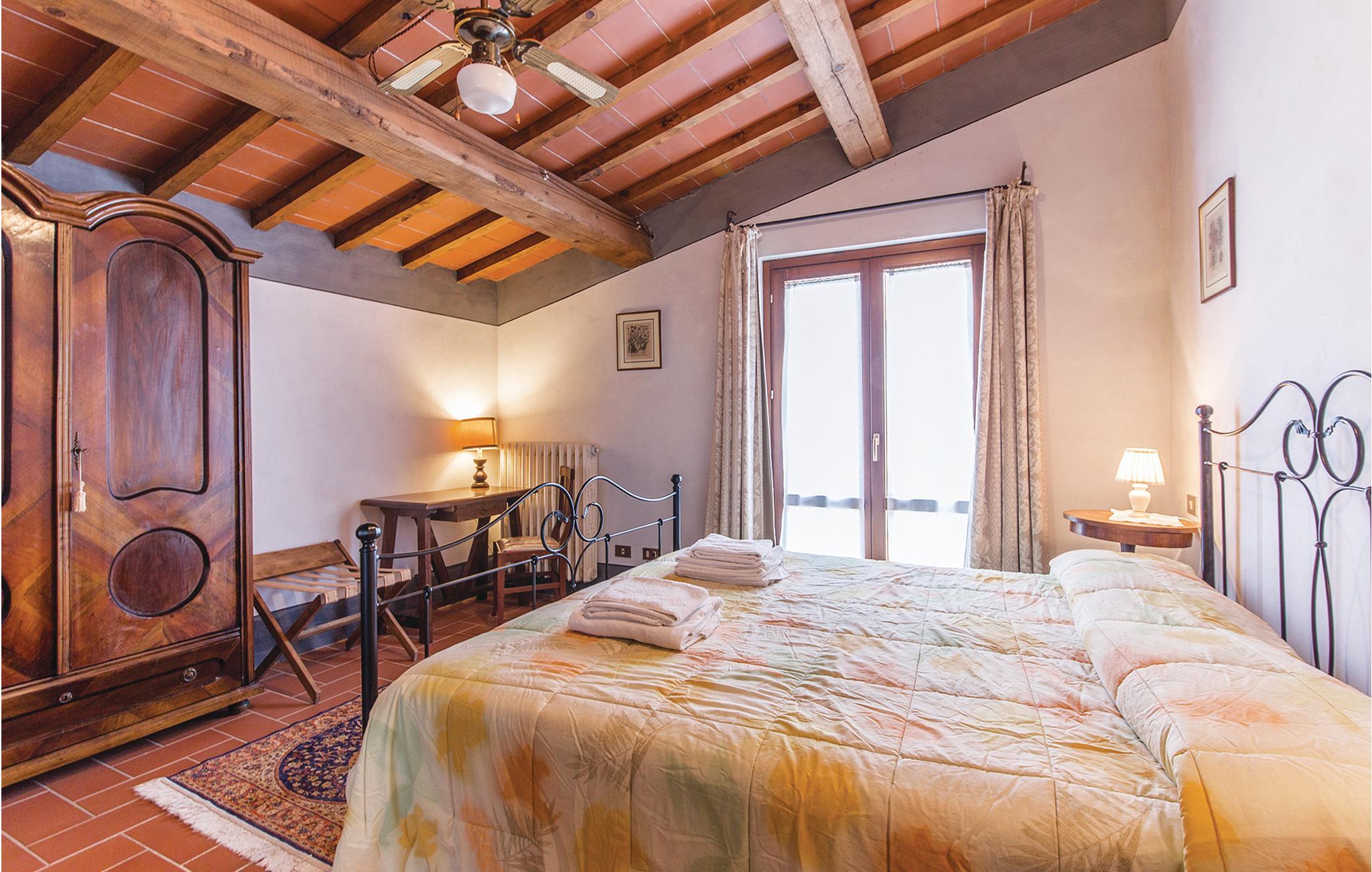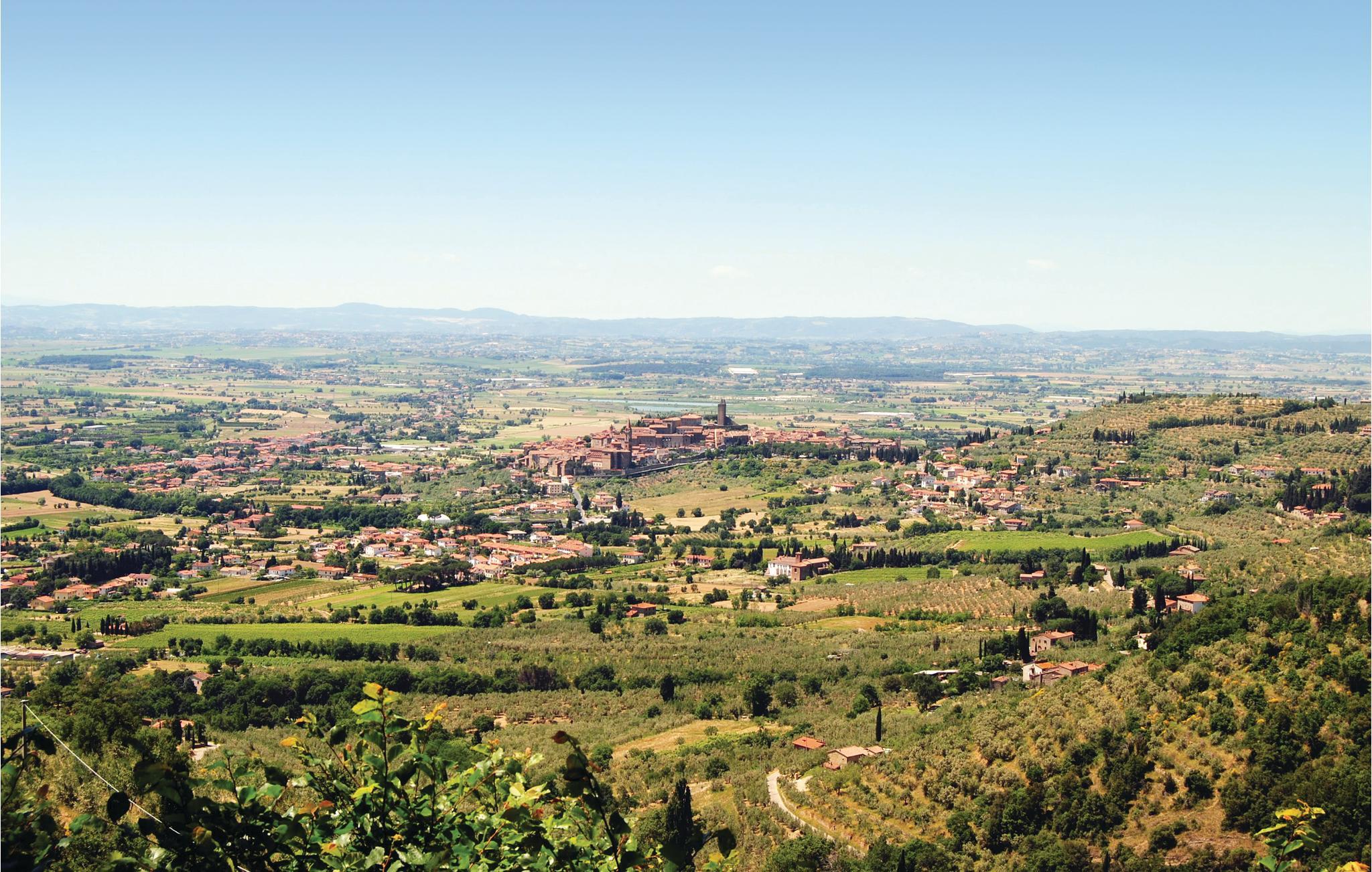 Etwa 7 km von Arezzo: Zwei originelle Ferienwohnungen (S. auch ITA117) mit großem Pool und weitem Blick über das Chiana-Tal. Die beiden geschmackvoll eingerichteten Ferienwohnungen sind im bäuerlichen Nebengebäude einer ehrwürdigen toskanischen Villa entstanden. Jede Wohnung hat auf dem großen parkähnlichen Grundstück einen eigenen Gartenbereich mit Sitzplatz und Barbecue. Besonders der große, rund geschwungene Pool ist ein Traum! Von den Sonnenterrassen genießen Sie einen weiten Blick über das Tal. Von hier aus erreichen Sie im Nu die alten Etruskerstädte Arezzo und Cortona (18 km) mit ihren berühmten Museen und Kirchen in der malerischen Altstadt, die zum Flanieren und zum Aperitivo auf der Piazza einlädt. Für einen Tagesausflug nach Florenz (70 km) und Rom (200 km) empfehlen sich auch die günstigen Bahnverbindungen von Arezzo aus. Den Lago Trasimeno mit seinen Sandstränden und romantischen Inselchen erreichen Sie in weniger als einer halben Stunde (30 km).