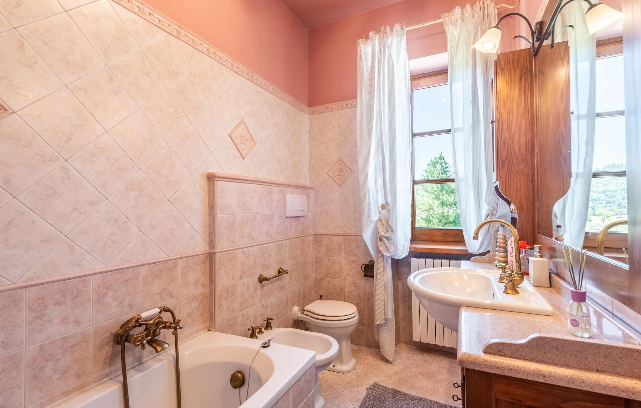 Badezimmer (nr. 2) - WC. Warmes und kaltes Wasser. Badewanne