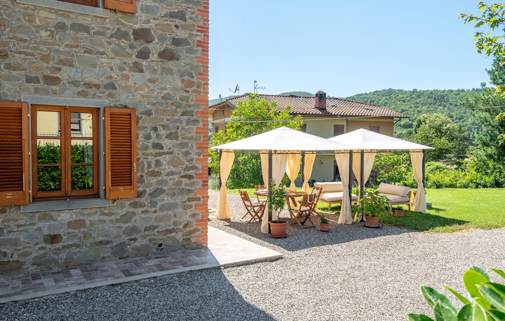 Willkommen in diesem gepflegten und gemütlichen Steinhaus. Kommen Sie mit Ihrer Großfamilie an und genießen die Ruhe der umgebenen Landschaft. Das schöne Haus bietet Ihnen eine gute Ausstattung. Veranstalten Sie in der großen Küche Kochabende oder entspannen Sie sich im Wohnraum, wo Sie an kühleren Abenden oder Tagen ein wärmendes Kaminfeuer genießen können. Die schöne Terrasse mit Ausblick auf die Landschaft lädt Sie ein in geselliger Runde, unter freiem Himmel, Ihre Lieblingsgerichte zu genießen und Pläne für die anstehenden Tag zu schmieden.