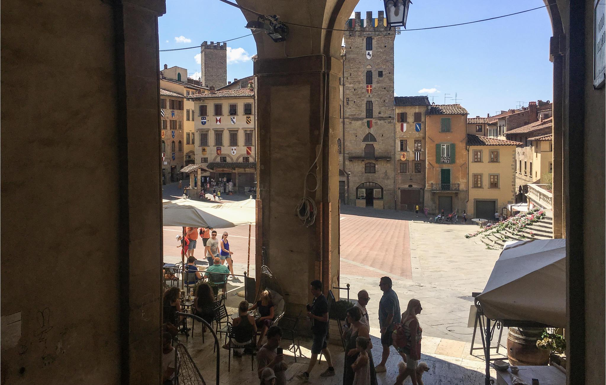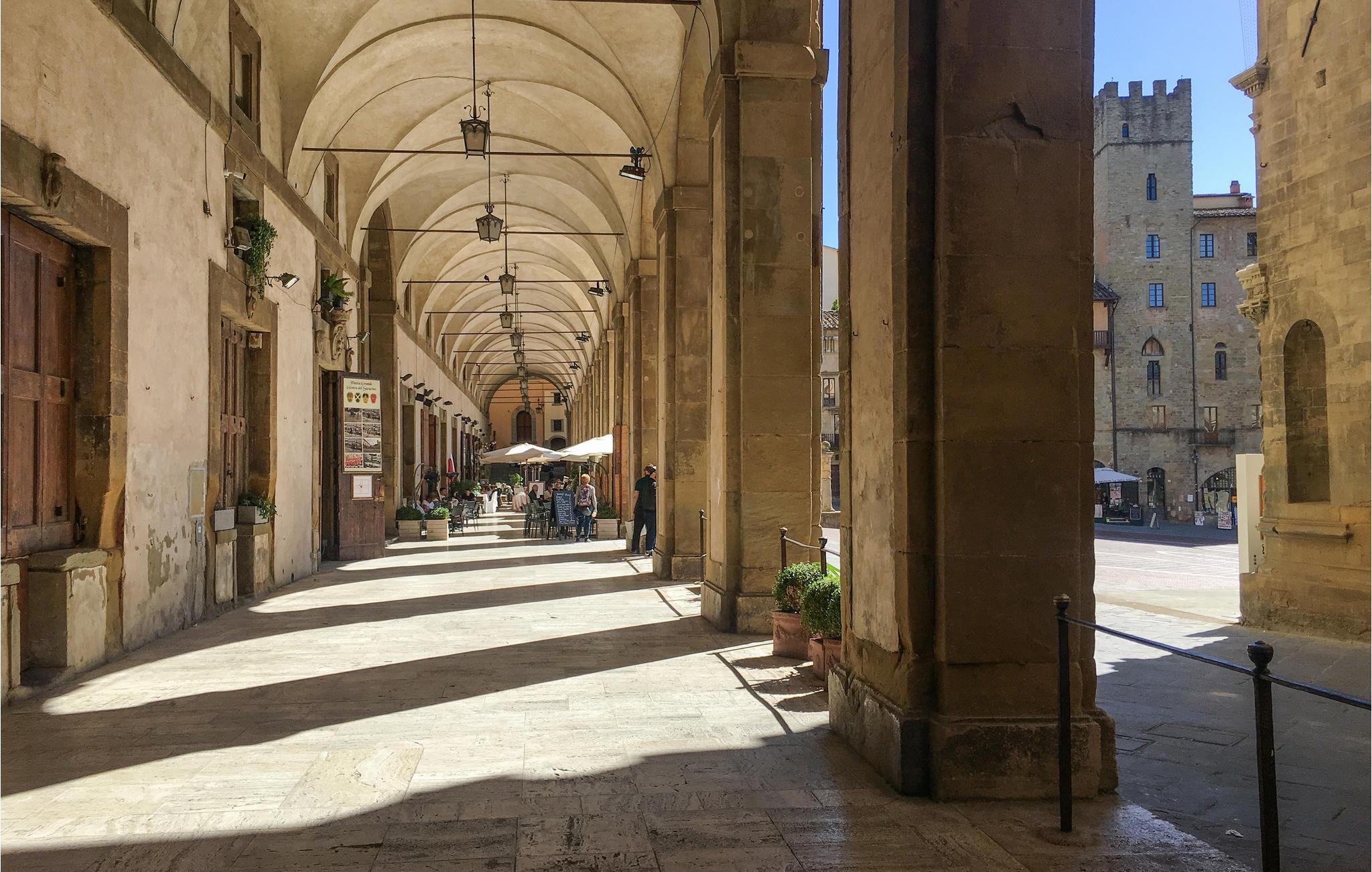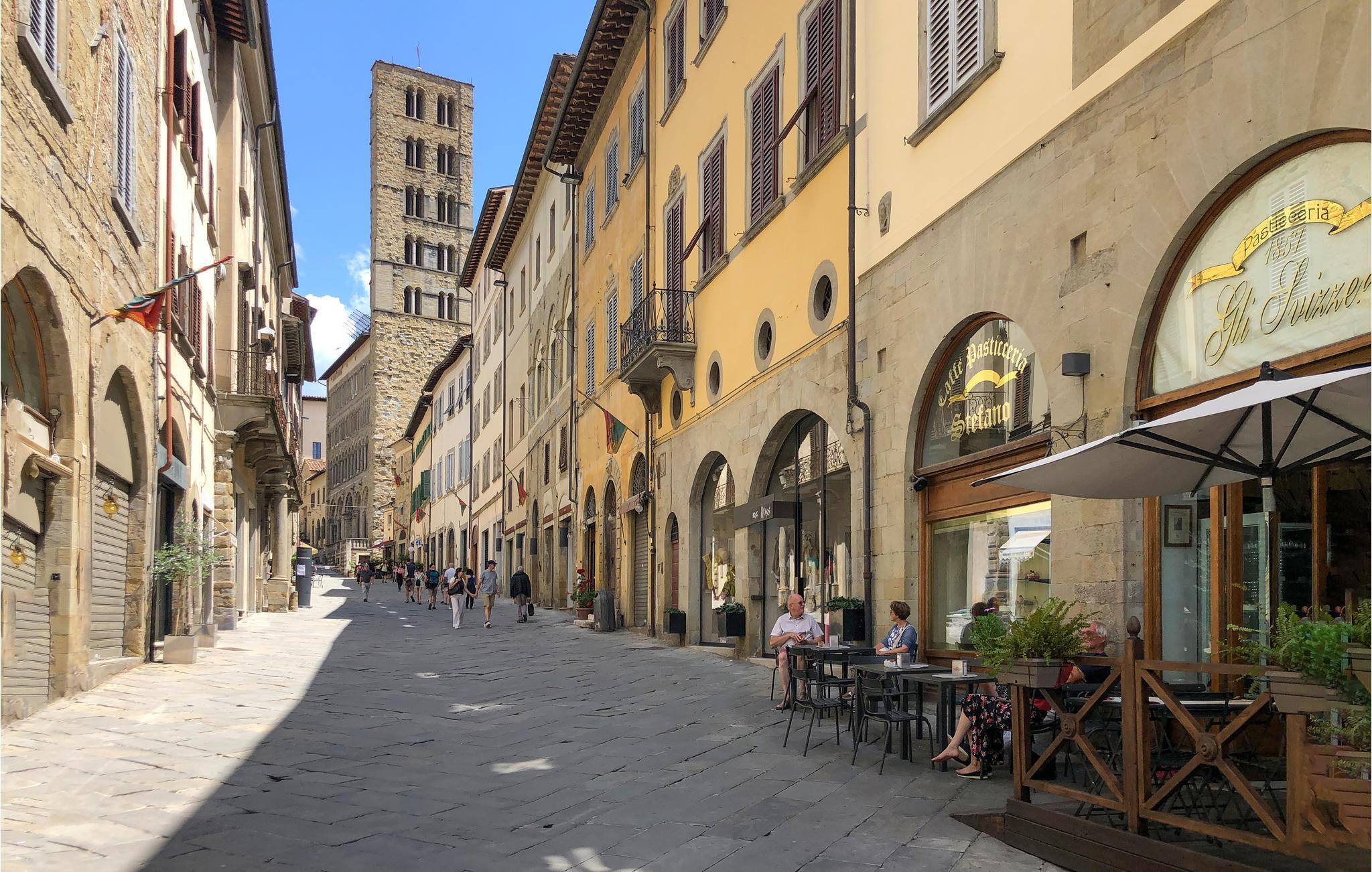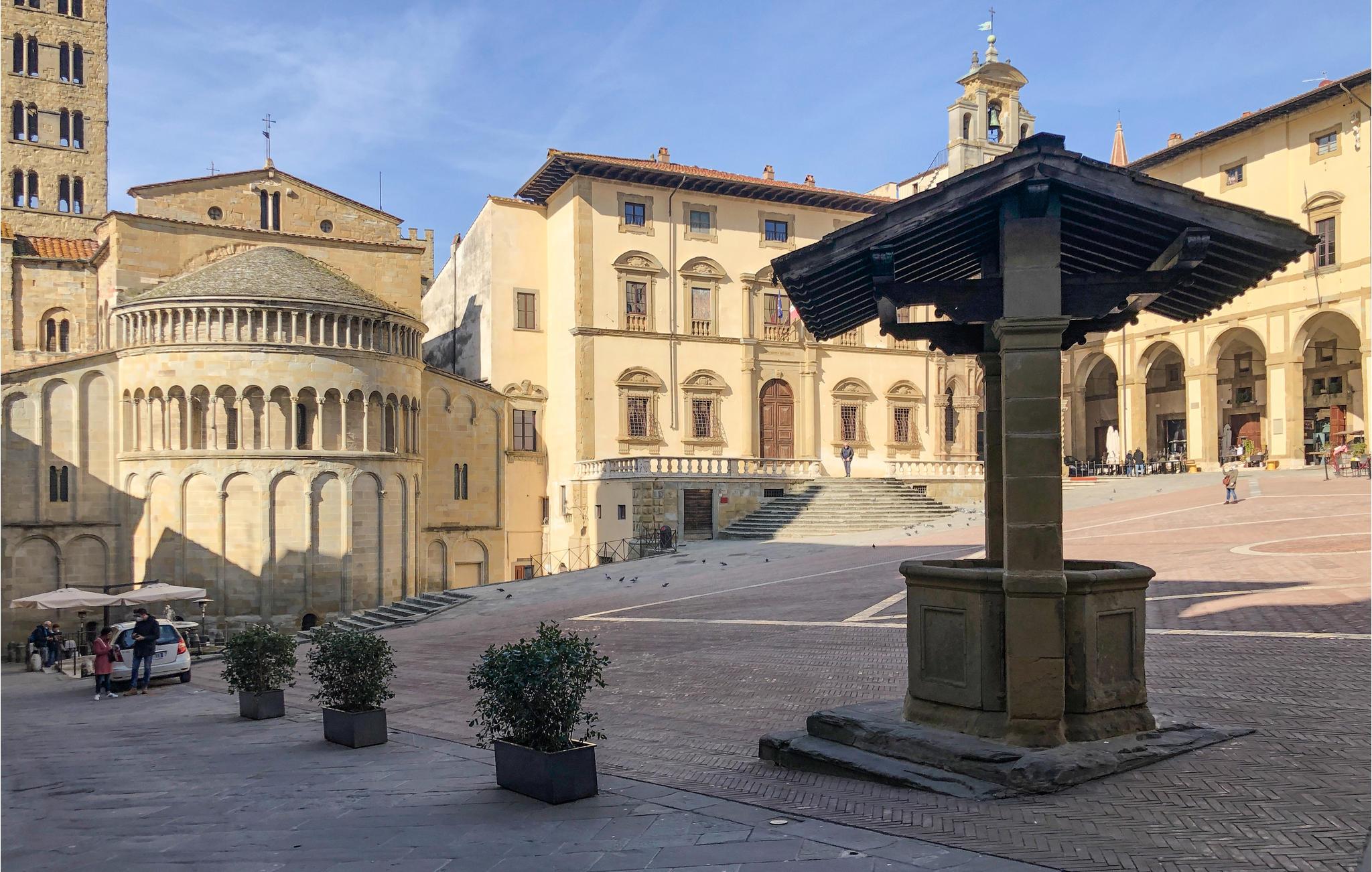 Flanieren Sie durch die Gassen der uralten Stadt Arezzo und bewundern Sie u.a. die Kathedrale von Arezzo. Auf der lebhaften Piazza Grande mit mittelalterlichen Steinhäusern können Sie Arezzos eigenen Chianti trinken und die Atmosphäre aufsaugen. Die mittelalterliche Perle des Chianti-Gebiets ist auch bekannt für den Film "Das Leben ist schön" von Roberto Benigni und das jährliche Musikfestival Arezzo Wave. Die Stadt liegt auf einer Anhöhe mit Blick auf ein sanftes Meer von Weinreben und zwischen den vier Tälern Val Tiberina, Casentino, Valdarno und Valdichiana. Das idyllische Umland bietet Ihnen daher die besten Bedingungen für herrliche Wandertouren.