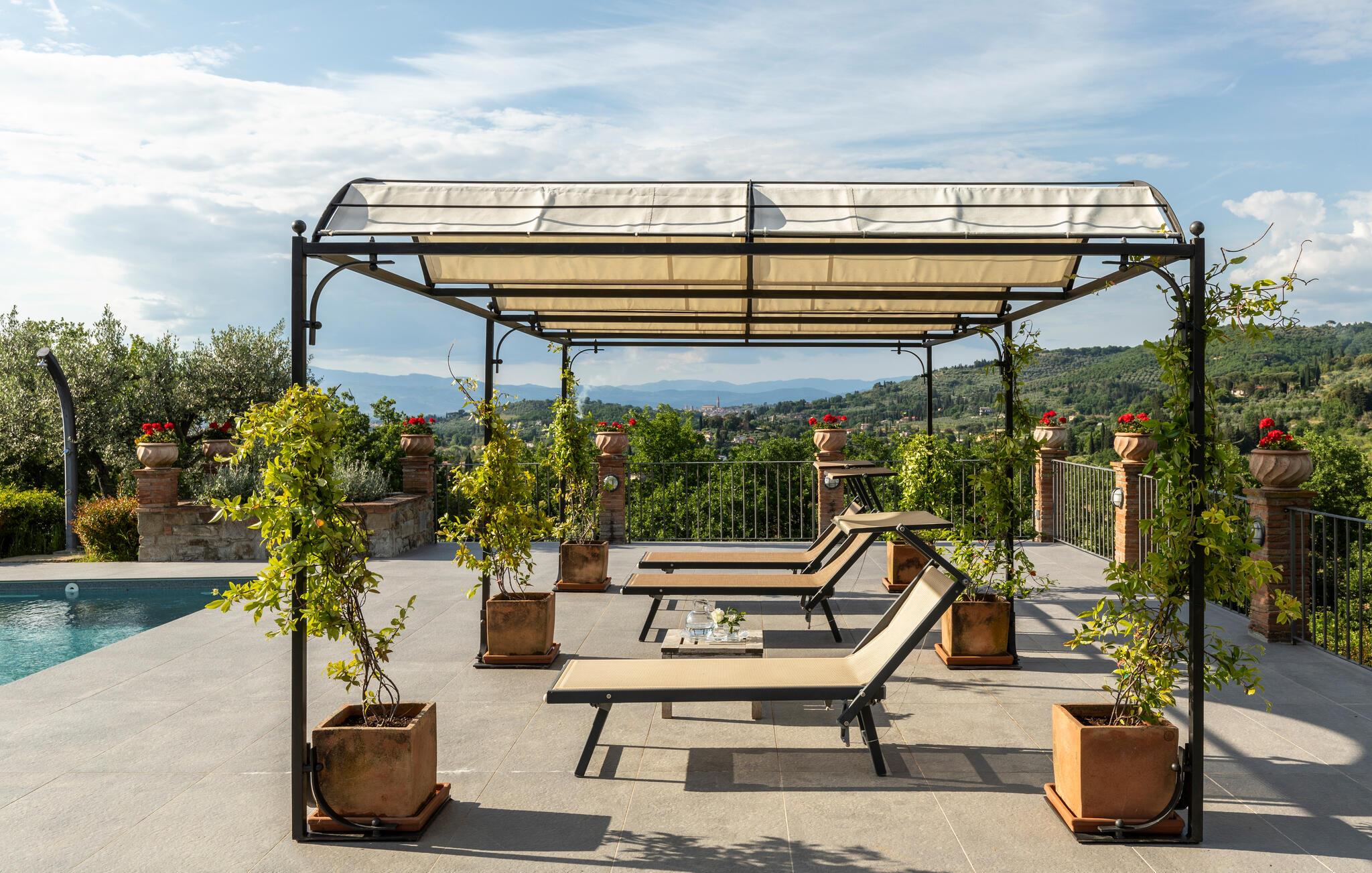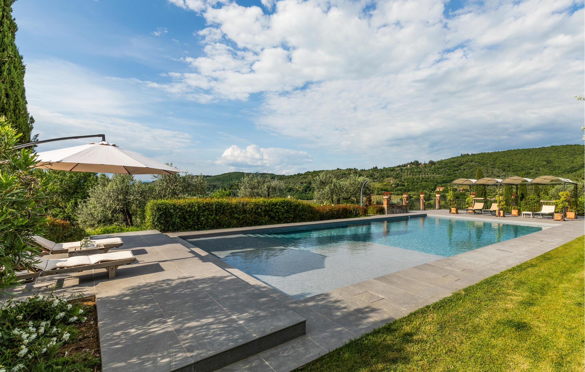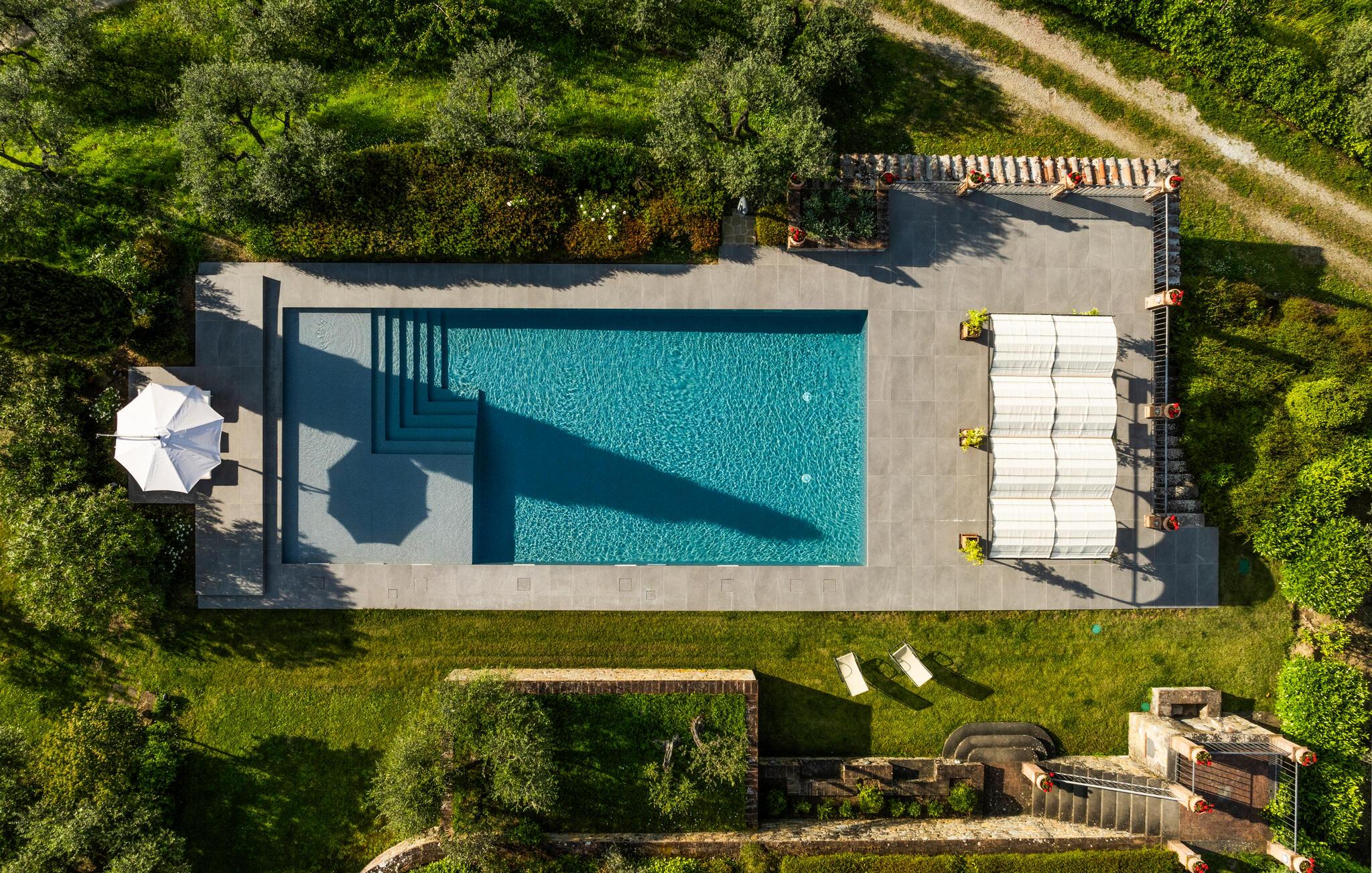 Machen Sie es sich mit einem Buch und kalten Getränken auf den Terrassen bequem und genießen Sie angenehme Stunden unter freiem Himmel mit Erfrischungen im Pool, später können Sie hier auch gemütlich grillen.