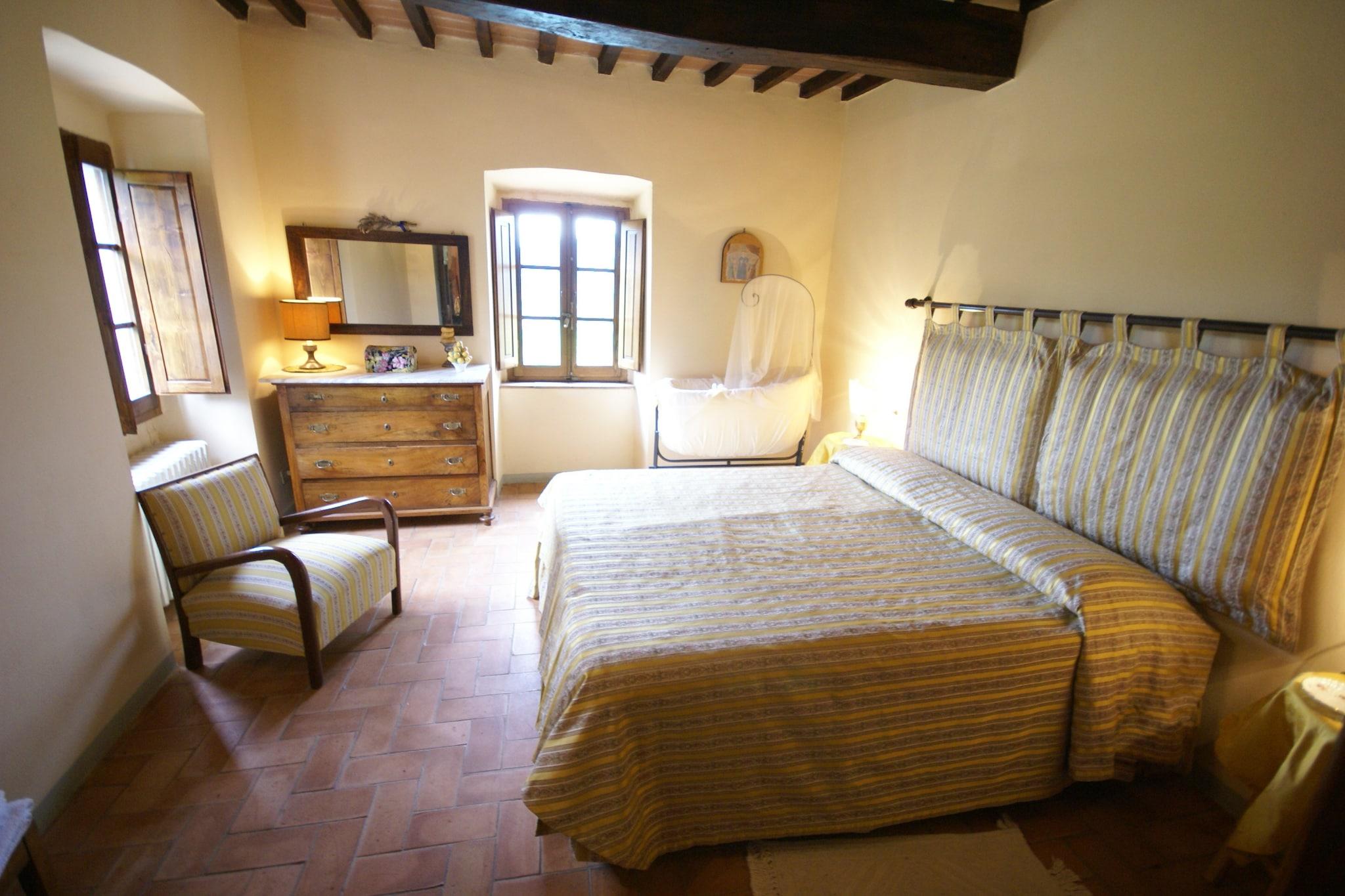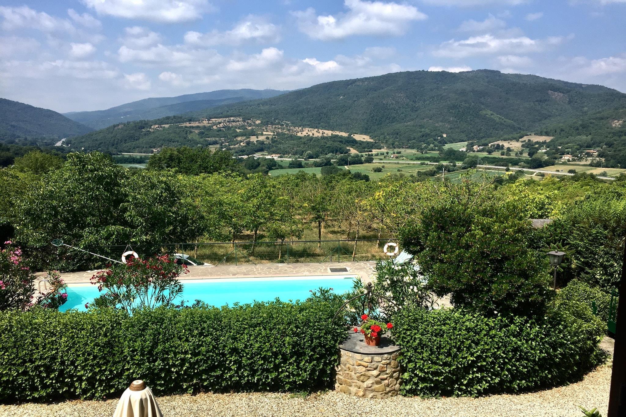 Dieses geräumige Ferienhaus in Monterchi in der Toskana bietet Familien und Gruppen, die authentisches italienisches Landleben mit modernem Komfort und flexibler Raumgestaltung suchen, einen idealen Ausgangspunkt für einen entspannten Aufenthalt. Eingebettet in das malerische Alta Valtiberina-Tal vereint das Anwesen rustikalen Charme mit praktischen Annehmlichkeiten wie Grill und privatem Pool – perfekt für einen unvergesslichen Toskana-Aufenthalt in der Nähe historischer Bergstädte wie Arezzo und Anghiari. Das Haus verfügt über drei komfortable Schlafzimmer und ist somit ideal für Gruppen oder Familien mit bis zu sechs Personen. Der großzügige Wohnbereich mit Sat-TV, gemütlichen Sitzgelegenheiten und viel Tageslicht lädt zum Verweilen und Entspannen ein – der perfekte Ort, um nach Erkundungstouren durch die umliegende Landschaft die Abende gemütlich ausklingen zu lassen. Die voll ausgestattete Küche bietet alles, was Sie für die Zubereitung frischer Mahlzeiten benötigen. Zwei moderne Badezimmer mit Dusche sorgen für Komfort und Privatsphäre, und eine Waschmaschine bietet zusätzlichen Komfort für längere Aufenthalte. Kostenloses WLAN steht Ihnen im gesamten Haus zur Verfügung, damit Sie während Ihres Toskana-Urlaubs stets in Verbindung bleiben. Genießen Sie Ihren Garten und Ihre Terrasse, wo Sie morgens bei einer Tasse Kaffee entspannen oder abends in ruhiger, ländlicher Umgebung grillen können. Die Außenbereiche laden zum Verweilen und Genießen der Ruhe der toskanischen Landschaft ein und bieten die perfekte Gelegenheit für Mahlzeiten im Freien mit Familie und Freunden. Das Casa Monterchi Il Camino liegt in der Nähe der kulturellen und künstlerischen Highlights von Monterchi – Heimat des berühmten Freskos „Madonna del Parto“ von Piero della Francesca – und ist nur wenige Schritte von Weinbergen, Bergdörfern und Panoramawanderwegen entfernt. Es vereint authentischen toskanischen Charme mit modernem Urlaubskomfort.