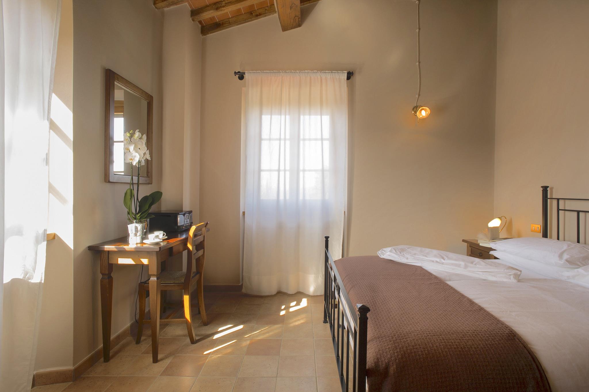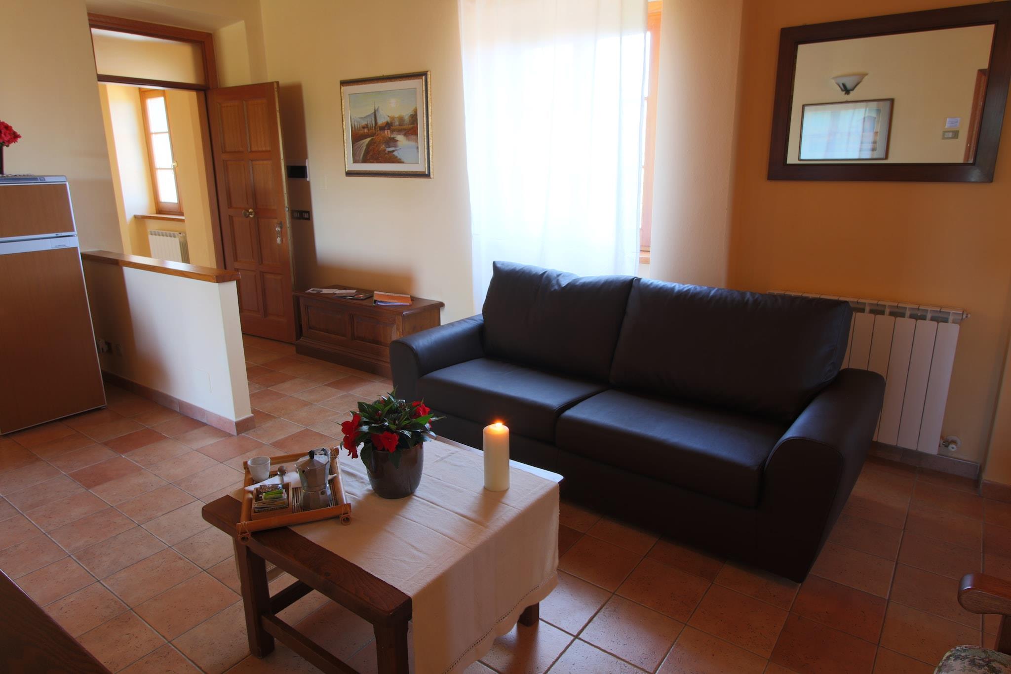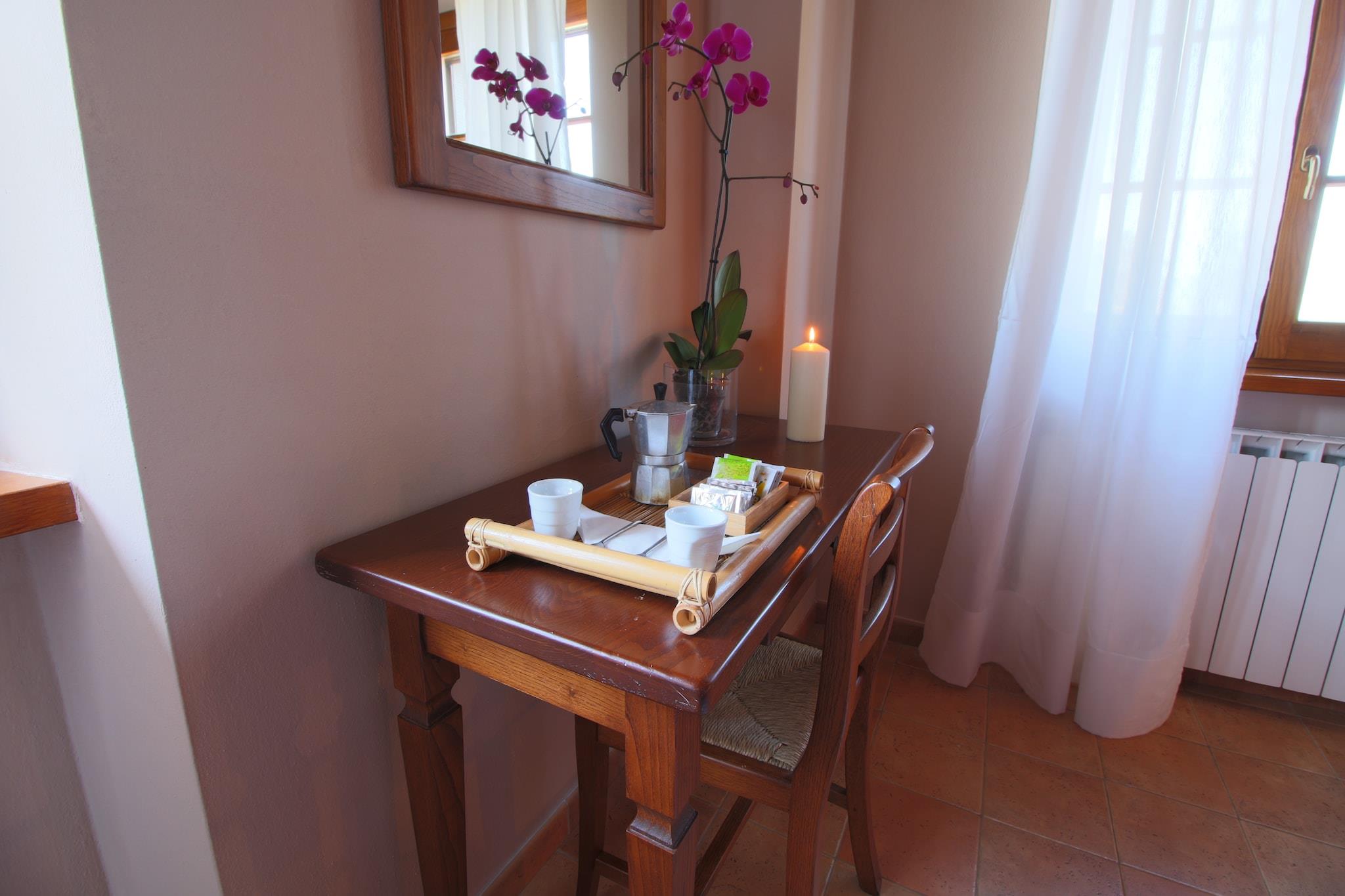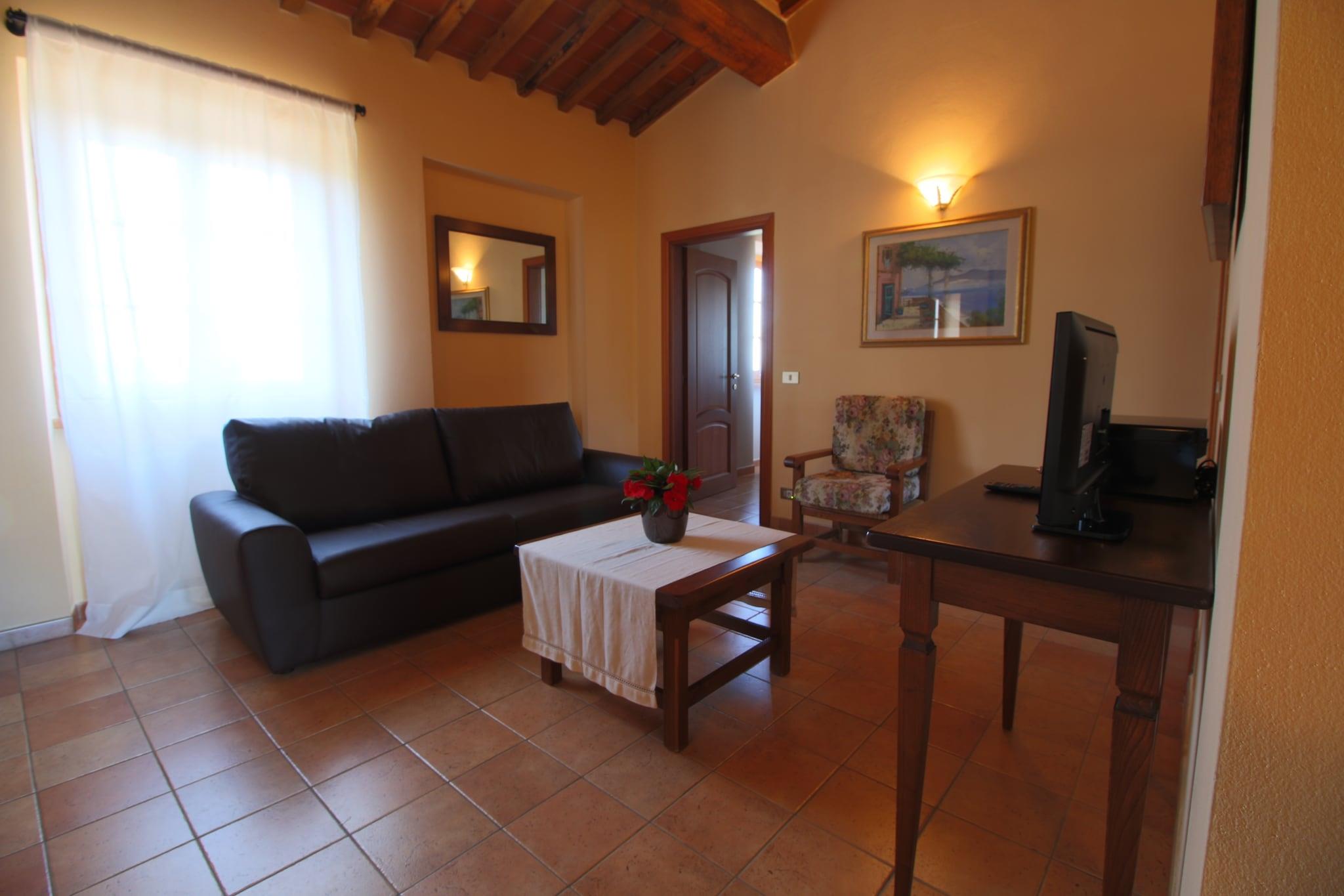 Dieses Bauernhaus in Campriano verfügt über 2 Schlafzimmer und bietet bequem Platz für 5 Personen. Es ist ideal für Familien mit Kindern, die in einer hügeligen Region mit herrlicher Aussicht übernachten möchten. Ein Gemeinschaftspool und eine Zentralheizung laden zum Entspannen ein. Sie befinden sich in der Nähe der mittelalterlichen Städte Arezzo und Anghiari, die Sie erkunden und ihre Geschichte kennenlernen können. Der Ort ist für seine preisgekrönten Weine bekannt. Zahlreiche Weinproben bieten die Möglichkeit, Sangiovese-, Merlot-, Malvasia- und Sauvignon-Blanc-Trauben zu bewundern. 50 Hektar Weinberge liegen hier. Genießen Sie einen Spaziergang im nahegelegenen Wald (500 m). Restaurants erreichen Sie nach 2 km und einen Supermarkt nach 4 km. Das Bauernhaus strahlt eine gemütliche und typisch toskanische Atmosphäre aus. Die moderne Küche verfügt über einen Backofen zum Backen von Köstlichkeiten und einen Kamin für wohlige Wärme. Die gesamte Anlage ist mit Zentralheizung ausgestattet. Kinder können sich im Garten mit Spielgeräten vergnügen. Abends können Sie auch grillen. Öffentliche Verkehrsmittel sind 4 km entfernt.