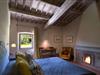 Von der Loggia aus betreten wir das Esszimmer, in dem sich ein Kamin befindet: Ursprünglich war dies der wichtigste Raum, in dem sich die Familie nach einem anstrengenden Arbeitstag im Bauernhaus zu entspannen pflegte.