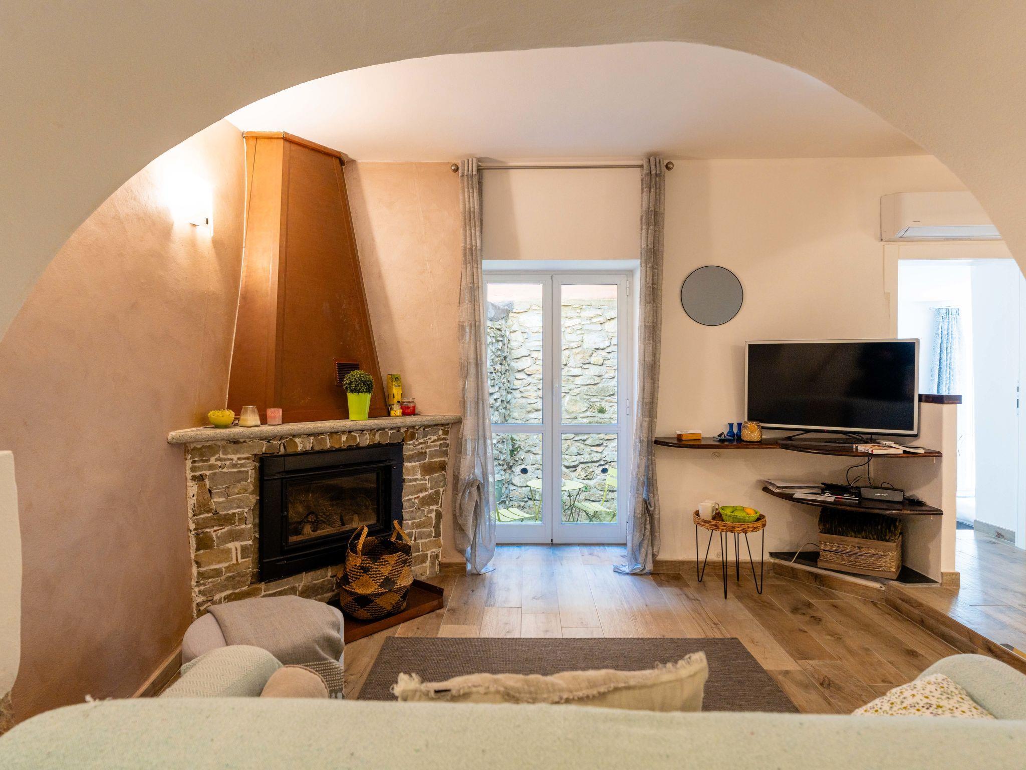 "Al Forte", 2-Zimmer-Wohnung im Erdgeschoss. Komfortabel und rustikal eingerichtet: Wohnzimmer, Fenster zum Hof mit 1 Doppeldiwanbett und offenem Kamin (nur Deko), TV und Klimaanlage. Ausgang zum Gartensitzplatz. 1 Doppelzimmer. Ausgang zur Terrasse. Küche (Backofen, Geschirrspüler, 2 Induktionskochplatten, Wasserkocher, Mikrowelle, elektrische Kaffeemaschine) mit Esstisch. Dusche/Bidet/WC. G-Heizung (extra), Klimaanlage, Warmluftheizung. Heizung nur verfügbar von 15.10. bis 15.04. Natursteinboden. Terrasse. Terrassenmöbel. Panoramasicht auf das Meer und die Berge. Zur Verfügung: Babybett, Haartrockner. Internet (WLAN, gratis). Bitte beachten: Rauchmelder, Feuerlöscher. IT009007C2YLLS6MGY