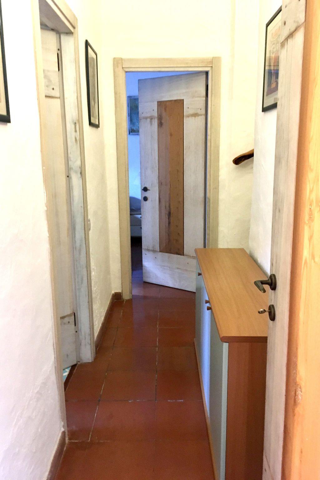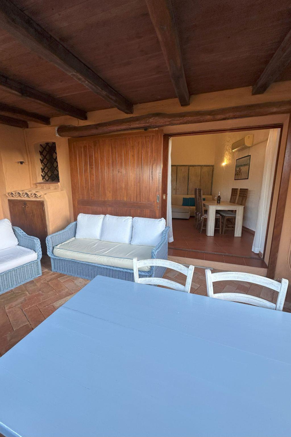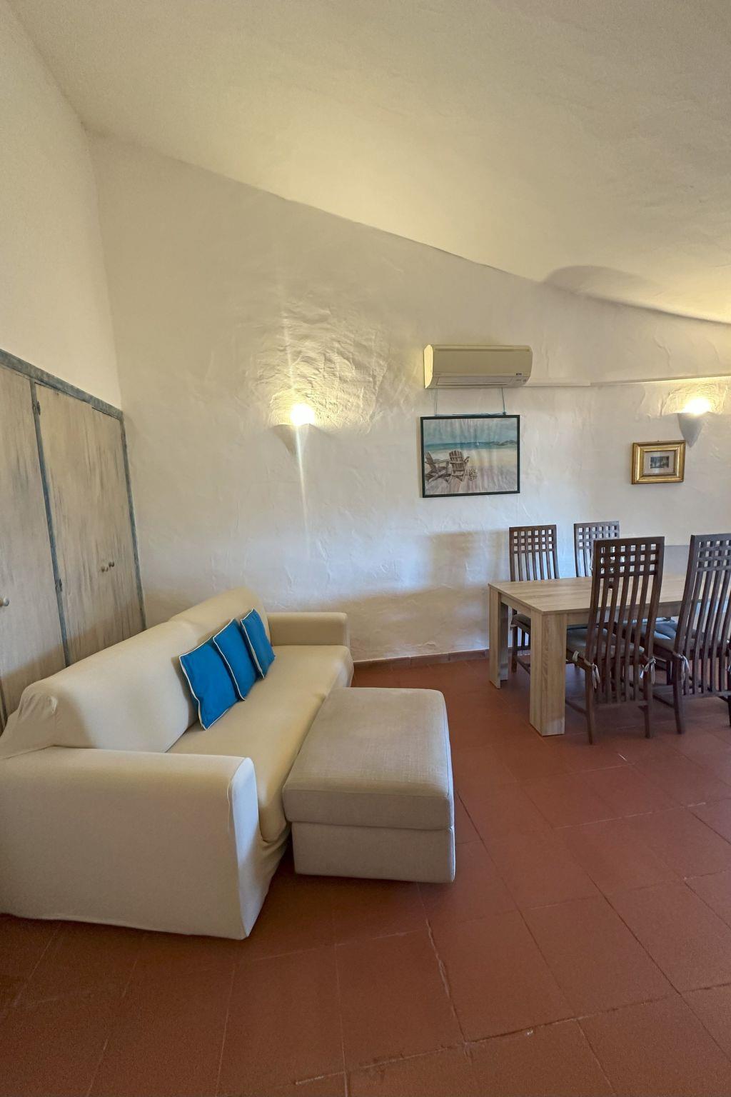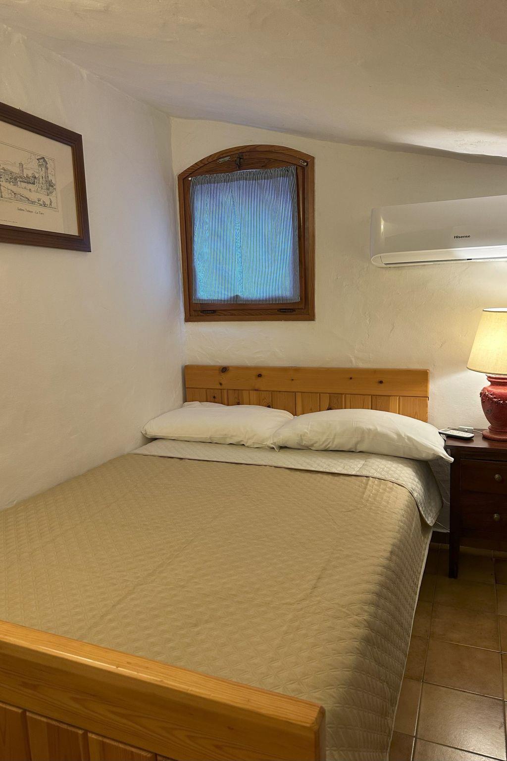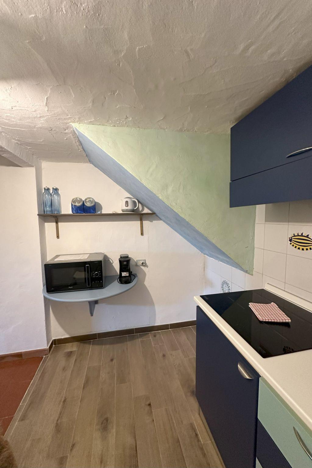 Die Ferienwohnung ist in drei Ebenen aufgeteilt. Der Eingang bietet Zugang zum Schlafzimmer mit einem Doppelbett (160x190cm) und einem tollen Ausblick auf die Mittelmeermacchia mit den herrlichen Felsen und zum Bad mit Dusche. Über sieben Treppenstufen erreicht man die obere Ebene, in der sich ein kleines Mansardenzimmer mit einem Bett mit französischen Maßen (130x 190cm). Die geringste Höhe des Zimmers liegt bei 1,65m. Sieben hinabsteigende Treppenstufen führen in die untere Ebene mit einem Wohnzimmer mit einem Schlafsofa für zwei Personen (160x190cm), einer Küche und der Veranda. Die zauberhafte Wohnung ist ideal für Paare oder eine Familie mit zwei Kindern. Das Schlafzimmer mit Doppelbett und das Wohnzimmer sind klimatisierbar. Der Kamin ist nicht benutzbar. Die Küche verfügt über Ofen, Waschmaschine und Spülmaschine. WLAN ist kostenlos und im Wohnzimmer und auf der Veranda verfügbar.