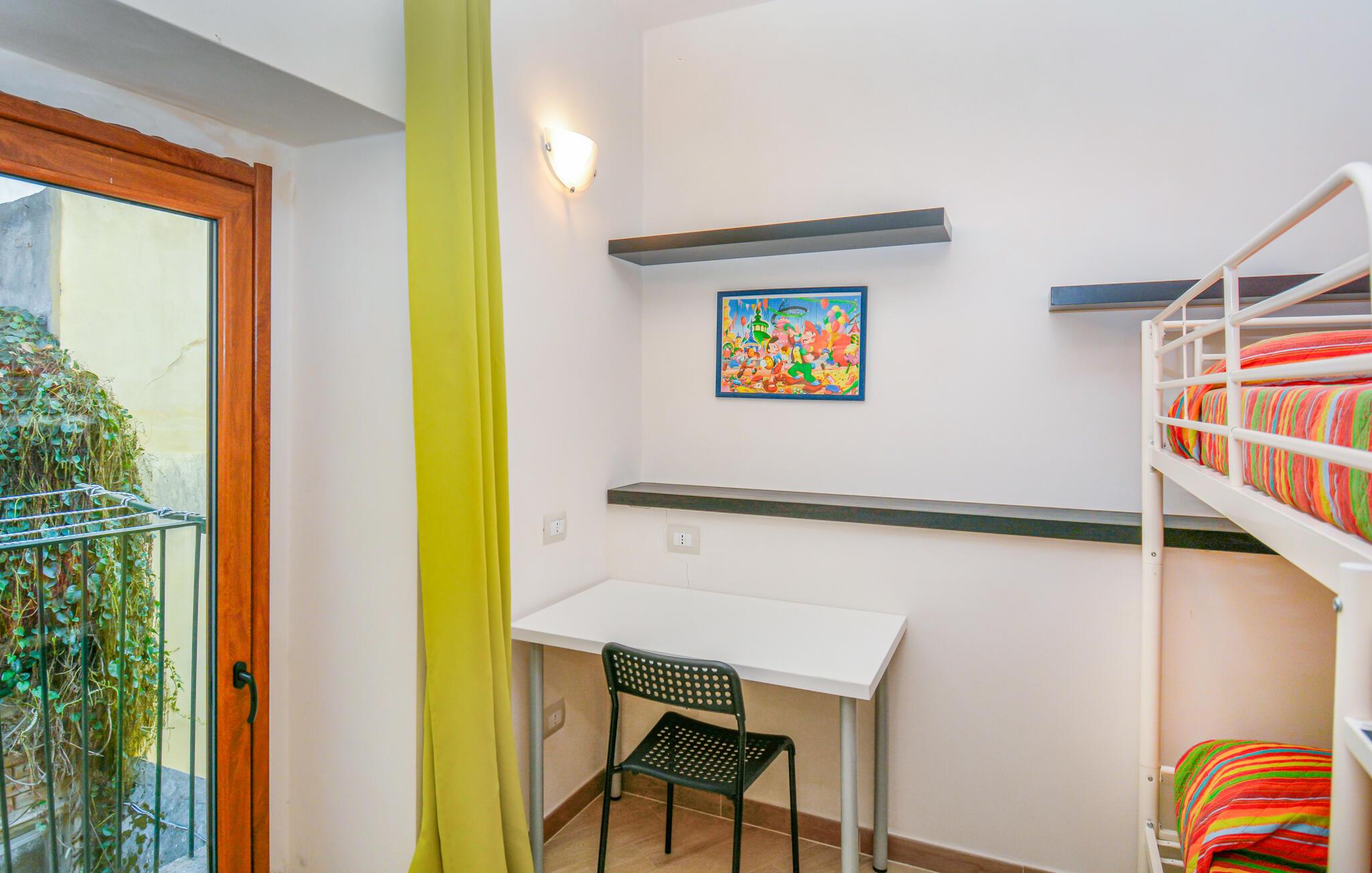 Diese Wohnung besticht durch die vielen fröhlichen Farben, die eine unbeschwerte Atmosphäre schaffen. Entspannen Sie sich auf dem bequemen Sofa bei einer Tasse Kaffee, hören Sie Ihre Lieblingsmusik oder einen interessanten Podcast. Liefern Sie sich ein kleines Kochduell in der Küche und servieren Sie die frisch zubereiteten Mahlzeiten mit einem Glas gutem italienischen Wein.