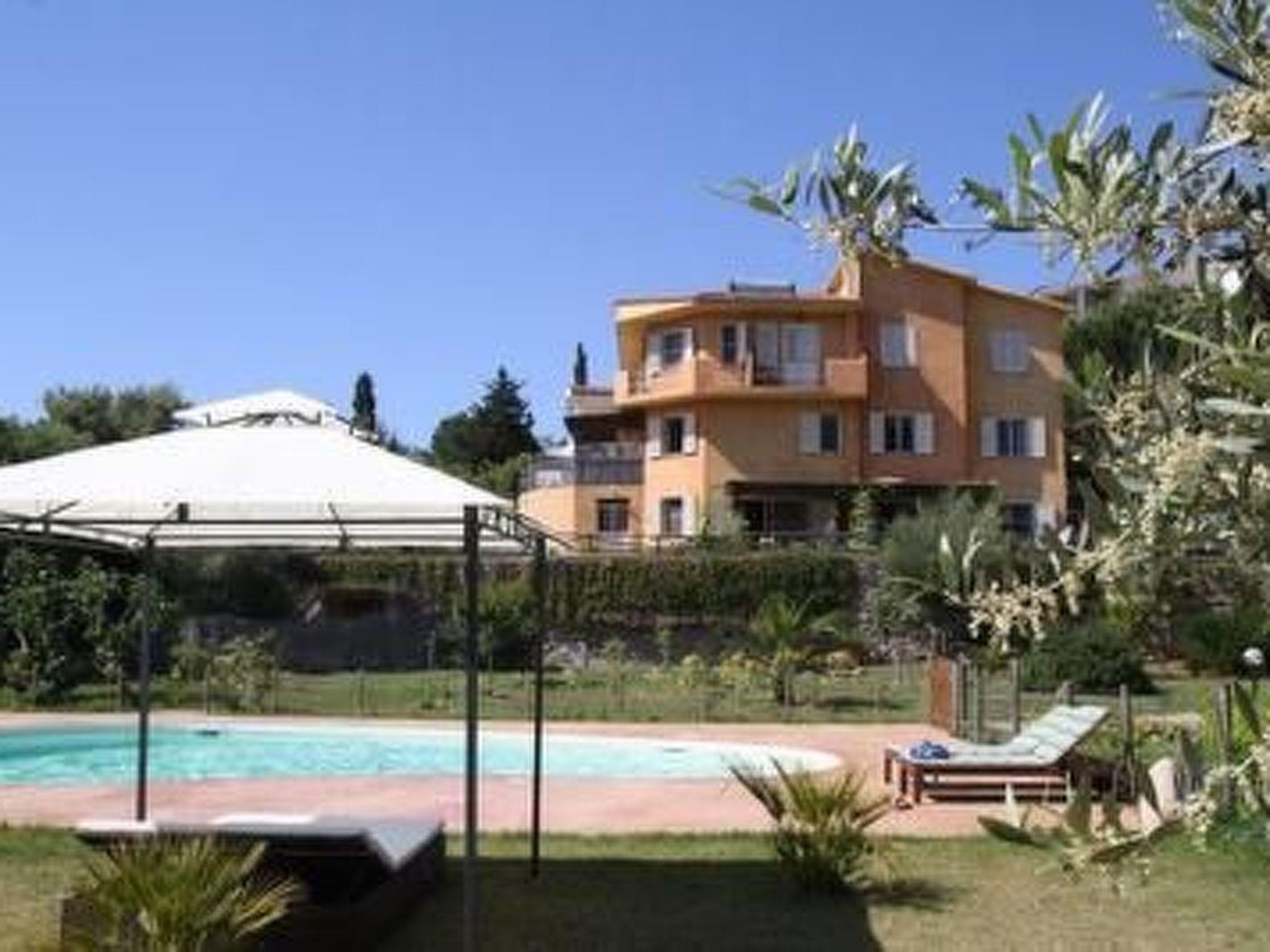 Die FeWo befindet sich in eine neuerbaute Villa mit Pool mit nur zwei Wohneinheiten, jede mit separates Eingang, in eine ganz ruhige Lage am Ortsrand von Badesi, umgeben von ein 4000qm Garten mit Oliven-, Feigen-, Zitronen-, Orangen-, Mandarinen- und Mandel-Bäume.Ein grosszuegiges Pool sowie ein kleines Spielplatz steht ebenso unseren Gaeste zu Verfuegung.Das Meer mit seine 11 km lange silbere Sandstrand, einer der laengste in Nord Sardinien, ist nur 2500 Meter von das Haus entfernt und ist leicht erreichbar auch in Bus der in Sommer jede halbe Stunde am Strand fährt. Die FeWo ist 75 qm gross und bestäht aus 2 Schlafzimmer, ein grosses Wohnzimmer mit ausgestattete Kochecke mit allem Notwendigem, grosse Terasse mit Meerblick und ein Bad mit Duschkabine.Die Terrasse mit traumhafte Meerblick ist mit Gartenmöbeln ausgestattet, ideal um das Sonnenuntergang waerend das Abendessen zu geniessen.Das Grundstück ist umzäunt und somit auch für Kinder bestens geeignet.Ein privates Grill geoehrt zu die FeWo.Das Ortszentrum, Restaurants, Eisdille, Kafees, Supermärkten , Bank und Aporheke sind nur 400m von das Haus entfernt, in wenige Minuten auch zu Fuss erreichbar.Badesi ist strategisch gelegen um viele Ausfluege zu machen ohne viel fahren zu muessen, um die Schoenste Orte und Straende im Nord Sardinien zu besuchen.Fuer die Surflieber gibt es vor Ort verschiedene Surf und Kyte Schulen.Kurzbeschreibung 1Anzahl Küchen : 1Sonstige Räume : grosse überdachte Terasse mit MeerblickUmgebungSportmöglichkeiten in der Umgebung : AngelnUmgebung 1Ortsbeschreibung : Badesi ist ein kleiner Ort mit 1800 Einwohnern und liegt im Norden Sardiniens, in Gallura, in einer traumhaften Landschaft, wo sich das rot des Granits mit dem blau des kristallklares Wasser treffen, wo sich die Gebirglandschaft und das Meer die Hand reichen.Garten und AussenanlagenFreizeiteinrichtungen am Objekt : Außenpool gemeinschaftliche Nutzung, SwimmingpoolGartenausstattung : Grill