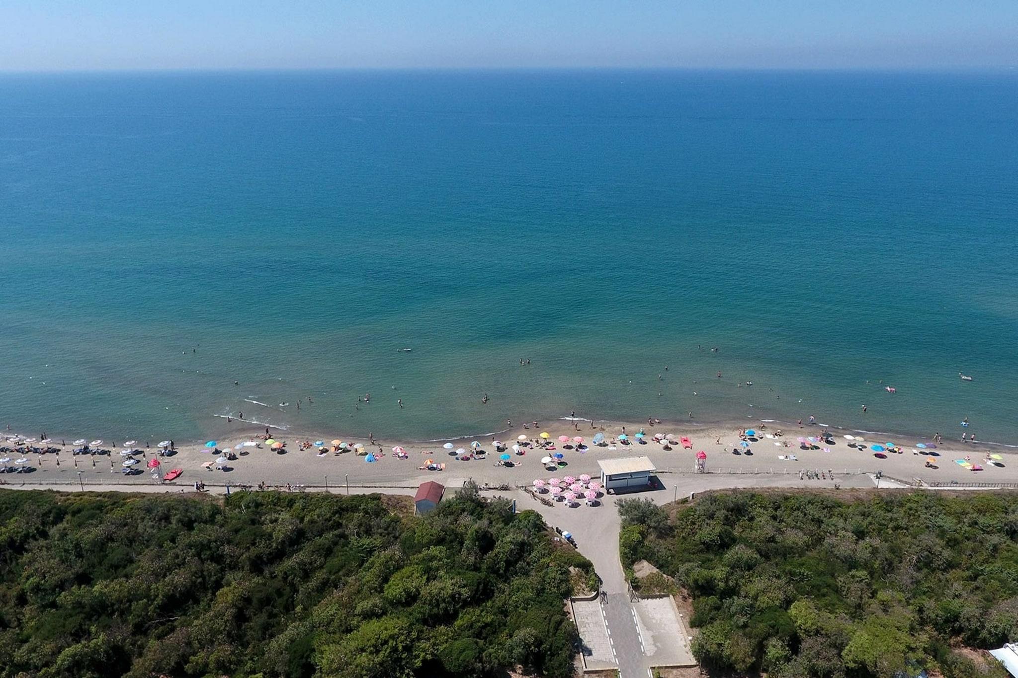 Sonnenverwöhnter Komfort unter Pinien Eingebettet im kühlen Schatten hoch aufragender Pinien bietet dieses moderne Chalet mit zwei Schlafzimmern und zwei Bädern im Baia Domizia Camping Village die ideale Mischung aus Komfort und Stil. Ob Sie zu zweit oder zu sechst reisen, Sie profitieren von einer privaten Veranda mit Gartenmöbeln, Sonnenliegen und einem eigenen Parkplatz. Die Klimaanlage sorgt für einen angenehmen Rückzugsort im Innenbereich (gegen Gebühr), während Sat-TV und ein Doppelschlafsofa im Wohnbereich für gemütliche Unterhaltung sorgen. Unzählige Aktivitäten für jede Stimmung Dieses familienfreundliche Resort bietet jede Menge Spaß und Entspannung. Beginnen Sie Ihren Tag mit einem Bad im großzügigen Gemeinschaftspool oder genießen Sie ein Sonnenbad mit atemberaubendem Meerblick. Für aktive Reisende gibt es ein Fitnessstudio, Sportplätze und ein engagiertes Animationsteam. Die Kleinen werden den Miniclub vor Ort lieben, während die Erwachsenen bei Cocktails am Strand entspannen können. Der 1 km lange Privatstrand des Resorts ist ein Highlight – perfekt für sonnenverwöhnte Spaziergänge oder entspannte Nachmittage. Entdecken Sie die Küste Kampaniens Tauchen Sie auch außerhalb des Resorts in das reiche Erbe Italiens ein. Tagesausflüge nach Pompeji, Neapel und zu den Inseln Ischia, Capri und Ponza sind leicht zu organisieren und unvergesslich. Zurück in Baia Domizia genießen Sie die lokale Küche in Trattorien am Meer mit frischen Meeresfrüchten und neapolitanischen Spezialitäten. Naturschönheiten, kulturelle Schätze und eine lebendige Atmosphäre – hier beginnt Ihr perfekter Urlaub.