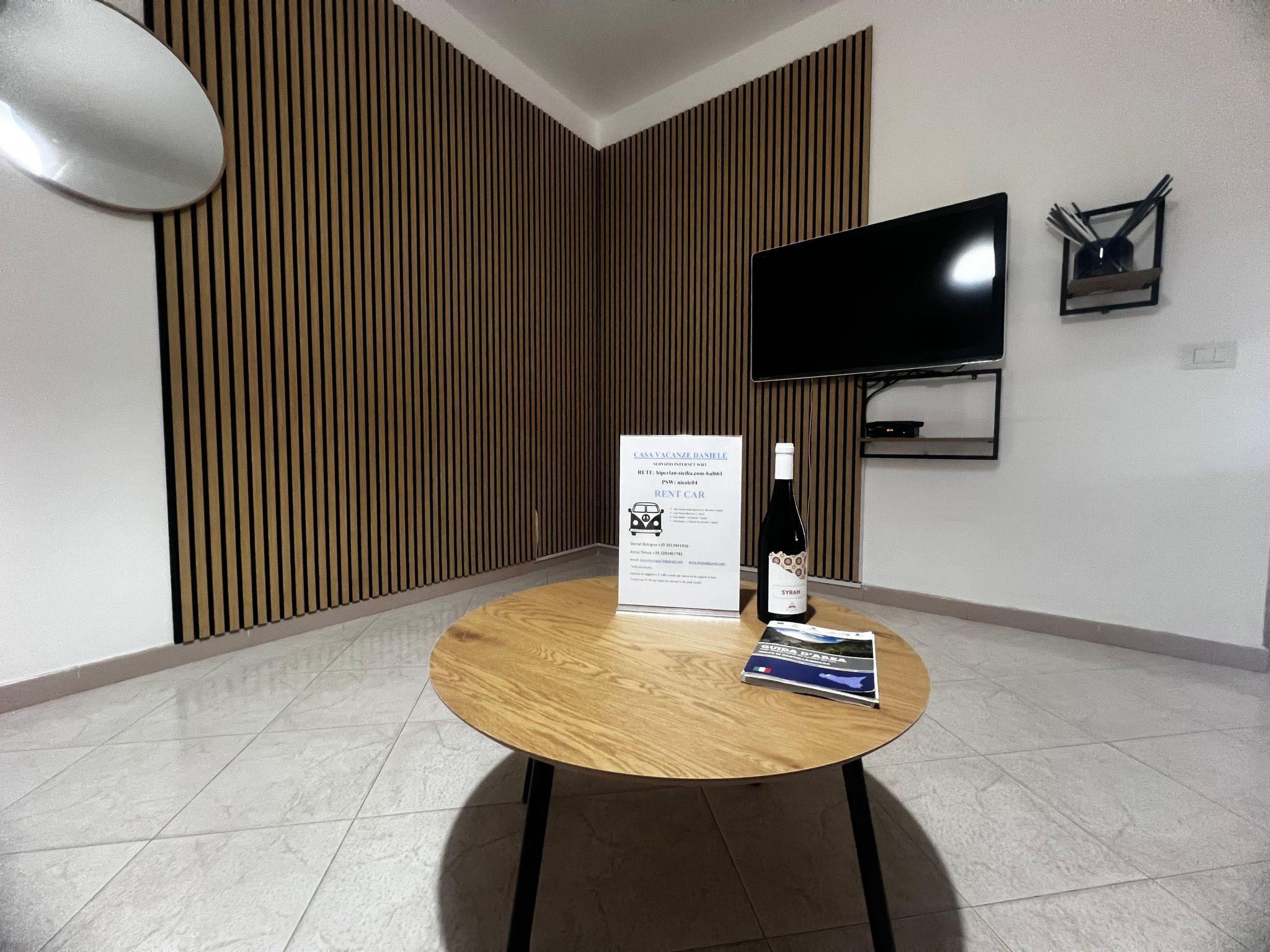 Das Interieur von Casa Daniele ist so gestaltet, dass es maximalen Komfort und Komfort bietet. Das Wohnzimmer ist mit einem Flachbild-TV, einem Sofa und einer Klimaanlage ausgestattet und der perfekte Ort, um nach einem erlebnisreichen Tag in der Umgebung zu entspannen. Das Haus verfügt auch über zwei Schlafzimmer, eines mit Klimaanlage: ein Doppelzimmer mit Balkon mit Meerblick und ein zweites Schlafzimmer, ideal für zusätzliche Gäste. Die Küche, komplett ausgestattet mit Herd, Backofen, Mikrowelle, traditioneller und Kapselkaffeemaschine sowie Wasserkocher und Essecke, bietet alles, was Sie brauchen, um köstliche Gerichte zuzubereiten, die Sie mit Freunden genießen können.