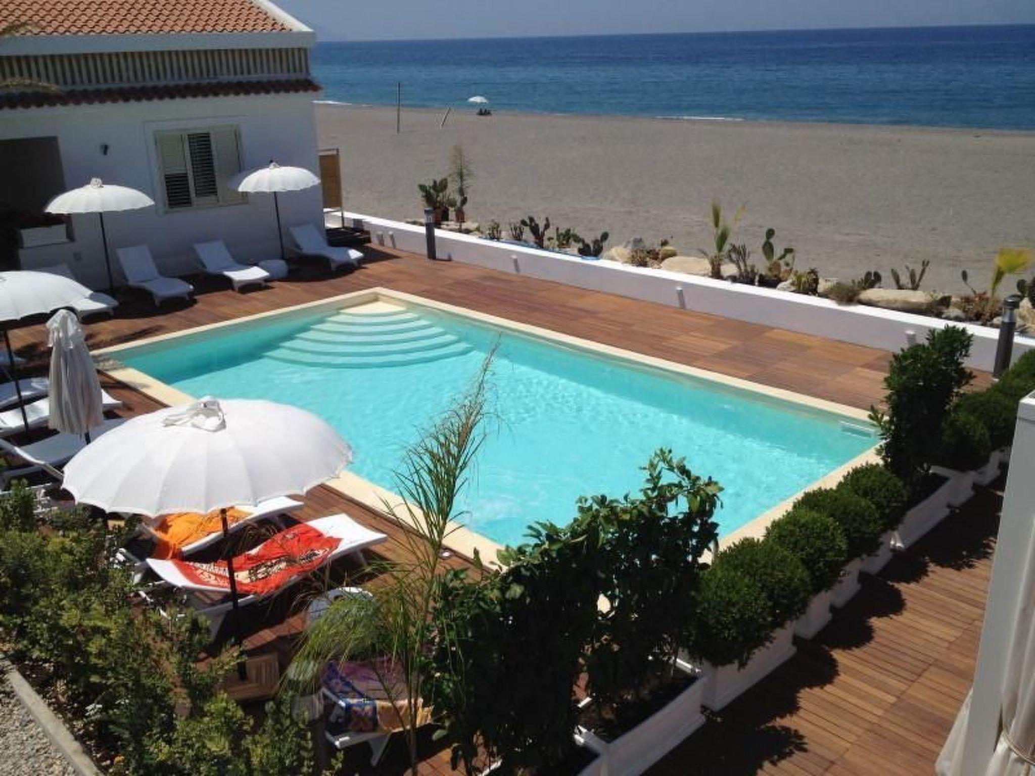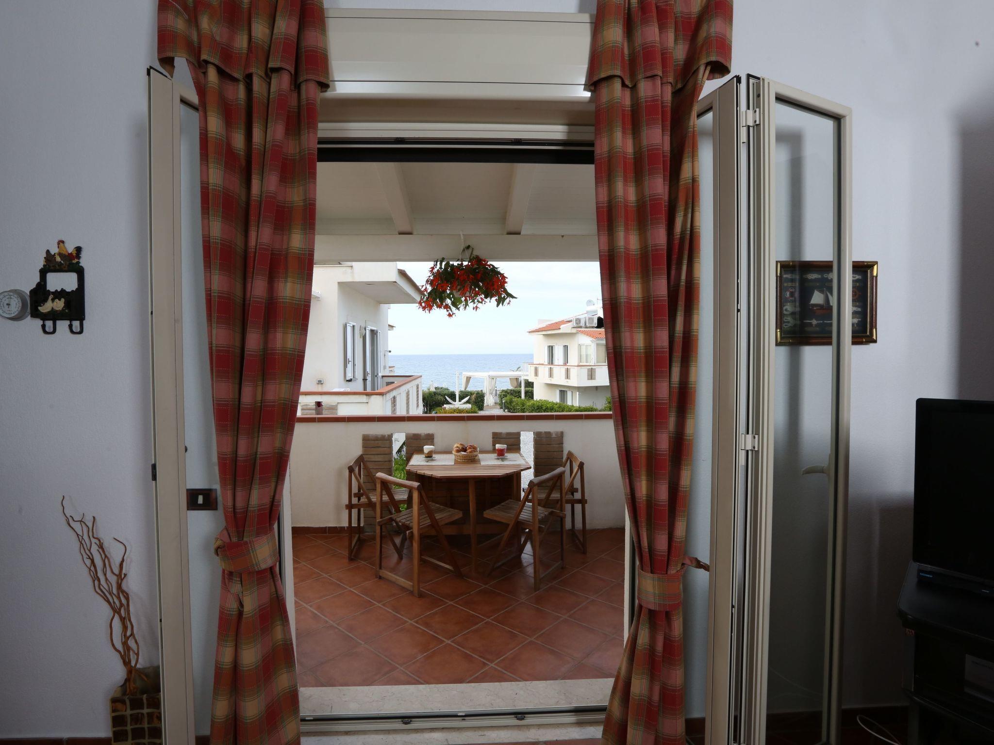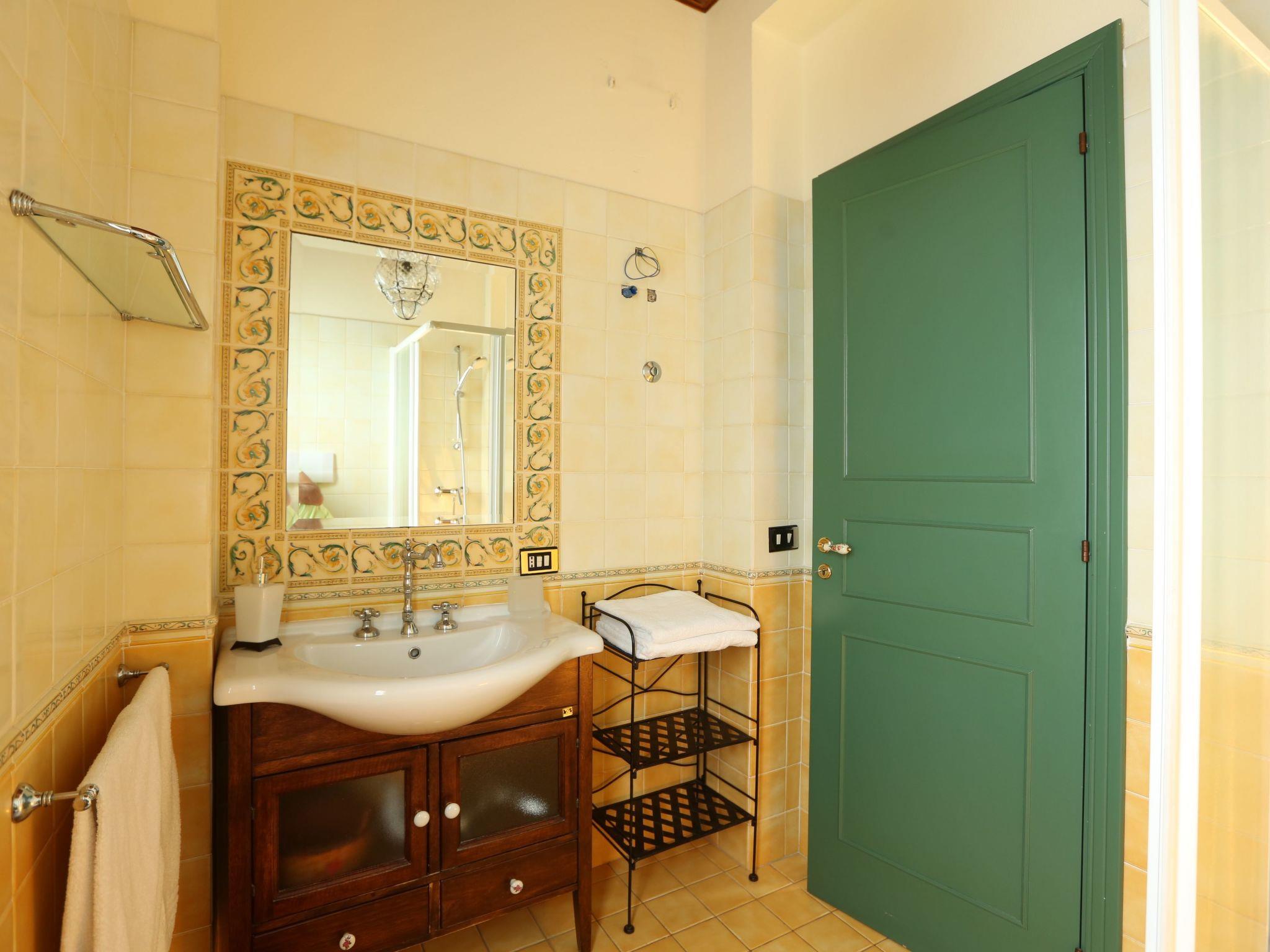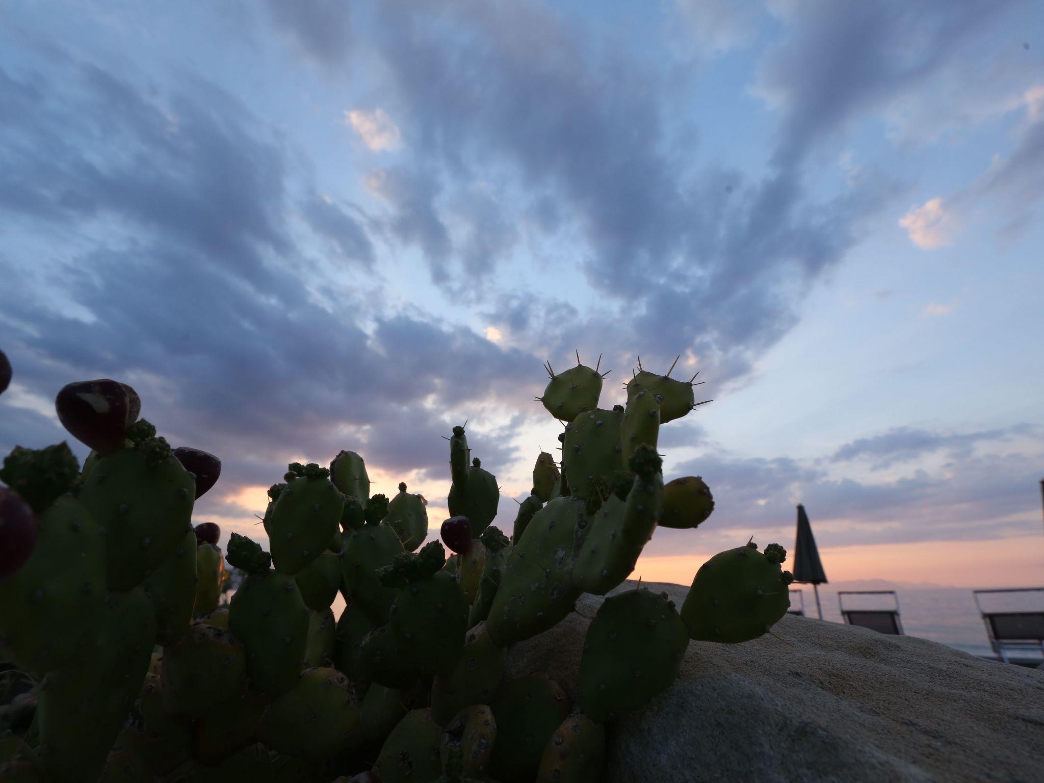 Apartment im ersten Stock, bestehend aus Terrasse, Schlafzimmer mit Doppelbett, einem Zimmer mit zwei Einzelbetten, auch als Doppelbett verwendbar, Bad mit Fenster und Duschkabine, Aufenthaltsraum mit Zugang zur Terrasse, ausgestattet mit Schlafcouch (evtl. auch für zwei Kinder geeignet), praktisch eingerichtete Kochnische, eine externe Dusche.