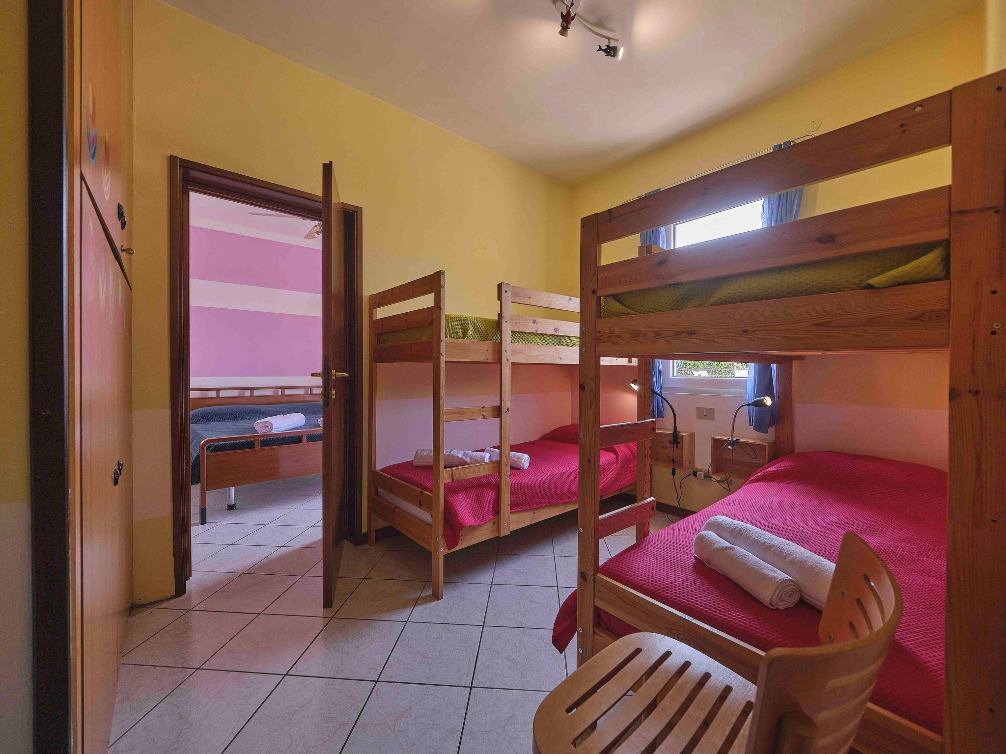 Unter'interno, la casa di circa 100 mq offre un'finden Sie ein gemütliches Wohnzimmer mit Essecke und Kochnische, ideal für die Zubereitung und den Genuss von Mahlzeiten mit Freunden. Für Ihre Erholung stehen Ihnen zwei Schlafzimmer mit Doppelbetten zur Verfügung, von denen eines über ein eigenes Bad mit Dusche verfügt. Außerdem gibt es ein praktisches Durchgangszimmer mit 2 Etagenbetten, so dass das Haus bequem bis zu 8 Personen beherbergen kann. Zur Vervollständigung der Einrichtung gibt es ein zusätzliches Badezimmer mit Badewanne/Dusche und einen geschlossenen Balkon mit Schiebefenstern, um die Aussicht zu genießen, ohne auf Komfort verzichten zu müssen.