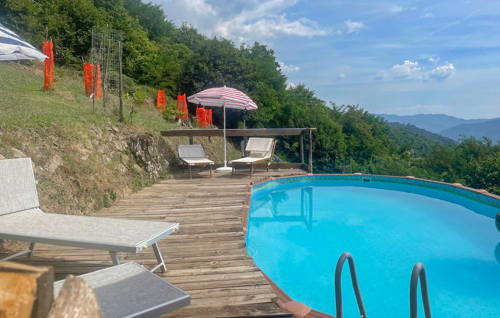 Träumen Sie von einem komfortablen Familienurlaub in der Ruhe der Natur? Dann wäre dieses fantastisch gelegene Ferienhaus mit Außenpool und Panoramablick die perfekte Wahl.