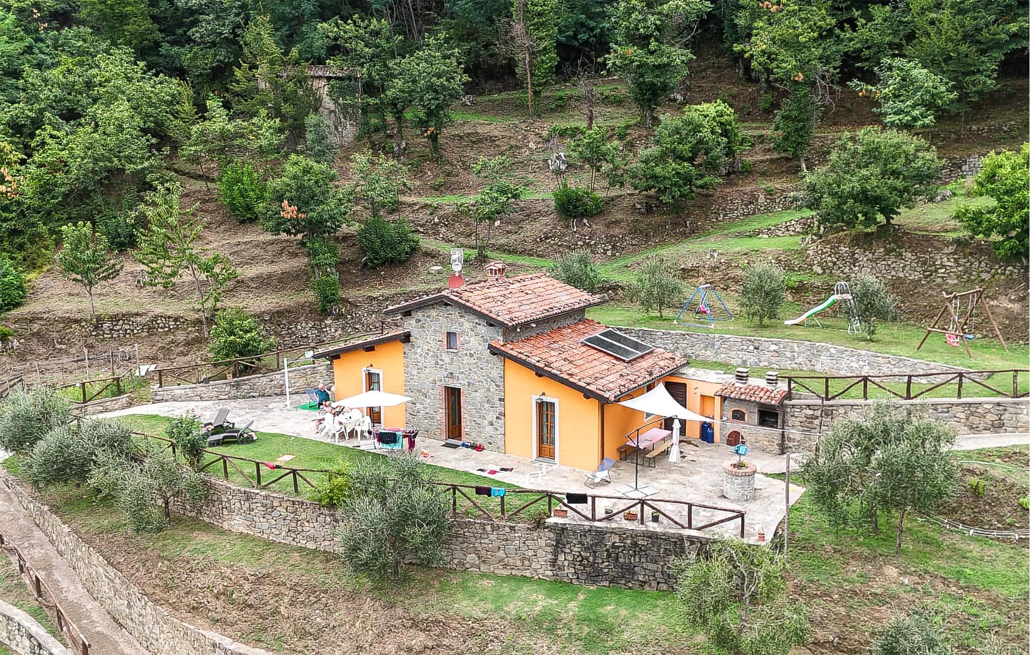 Nördlich von Lucca begrüßt Sie in einer reizenden, hügeligen Landschaft dieses abgegelegene Ferienhaus. Im Innenraum erwarten Sie gemütlich eingerichtete Zimmer, die einen rustikalen Eindruck machen und den perfekten Rahmen für entspannte Urlaubstage bieten. Sowohl drinnen als auch draußen hat das Haus eine Vielzahl an tollen Einrichtungen für Groß und Klein zu bieten.