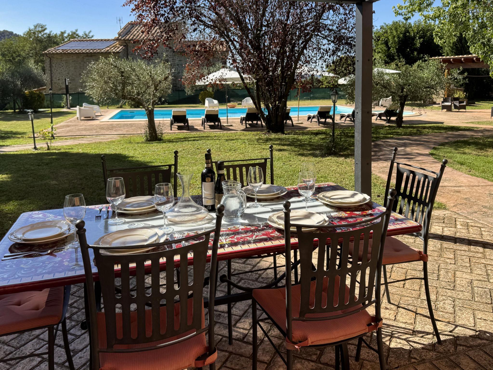 Das Haus wurde Mitte des 19. Jh. von ist Baron einer noblen Familie von Perugia, dessen verwandtschaftliche Verbindungen zurück gehen bis zum Grafen Barberini von Rom und zu Pabst Pius IX. Die Villa und die Fresken wurden vor kurzem von seinen Erben sorgfältig, unter Berücksichtigung ursprünglicher architektonischer Kriterien renoviert. Eine Hauptstrasse führt in ca. 3 m Entfernung am Haus vorbei. Florenz und Rom liegen in 150 km Entfernung, Todi liegt in 30 km Entfernung, Spoleto liegt in 40 km Entfernung und der Flughafen von Perugia liegt in 15 km Entfernung. Villa "Paolotti", Baujahr 1870. In einem Weiler, 3 km vom Zentrum von Bettona, 18 km vom Zentrum von Perugia, sonnige Lage, an einer Hauptstrasse. Zur Alleinbenutzung: Garten (eingezäunt), Schwimmbad (14 x 6 m, 145 cm tief, saisonale Verfügbarkeit: 25.Mai. - 30.Sep.). Pergola, Gartenmöbel, Grill. Im Hause: Waschmaschine. Zur Verfügung: Fahrräder (4) (extra). Parkplatz auf dem Grundstück. Lebensmittelgeschäft 100 m, Supermarkt 1 km, Restaurant 1 km. Reitstall 3 km. Nahe gelegene Sehenswürdigkeiten: Assisi 15 km. Der Besitzer akzeptiert keine Jugendgruppen.
