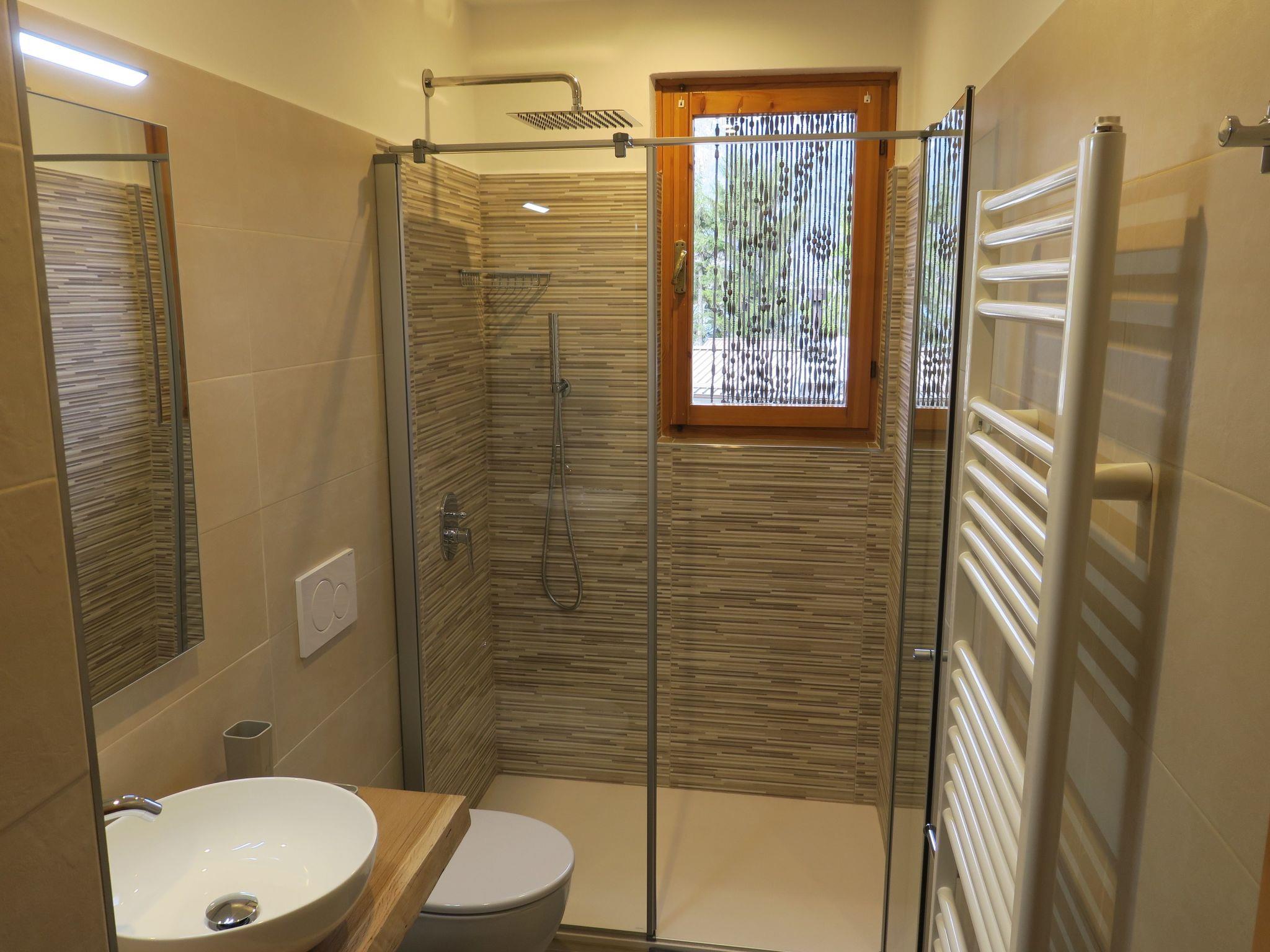 Das Innere der Wohnung ist gepflegt und gemütlich. Im ersten Stock befindet sich ein Wohnzimmer, das mit einem Tisch, Bänken und Stühlen, einem bequemen Sofa und einem Satellitenfernseher ausgestattet ist. Die Küchenzeile ist komplett ausgestattet mit Kühlschrank, Gefrierschrank, Backofen, Induktionskochfeld und Geschirrspüler. Nicht zu vergessen die Kaffeemaschine, unverzichtbar für einen guten Start in den Tag. Ein Schlafzimmer mit Doppelbett und Balkon sowie ein Badezimmer mit geräumiger Dusche und Toilette vervollständigen diese Etage. Über die interne Holztreppe gelangt man in das Dachgeschoss, wo sich zwei weitere Doppelschlafzimmer und ein zweites Bad mit Dusche und WC befinden.