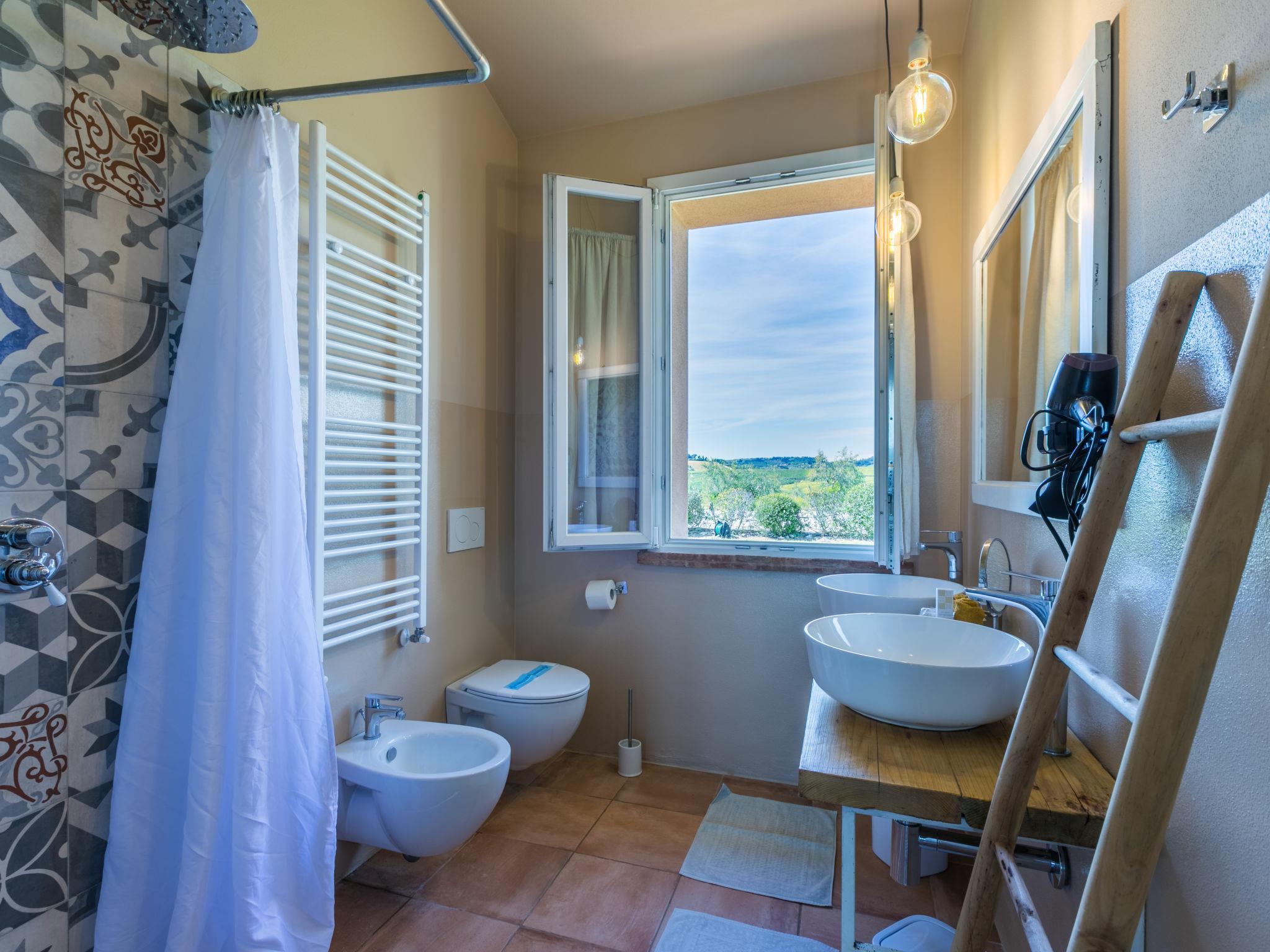 Bauerngut "Campo al Quattrino", 400 m.ü.M., umgeben von Feldern und Weinbergen. 1.9 km vom Zentrum von Bibbona, 6.8 km vom Zentrum von Casale Marittimo, ruhige, sonnige Lage, 16 km vom Meer, 16 km vom Strand. Zur Mitbenutzung: naturbelassenes Grundstück, Hof. Zur Alleinbenutzung: Aufstellpool (4 x 4 m, 60 - 60 cm tief, saisonale Verfügbarkeit: 12.Apr. - 31.Okt.). Gartenmöbel, Grill, Poolpflege durch den Besitzer/Gärtner. In der Anlage: Empfang, Restaurant, Frühstücksraum, Wireless LAN. Frühstück Vollpension Halbpension auf Anfrage (extra). Abstellraum vorhanden. Zufahrt (1 km Naturweg). Lebensmittelgeschäft 1.6 km, Supermarkt 10 km, Einkaufszentrum 10 km, Bäckerei 1.6 km, Bushaltestelle "Bibbona" 2 km, Sandstrand "Marina di Bibbona" 16 km, Thermalbad "Calidario" 34 km. Jacht-Hafen 24 km, Reitstall 17 km. Nahe gelegene Sehenswürdigkeiten: Pisa 65 km, Lucca 90 km, Firenze 112 km. Ab Hof Verkauf von bäuerlichen Produkten. Bitte beachten: Der Besitzer wohnt auf dem gleichen Grundstück. Eigentümer hat einen Hund.