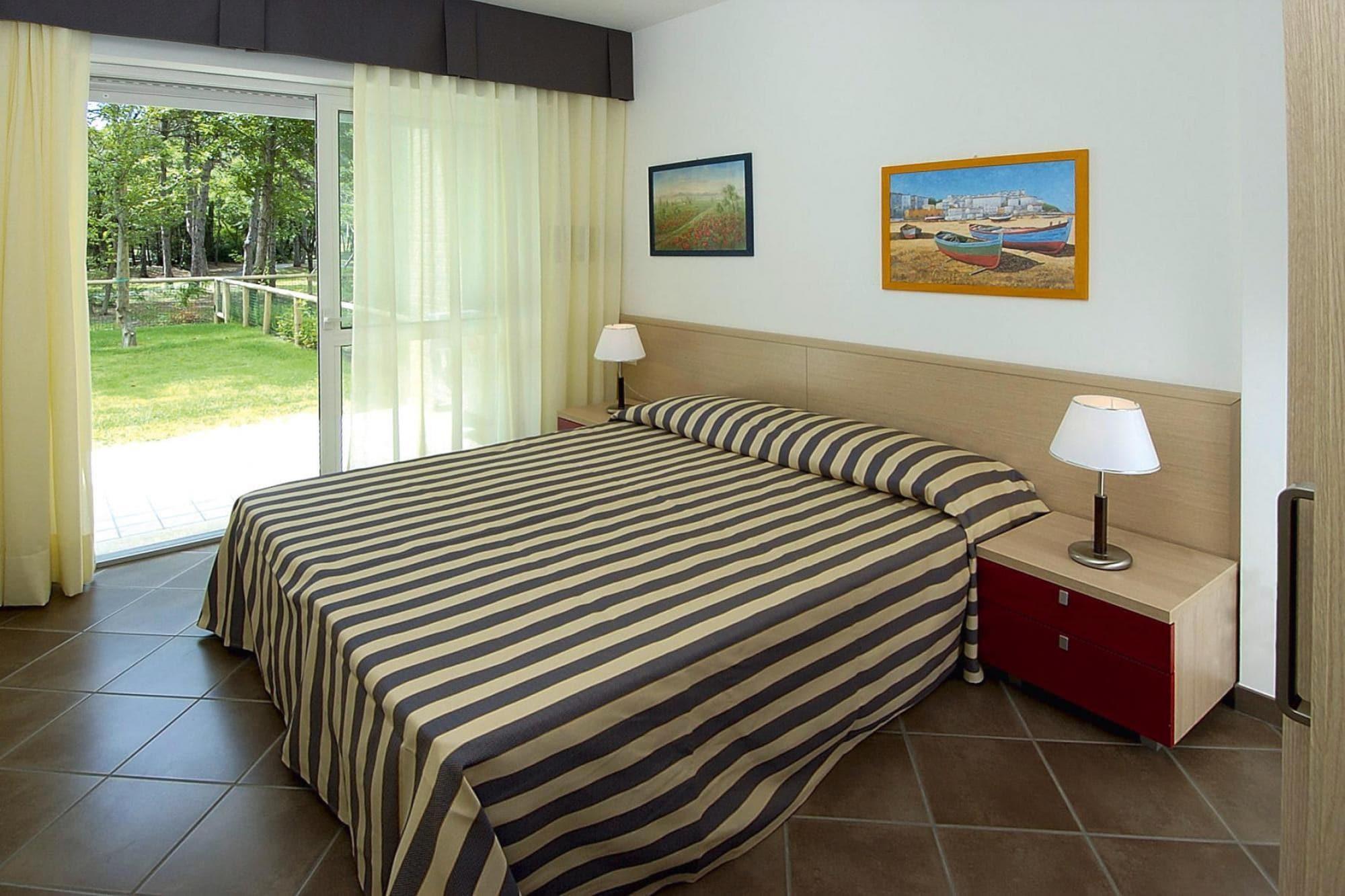 Nur 80 Meter vom Strand entfernt: Zwei moderne und elegante Ferienanlagen - Al Parco und Le Acacie - die nebeneinander liegen und jede für sich komplett abgeschlossen ist. Zum weitläufigen Sandstrand führt ein kleiner Weg durch einen üppigen mediterranen Wald. Jede der Anlagen verfügt über einen eigenen ansprechenden Poolbereich mit separatem Kinderbecken und gemütlicher Sonnenterrasse - bestens geeignet für entspannte Sonnenbäder oder einfach nur zum Relaxen. Die Wohnungen befinden sich im Erdgeschoss (mit kleinem Gartenanteil) oder im 1. oder 2. Stock (mit Balkon). Für die Anlage gilt: - 108 Wohneinheiten - 2 Gebäude - Fahrstuhl - Waschmaschine (Gegen Gebühr) - Wäschetrockner (Gegen Gebühr) - Garten - Gemeinschaftsterrasse - Liegen - Tiefgarage - Gemeinschaftlicher Außenpool, Kinderbecken, Liegen, Sonnenschirme Extras inklusive: 1x pro Aufenthalt Teilnahme an einer Spaghetti-Party (von Mitte Mai bis Mitte September, wetterabhängig) Einladung zur Weinprobe mit typischen Snacks (nur in der Hochsaison) Strandleistungen (1 Liegestuhl, 1 Liege, 1 Sonnenschirm), Anfang Mai bis Ende September 10% Ermäßigung in verschiedenen Restaurants und Shops 20% Greenfee-Ermäßigung (von Montag-Freitag) auf dem 18-Loch Golfclub Lignano Aktivitäten in der Nähe : Am ca. 8-10 km langen und breiten Sandstrand wird täglich 3 Stunden vormittags sowie auch nachmittags ein breitgefächertes Animationsprogramm kostenlos angeboten. Dieses spricht sowohl Kinder, Teenies als auch Erwachsene an. Zusätzlich besteht die Möglichkeit Wassersport jeglicher Art (gg. Gebühr) zu unternehmen. Mieten Sie sich beispielsweise ein Tretboot, Surfbrett oder gar ein Segelboot. Selbst Gleitschirmfliegen ist möglich. Zudem gibt es am breiten Strand Felder für Beachvolleyball, Fußball, Tennis und Boccia. Mobilität : Nicht geeignet für Personen mit eingeschränkter Mobilität
