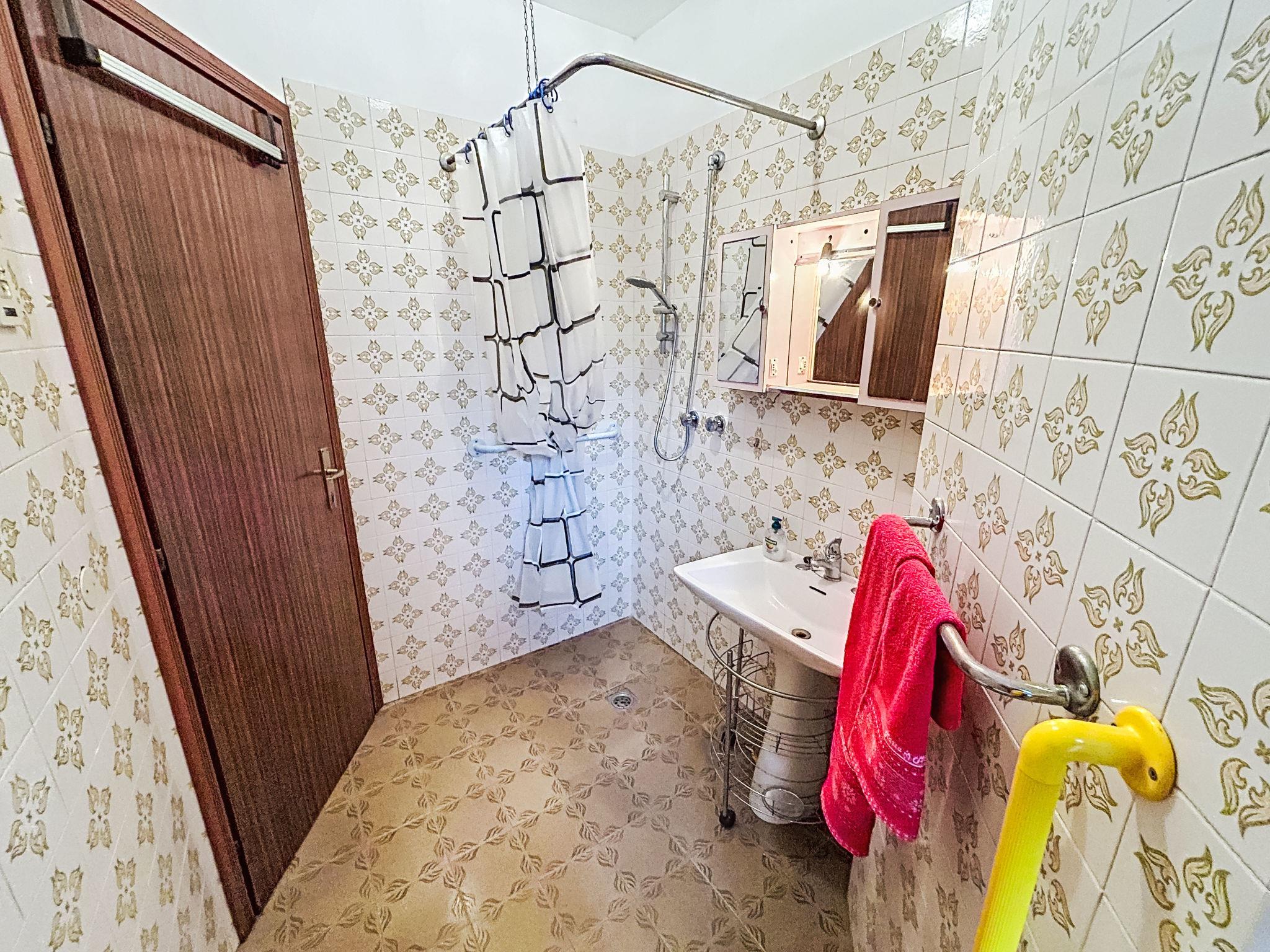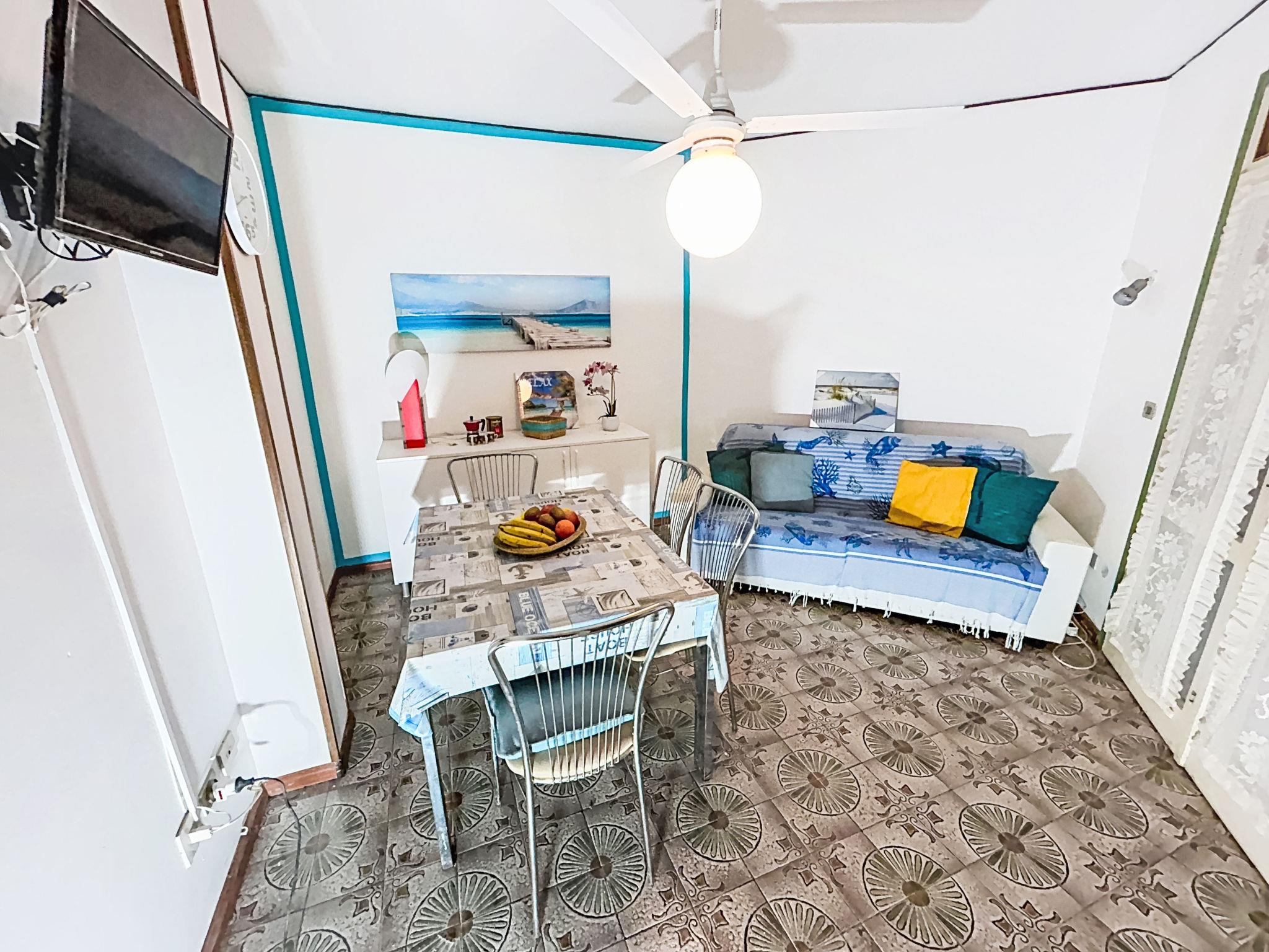 3-Zimmer-Wohnung 70 m2 auf 2 Stockwerken im 1. Stock. Hell, einfach und zweckmässig eingerichtet: Wohn-/Esszimmer mit Esstisch und TV. Ausgang zum Garten. 1 Zimmer mit 1 Doppelbett. Kleine Kochnische (Backofen, Toaster, Wasserkocher, Mikrowelle). Dusche/Bidet/WC. Obergeschoss: 1 Zimmer mit 1 x 2 Etagenbetten, 1 Doppelbett. Ausgang zur Terrasse. Dusche/Bidet/WC. Klimaanlage, Warmluftheizung. Gartensitzplatz, Garten. Terrassenmöbel. Zur Verfügung: Waschmaschine. Bitte beachten: geeignet für Familien. Nichtraucher-Unterkunft. Eigener Eingang. IT027034B4E7EHVG64