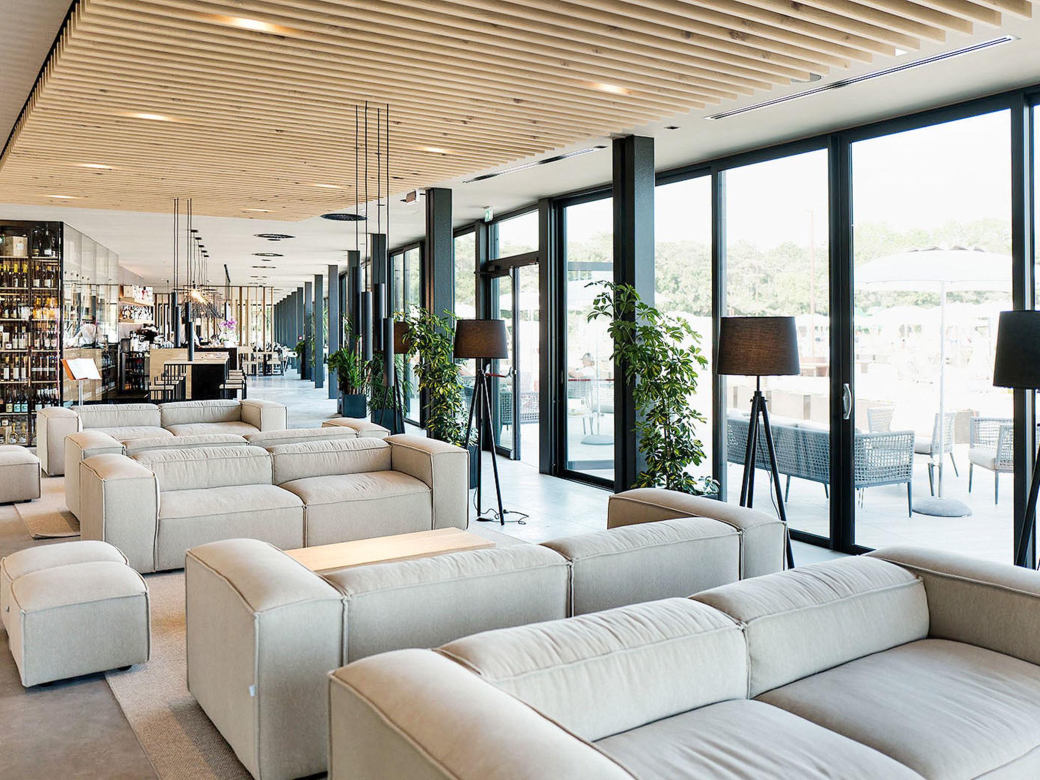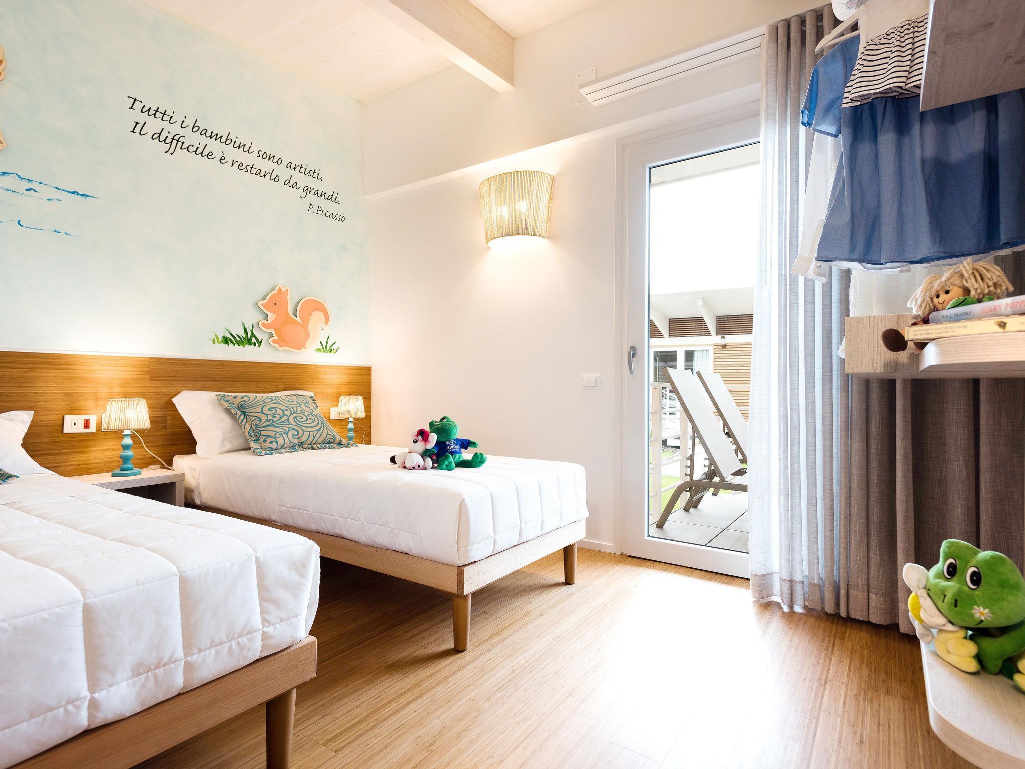 Grosse, kinderfreundliche, moderne Ferienanlage "Lino delle Fate Eco Village". 290 Wohnungen in der Residenz. Im Ortsteil Bibione-Lido dei Pini, 1.8 km vom Zentrum von Bibione, 13 km vom Zentrum von Lignano, 100 km vom Zentrum von Venezia, 450 m vom Meer, 450 m vom Strand. Zur Mitbenutzung: Grundstück 25 ha, Park, gepflegter Garten mit Rasen und Pflanzen, Biotop, Schwimmbad (1'000 m2, saisonale Verfügbarkeit: 28.Mar. - 02.Nov.). Kinderbecken, Aussendusche, Privatstrand, Sprudelbad, Kinderspielplatz. In der Anlage: Restaurant, Bar, Waschmaschine, Wäschetrockner (zur Mitbenutzung, extra), Fahrradverleih. Wäschewechsel 1 mal wöchentlich. Handtuchwechsel 2 mal wöchentlich. Wohnungsreinigung 1 mal wöchentlich. Frühstück und Halbpension möglich (extra). Gemeinschaftsgarage. Zentralparkplätze. E-Ladestation. Einkaufsgeschäft, Lebensmittelgeschäft 300 m, Bushaltestelle 900 m, Bahnstation "Latisana (Venezia-Trieste)" 21 km, Sandstrand 700 m, Thermalbad "Bibione Thermae" 3.5 km. Golfplatz (18 Loch) 8 km. Nahe gelegene Sehenswürdigkeiten: Oasi Naturalistica Val Grande 3.5 km, Golf Club Lignano, 20 % reduction on, green fee. Bitte beachten: autofreie Ferienanlage. Animation in der Saison. Geeignet für Familien. Von ca. 12.04-02.11. sind jeweils 2 Sonnenliegen und 1 Sonnenschirm pro Wohnung im Mietpreis enthalten.