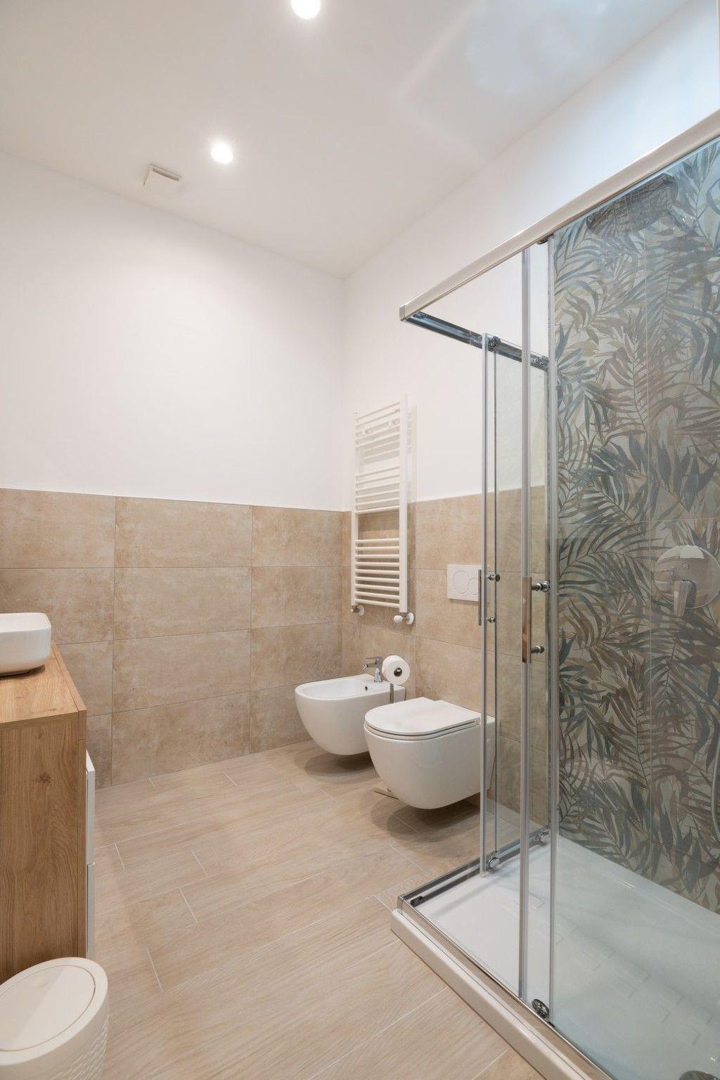 Das Innere der Wohnung ist komfortabel und praktisch eingerichtet. Sie verfügt über zwei Schlafzimmer, darunter ein 15 m² großes Doppelzimmer mit eigenem Bad mit Chromotherapie-Dusche, Kühlschrank und Fernseher, die Privatsphäre und Komfort garantieren. Die gut ausgestattete Küche verfügt über ein Cerankochfeld, einen elektrischen Backofen, eine Spüle, eine Filter-, Kapsel- oder Kapselkaffeemaschine sowie einen praktischen Wasserkocher, um alle kulinarischen Bedürfnisse zu erfüllen.