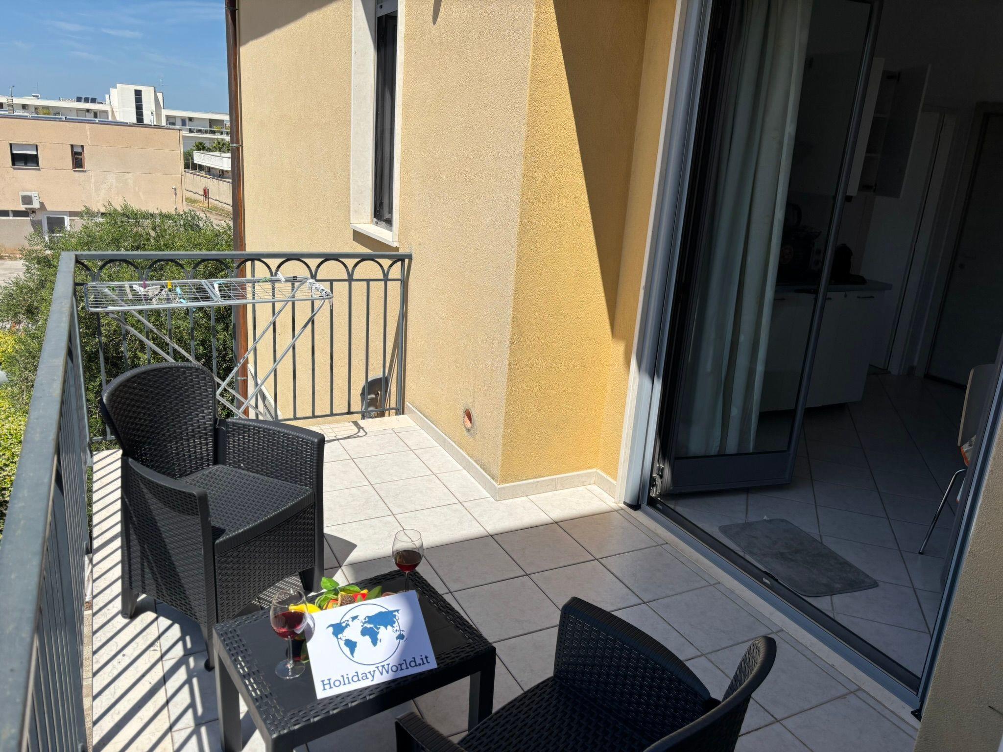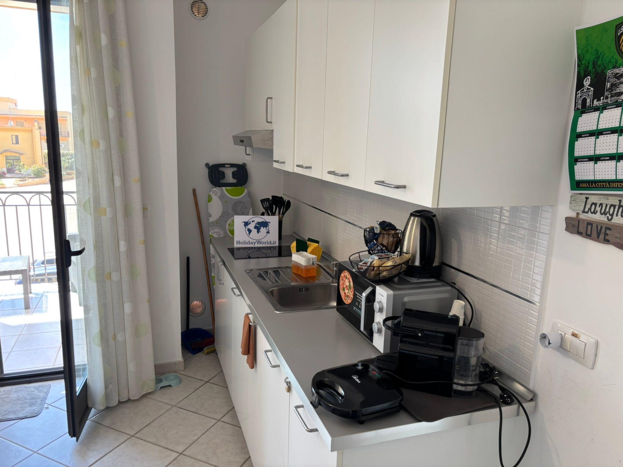 Die Wohnung befindet sich im ersten Stock und ist so konzipiert, dass sie Ihnen ein echtes Rundum-Gastfreundschaftserlebnis bietet, bei dem sich Einfachheit und Technologie mit mediterraner Wärme verbinden. Sie finden einen hellen Wohnbereich, eine ausgestattete Küchenzeile, einen funktionalen Essbereich, einen Schlafbereich mit einem Doppelbett und einem Etagenbett, eine Klimaanlage und einen Smart-TV vor. Das eigene Bad ist mit Dusche und Bidet ausgestattet. Der private Balkon mit Blick auf die Natur