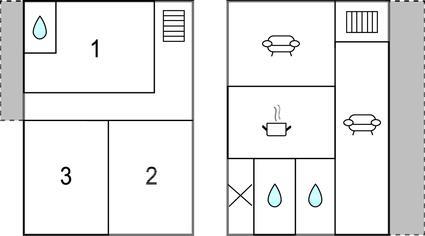 Badezimmer 4m2 (nr. 1) - WC. Warmes und kaltes Wasser. Dusche