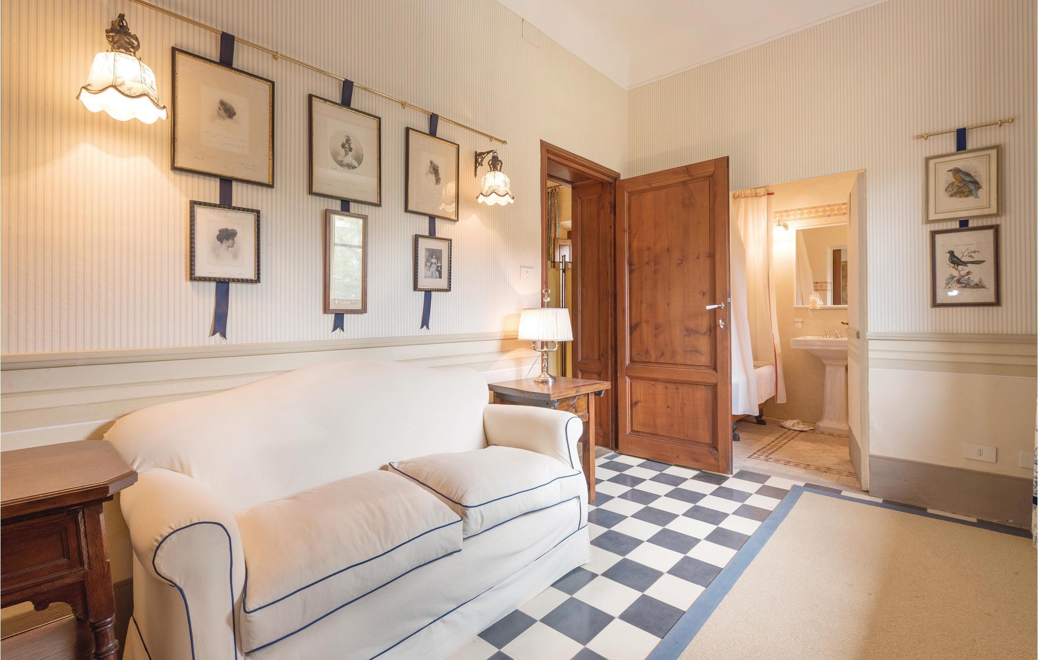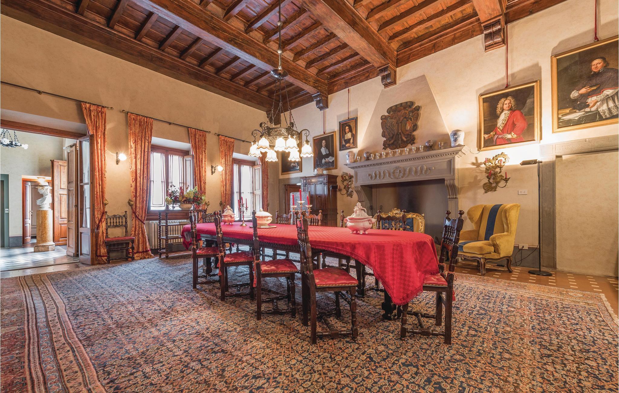 Wenn Sie davon träumen, Ihren Urlaub in einem authentischen Herrenhaus mit privatem Pool inmitten der wunderschönen Landschaft der Toskana zu verbringen, ist dies der ideale Ort für Sie! Die Villa, die ca. 7 km vom hübschen Ort Borgo San Lorenzo (alle Dienstleistungen und Geschäfte aller Art) entfernt liegt, ist sehr geräumig. Mit seinen 6 Schlafzimmern und 5 Bädern ist die Unterkunft ideal für mehrere Familien oder Gruppen von Freunden, die ihren Urlaub zusammen verbringen möchten. Von dieser dreistöckigen Villa (mit Aufzug) mit den charakteristischen architektonischen Merkmalen ihrer Zeit, die teilweise mit Antiquitäten eingerichtet und mit authentischen Dekorationen geschmückt ist, werden Sie sicherlich die großen Innen- und Außenräume, aber auch den modernen Komfort, die äußere Loggia mit Brennofen, das Spielzimmer und das Billardzimmer und natürlich den schönen bohnenförmigen Pool schätzen! Entspannen Sie sich im Park von ca. 20.000 m2, sonnen Sie sich um den Pool, lassen Sie Ihre Kinder in völliger Freiheit spielen und organisieren Sie dann einen Grillabend oder kochen Sie eine echte italienische Pizza! Aufgrund der günstigen Lage der Villa können Sie die wichtigsten Kunststädte der Toskana, wie Florenz, Siena, Lucca, Pisa leicht erreichen. Vom Bahnhof Borgo San Lorenzo (7 km entfernt) sind auch Bahnverbindungen möglich. Entfernungen: Florenz 20 km, Autobahnanschluss Barberino di Mugello 22 km, San Gimignano 95 km, Siena 115 km, Lucca 105 km, Pisa 125 km. Auf der Rückseite der Villa befindet sich das Domizil des Hausmeisters, der für die An-und Abreisen der Gäste, sowie für die Park- und Poolwartung zuständig ist. Innerhalb des Parks befindet sich ein eingezäuntes Landhaus, in dem eine Familie lebt. Im ersten Stock gibt es einen Frühstücksraum mit TV, von wo aus eine Treppe zu einem Wasch- / Bügelraum führt.