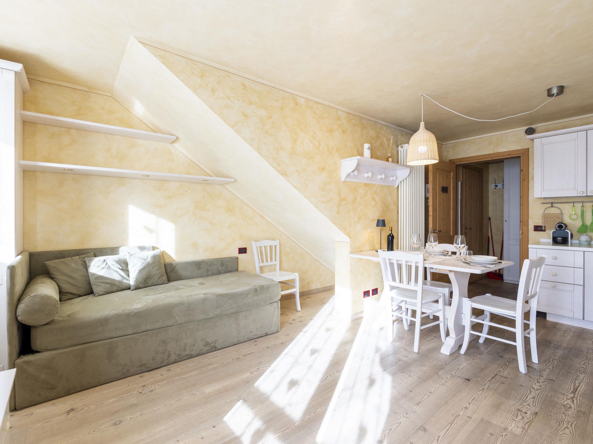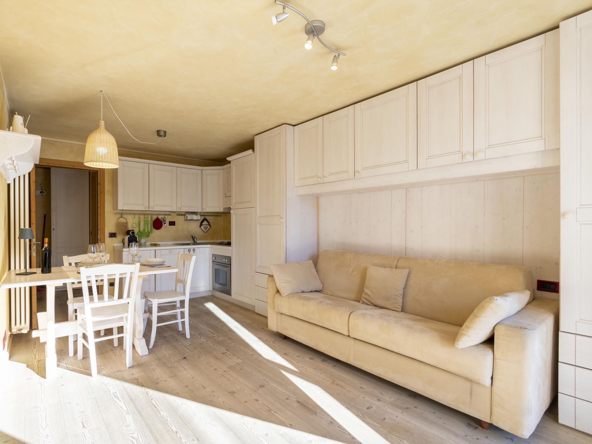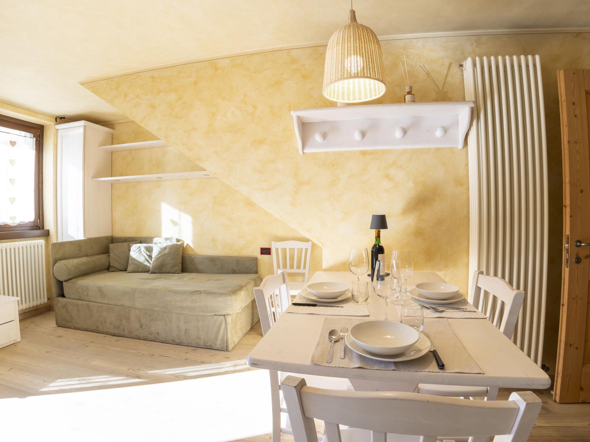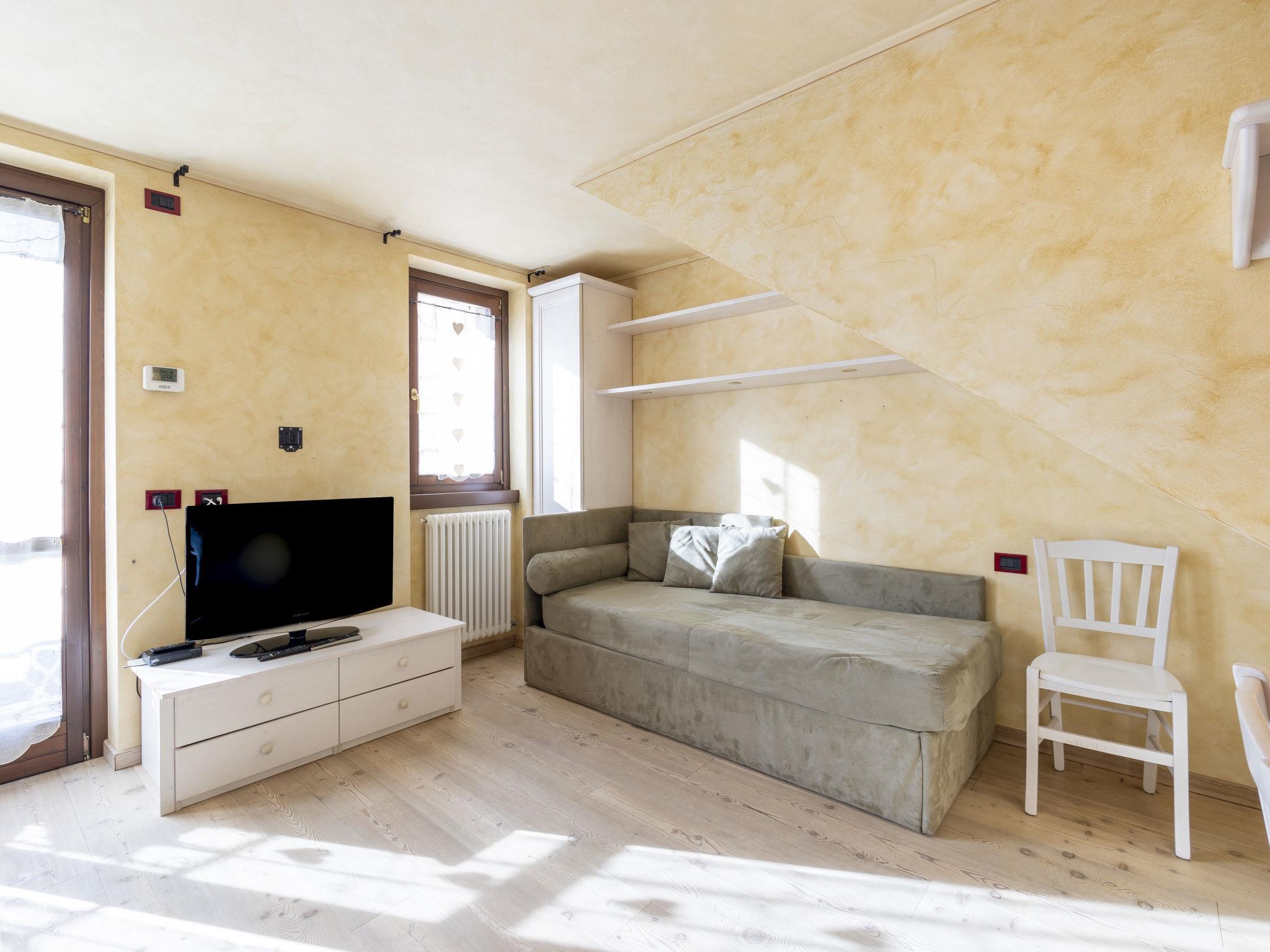 1-Zimmer-Studio 38 m2 im 1. Stock. Zweckmässig und komfortabel eingerichtet: Wohn-/Esszimmer mit 1 Doppeldiwanbett, Esstisch und TV. Ausgang zum Balkon. Kochnische (4 Kochplatten, Backofen, Geschirrspüler, Toaster, Wasserkocher, Mikrowelle, elektrische Kaffeemaschine, Kapseln für die Kaffeemaschine (Nescafè Dolcegusto) gratis). Dusche/Bidet/WC. Parkettboden. 2 Balkone. Balkonmöbel. Sicht auf die Berge und das Städtchen. Zur Verfügung: Kinderhochstuhl, Babybett, Haartrockner. Internet (Wireless LAN, gratis). Bitte beachten: geeignet für Familien. Nichtraucher-Unterkunft, kein Parkplatz. Maximal 1 Haustier/Hund erlaubt. IT014009B4EVT3NEMU