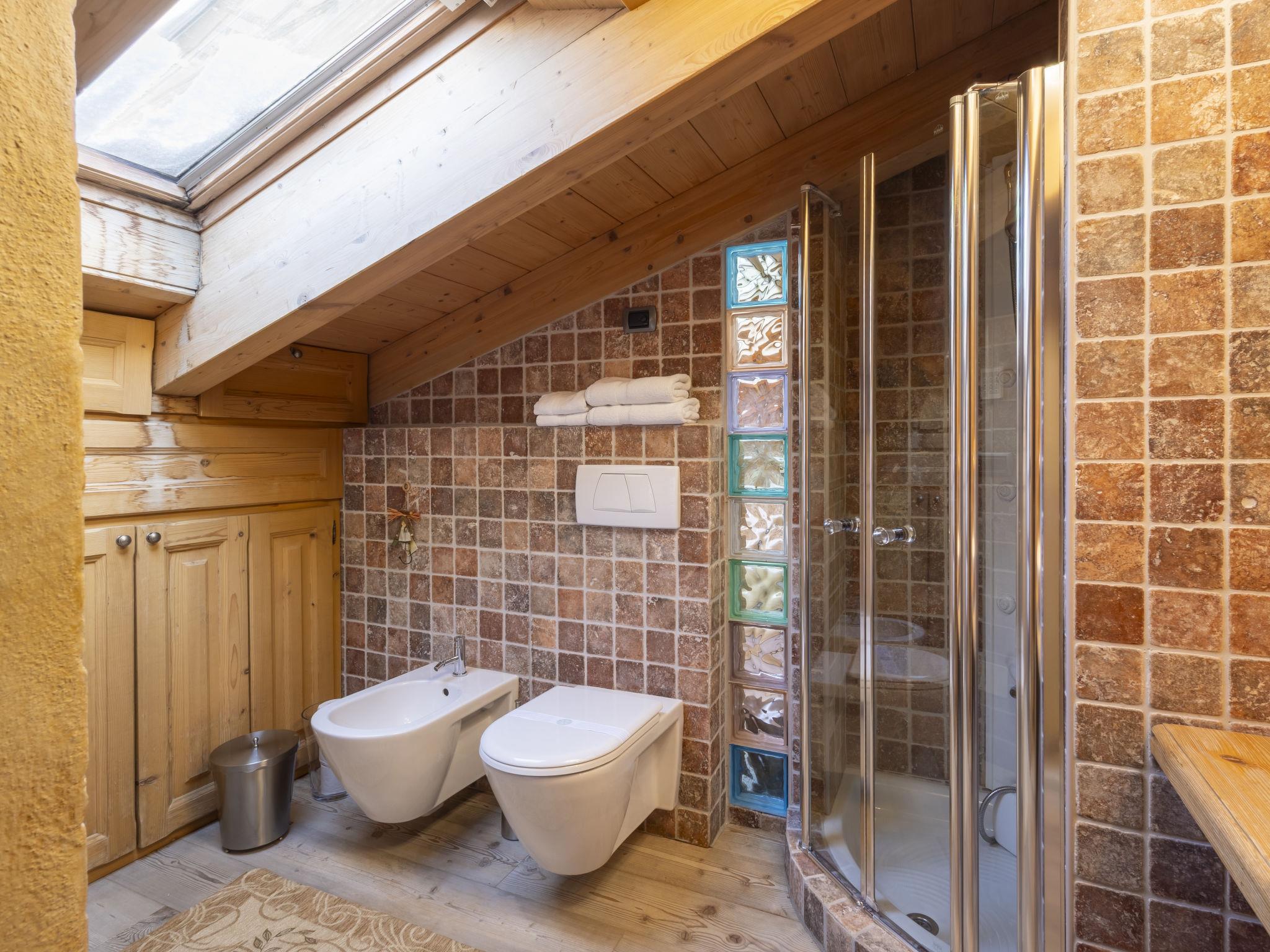 4-Zimmer-Attikawohnung 110 m2 im 2. Stock. Geräumig und hell, abgeschrägt, stilvoll und mit viel Holz eingerichtet: grosses Wohn-/Esszimmer mit offenem Kamin (nur Deko), Esstisch und TV. Ausgang zum Balkon. 1 abgeschrägtes Doppelzimmer mit Bad/Bidet/WC, Doppelwaschbecken und Sprudelbad. 1 abgeschrägtes Zimmer mit 1 Bett. Ausgang zum Balkon. 1 abgeschrägtes Zimmer mit 2 Betten. Ausgang zum Balkon. Grosse Kochnische (Backofen, Geschirrspüler, 5 Flammen, Toaster, Wasserkocher, Mikrowelle, Tiefkühler, elektrische Kaffeemaschine, Kapseln für die Kaffeemaschine (Nespresso) gratis) mit Esstisch. Ausgang zum Balkon. Dusche/Bidet/WC, Hydromassage-Dusche. Heizung. Parkettboden. 4 Balkone. Balkonmöbel. Panoramasicht auf die Berge und das Tal. Zur Verfügung: Waschmaschine, Bügeleisen, Kinderhochstuhl, Babybett, Haartrockner. Internet (WLAN, gratis). Parkplatz (überdacht) beim Haus. Bitte beachten: geeignet für Familien. Nichtraucher-Unterkunft. Maximal 1 Haustier/Hund erlaubt. Rauchmelder, Feuerlöscher, kein Fahrstuhl. IT014009B4U57S6GTH