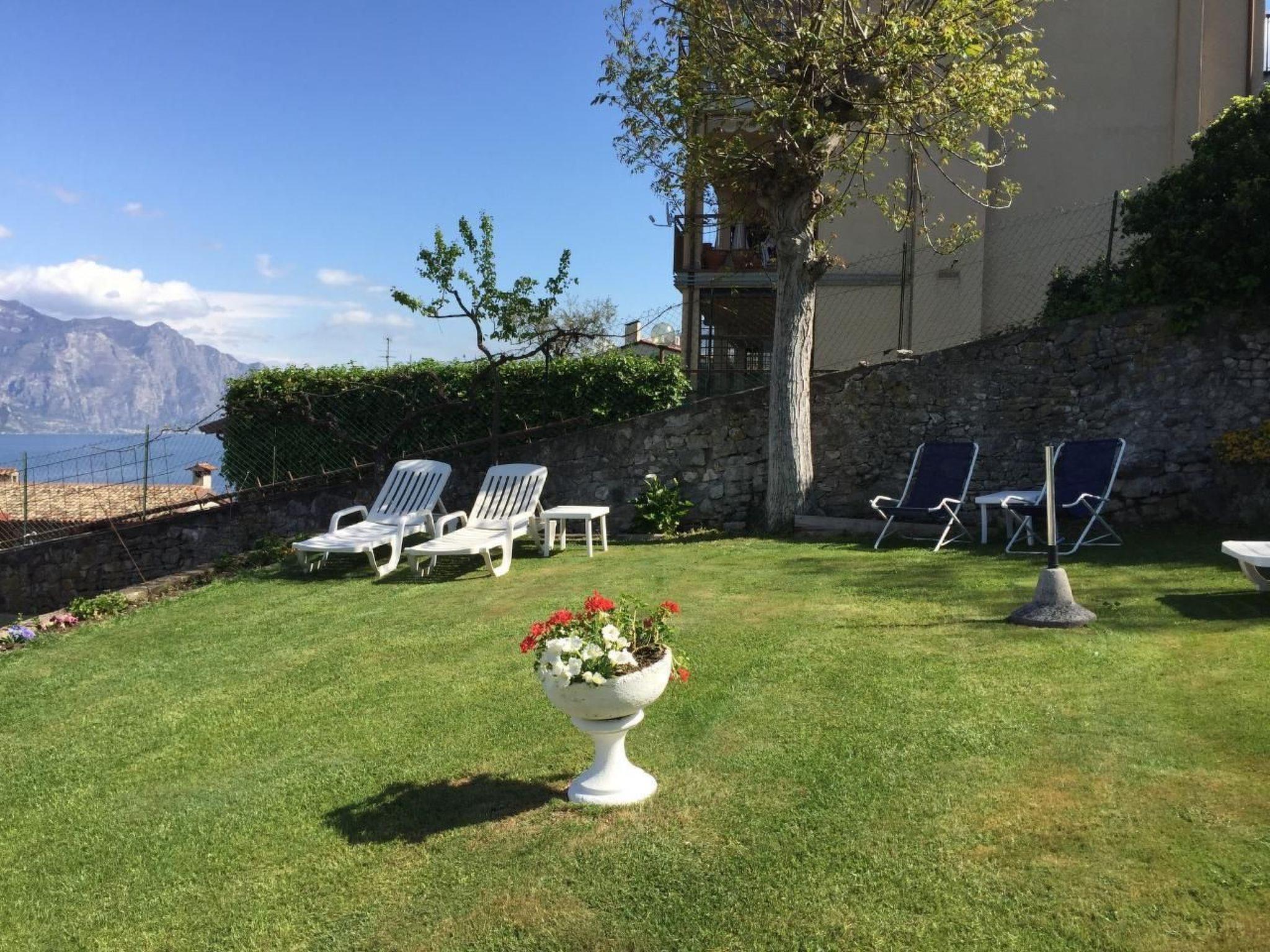 Der Garten ist ein Traum, sehr gepflegt, Liegen, Holzbänke, Kamin mit Grill, ein Blick über den Gardasee auf der Westeite, wie ein Postkartenmotiv.Schoene Hanlage mit Blick auf den See, sehr ruhig und ohne Verkehr in der Naehe.Haustiere sind erlaubt. Für zwei Personen ist dieses kleine Appartment völlig ausreichend. Es wurde kürzlich komplett renoviert.Die Deckenhöhe beträgt 2,10 m.