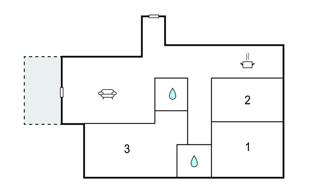 Badezimmer 3m2 (nr. 1) - WC. Warmes und kaltes Wasser. Dusche