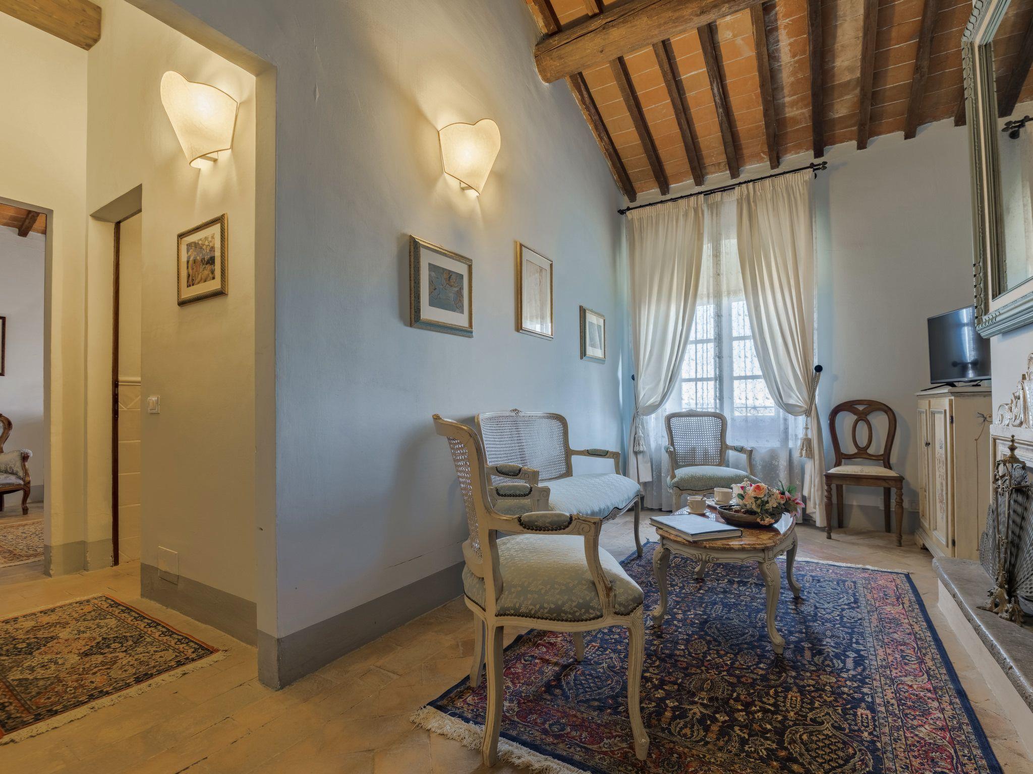 Diese fantastische Villa ist von Olivenhainen und Gärten umgeben und ist ideal für einen unvergesslichen, erholsamen Urlaub in einer der schönsten Landschaften der Toskana: dem Val di Chiana. Hier befinden Sie sich in der Nähe von berühmten Kunst- und Geschichtsstädten wie Florenz, Siena, Cortona, Assisi, Montepulciano und dem Chianti-Gebiet. Die Villa hat ihren ursprünglichen architektonischen Stil bewahrt, mit Terrakottaböden, Türen und Fenstern mit Steinrahmen und Decken mit Holzbalken und Ziegeln. Die antike Einrichtung der Innenräume, angereichert mit alten Gegenständen und viel Liebe zum Detail, trägt zu einer exklusiven Atmosphäre bei.