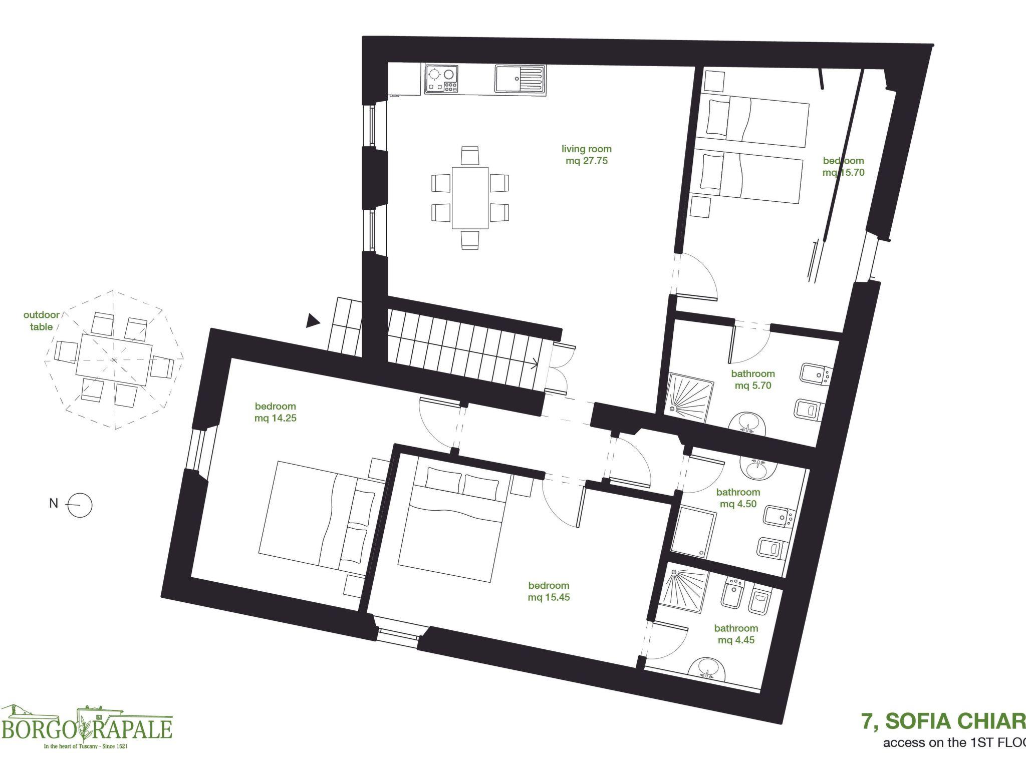 Borgo Rapale befindet sich im Herzen des Chianti, wo Weinberge und familiengeführte Weinkeller ihre Türen für exklusive Verkostungen öffnen. In unmittelbarer Nähe von Borgo Rapale, in der Landschaft, in der das beste florentinische Steak zubereitet wird, befinden sich mehr als zehn Restaurants, die in 10 Autominuten zu erreichen sind und authentische, nicht touristische Gerichte servieren, die von Generation zu Generation weitergegeben werden. Die kürzlich renovierten natürlichen Thermalquellen von Rapolano mit ihren Schönheitsbehandlungen und Thermalbecken sind nur 20 Minuten entfernt.