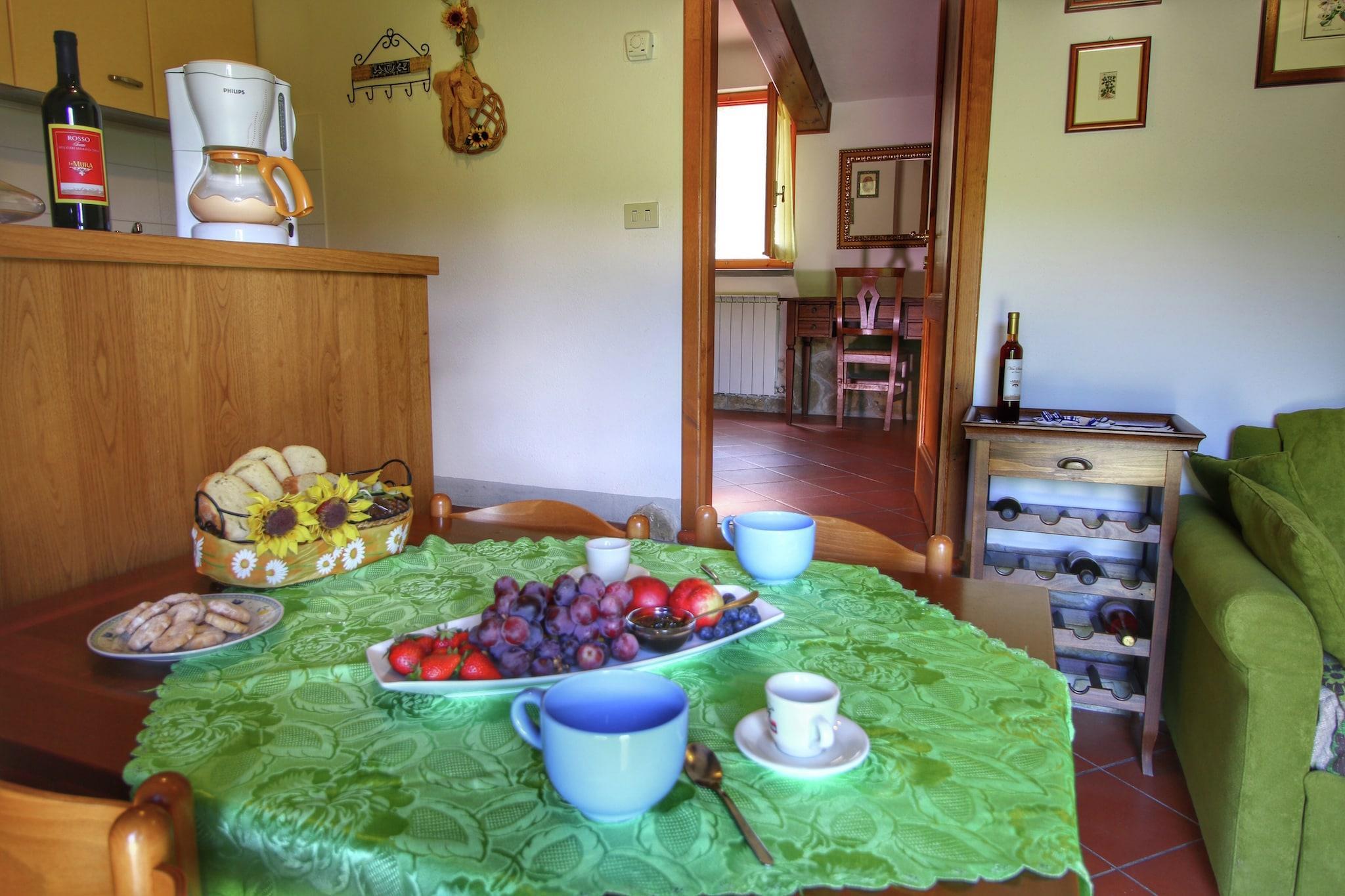 Dieses Bauernhaus in Bucine verfügt über ein Schlafzimmer und bietet Platz für drei Gäste. Es bietet einen Gemeinschaftspool und Zentralheizung für Familien. Genießen Sie hier köstlichen Wein. Die Städte Arezzo (25 km), Siena (35 km), Florenz (55 km) und San Gimignano (70 km) liegen in der Nähe und laden zum Erkunden ein. Das Meer ist 80 km entfernt und lädt zu einem entspannten Tag am Strand ein. Im Umkreis von 3 km finden Sie alle Annehmlichkeiten wie Supermarkt, Stadtzentrum, Restaurants und Nachtleben. Das Bauernhaus bietet Ihnen eine gemütliche Zentralheizung und ein Wohnzimmer mit einem Schlafsofa und einem Fernseher zum Entspannen. Entspannen Sie im Garten und beobachten Sie Ihre Kinder beim Spielen im Grünen. Ihr Fahrzeug können Sie sicher auf dem Grundstück parken. Das Mitbringen eines Haustieres ist auf dem Bauernhaus gestattet. Fahrräder stehen Ihnen ebenfalls zur Verfügung. Öffentliche Verkehrsmittel sind 3 km entfernt.