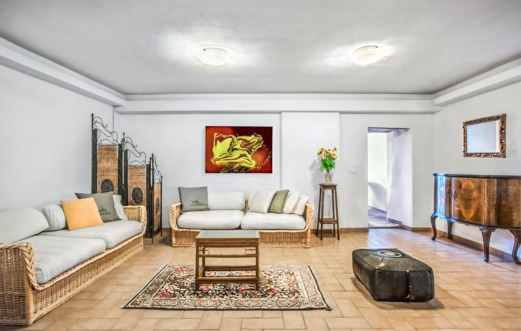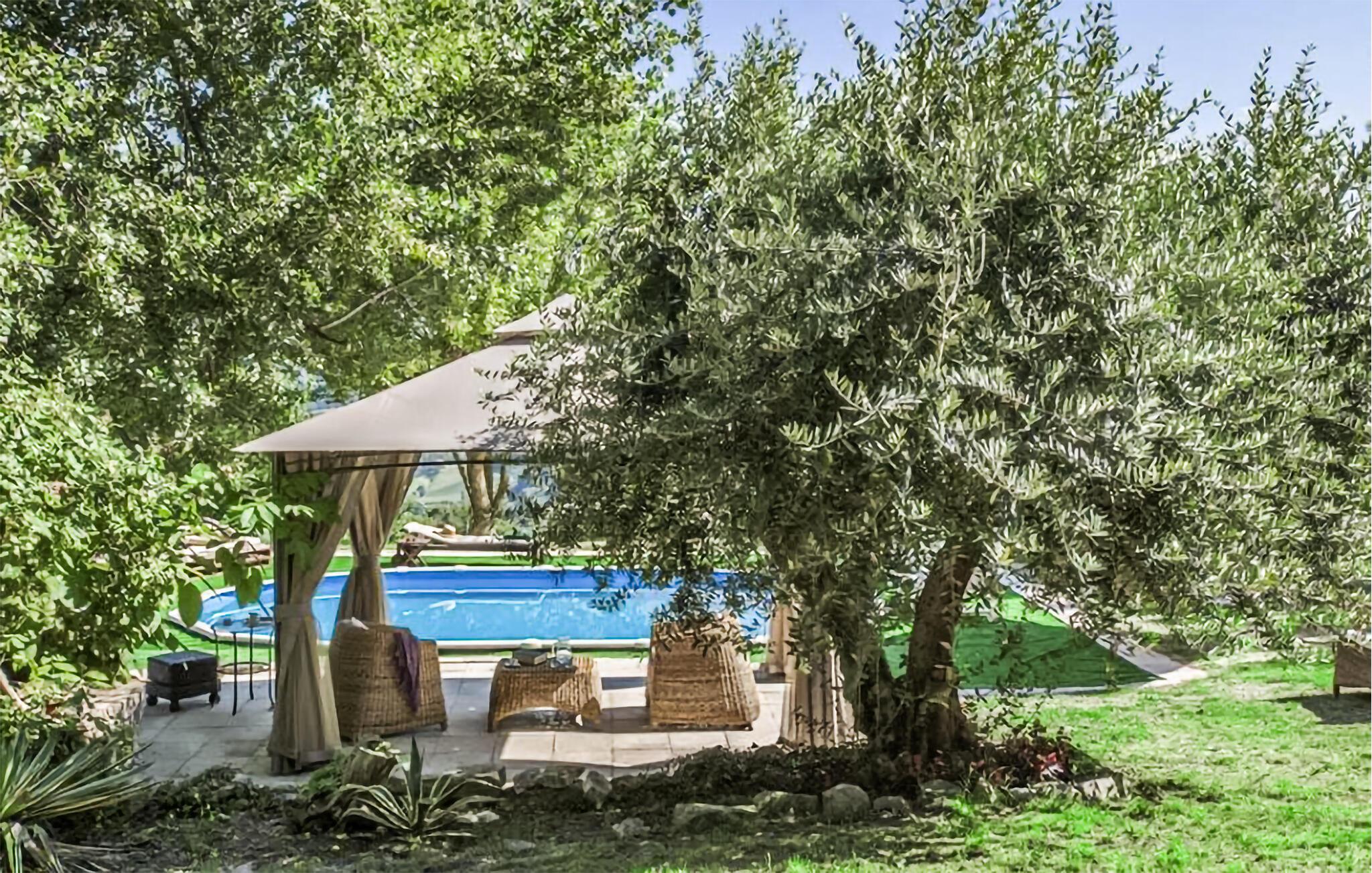 Der große, idyllische Garten bietet lauschige Schattenplätze für ein Glas Wein am Nachmittag sowie einen Pool, in dem Sie sich nach Lust und Laune erfrischen können. Tanken Sie neue Energie auf der Sonnenliege und vertiefen Sie sich auf bequemen Outdoor-Möbeln in Ihre Urlaubslektüre.