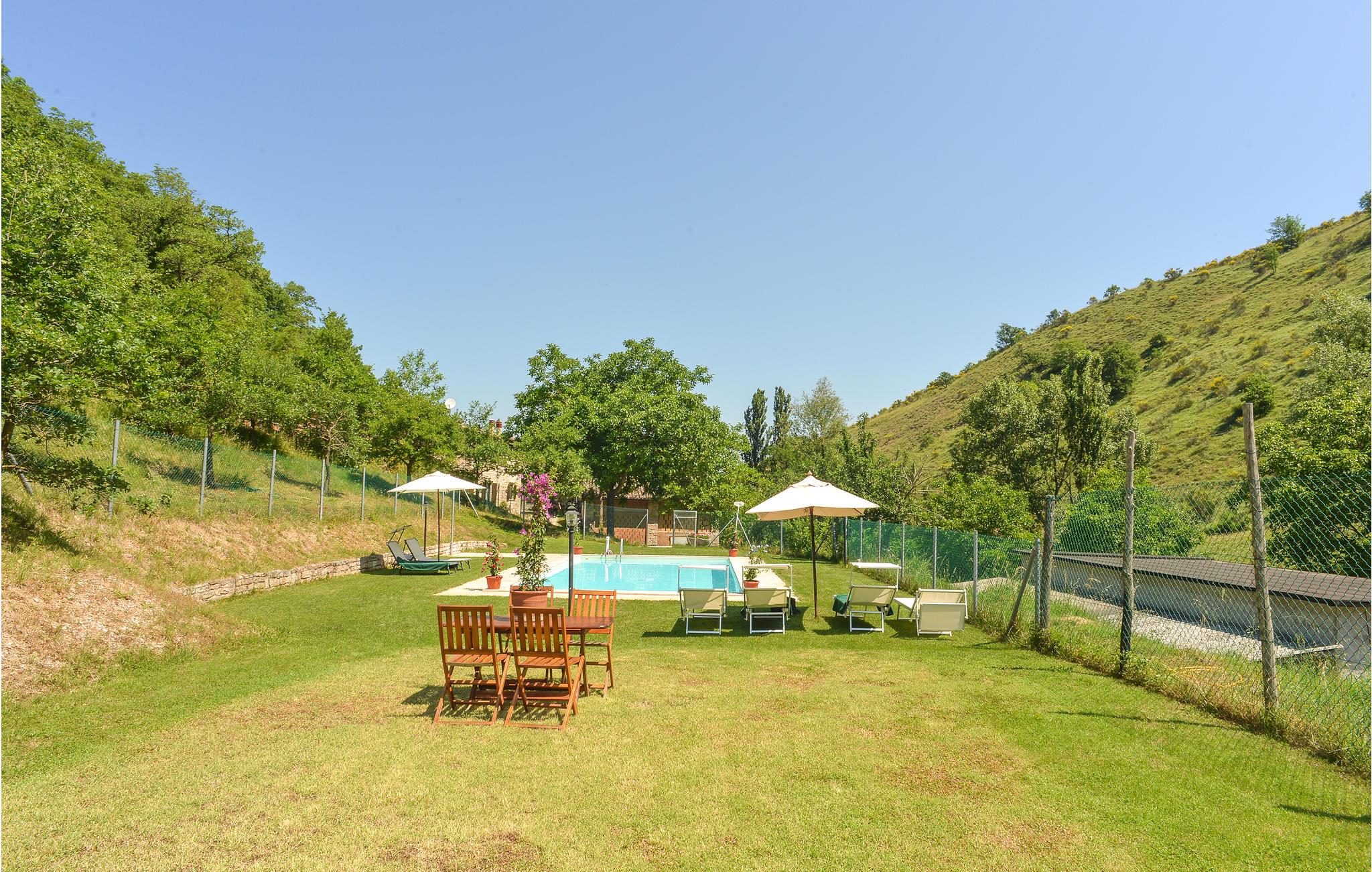 Genießen Sie einen erholsamen Urlaub in diesem Ferienhaus mit Pool.