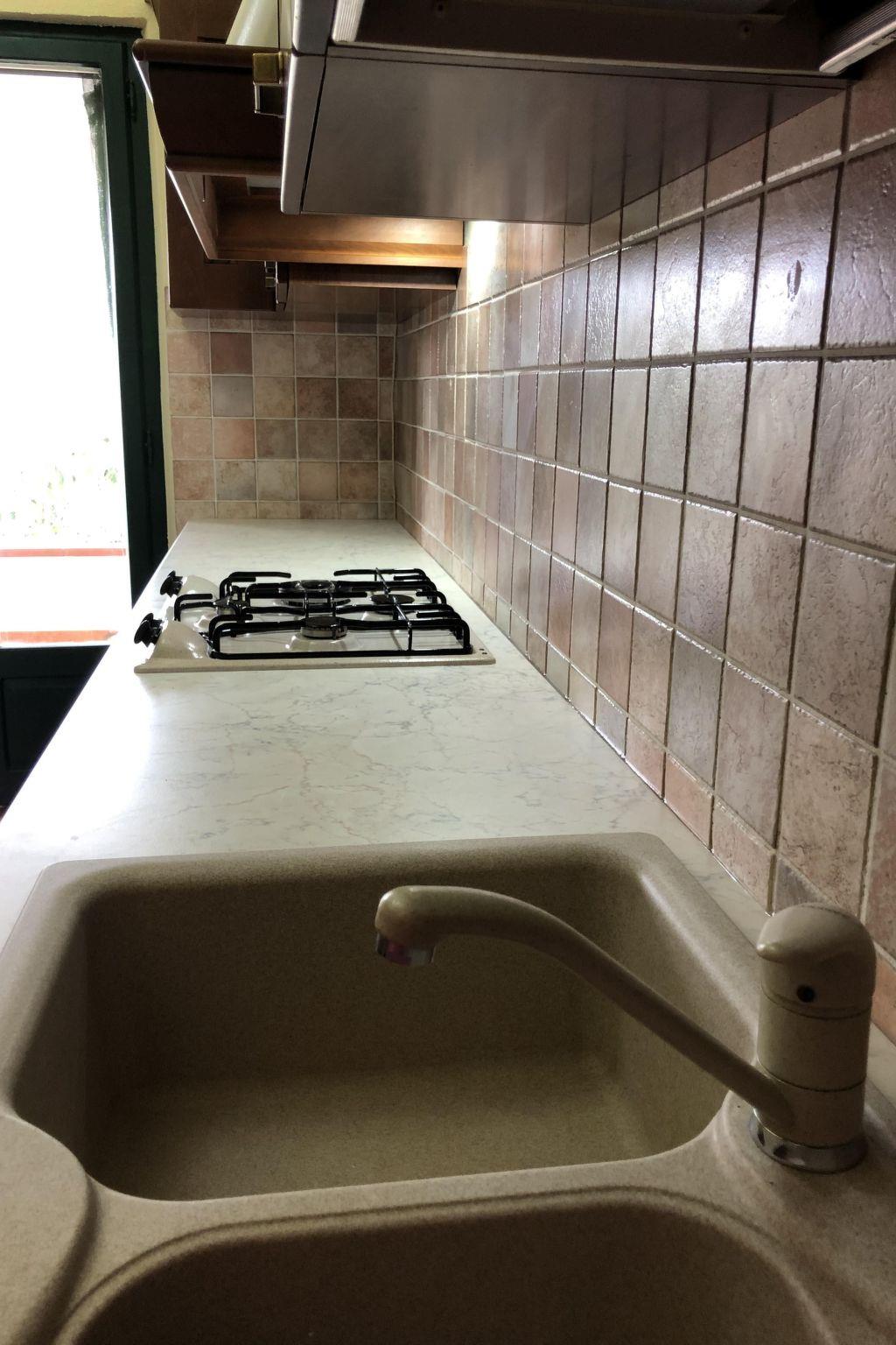 Die Wohnung verfügt über eine überdachte Loggia, auf der Sie im Freien essen können, ausgestattet mit Gartenmöbeln, einem Sonnenschirm und zwei Liegestühlen. Von hier aus können Sie auch das Panorama mit Blick auf das Meer genießen. Auf der Rückseite des Hauses gibt es einen weiteren Bereich mit Liegestühlen, Sonnenschirm usw. Das Grundstück ist umzäunt und verfügt über eine Außendusche.