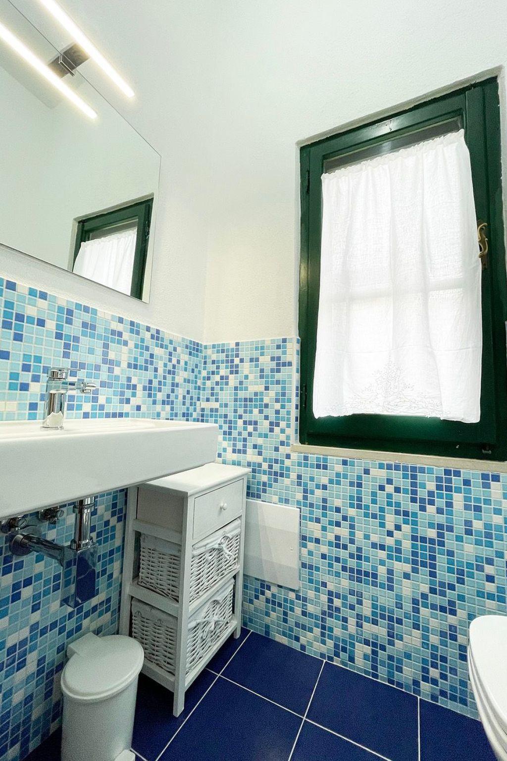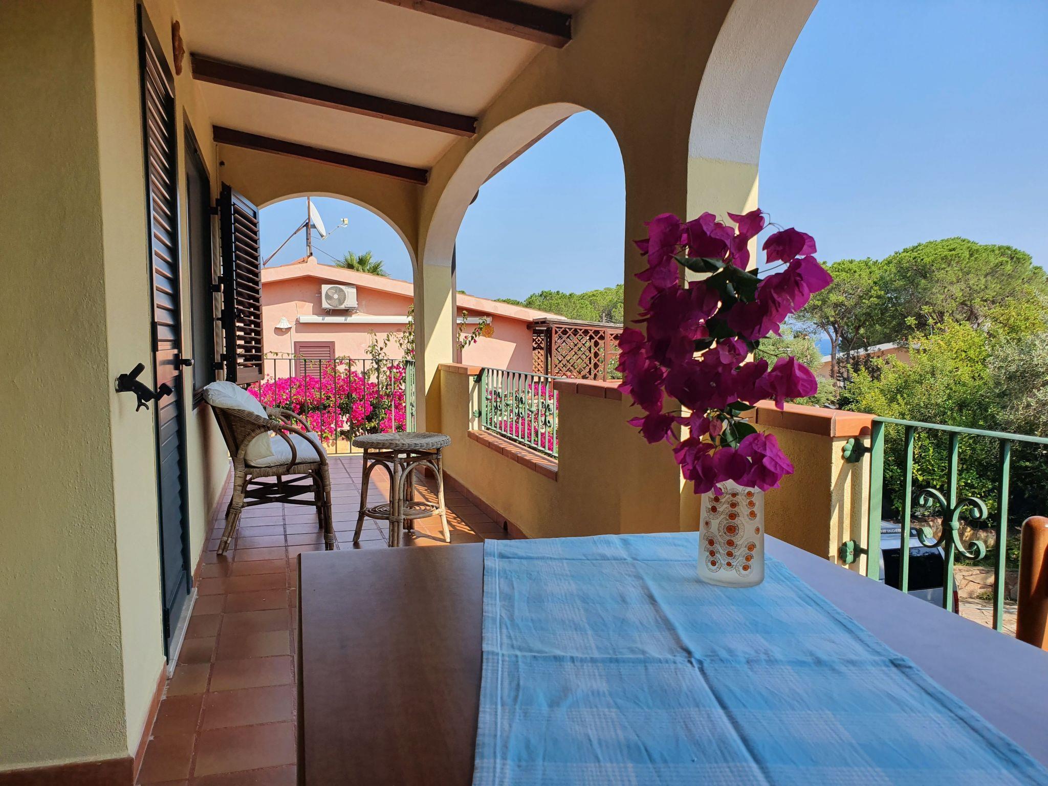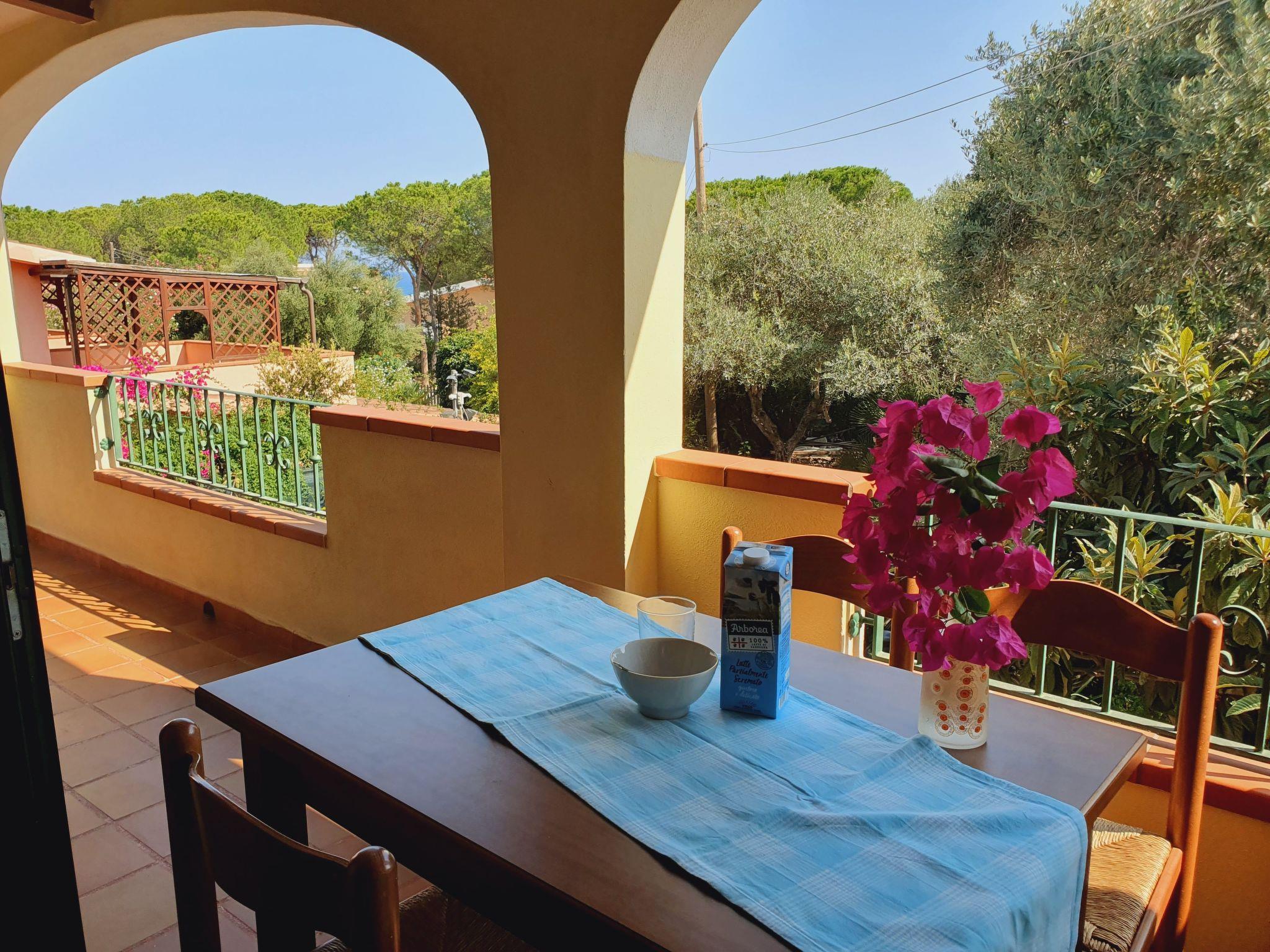 Wohnung mit privater Terrasse, mit Meerblick, 50 m vom Strand entfernt Die Wohnung im ersten Stock befindet sich ganz in der Nähe des Strandes von Sas Linnas Siccas in einer ruhigen Gegend, umgeben von einem Garten mit Olivenbäumen.