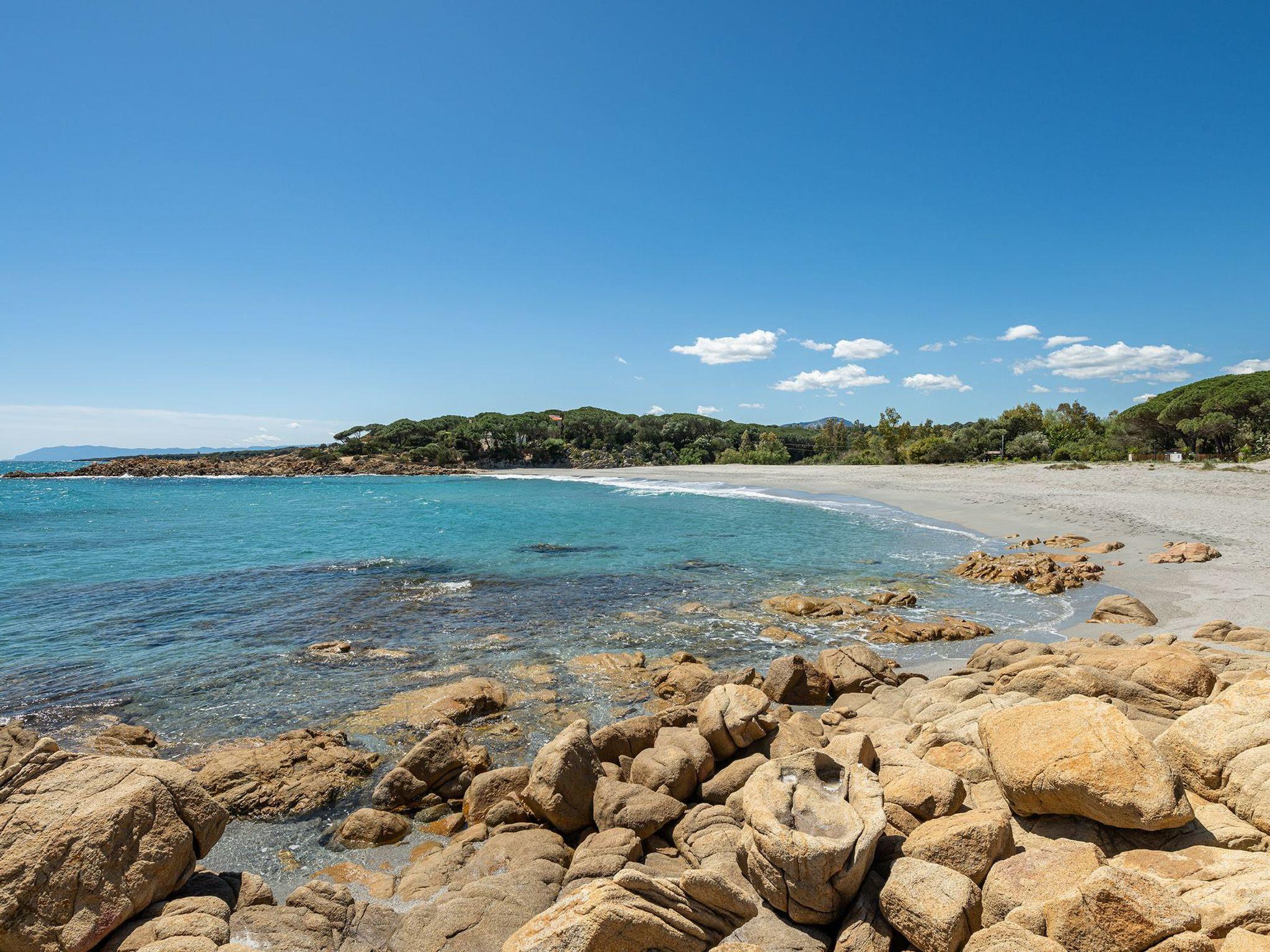 Das Anwesen wird durch einen reservierten Parkplatz und einen großen Garten mit Außendusche und Grillplatz vervollständigt, wo Sie angenehme Momente der Entspannung an der frischen Luft genießen können, berauscht von den typischen Düften der mediterranen Macchia.