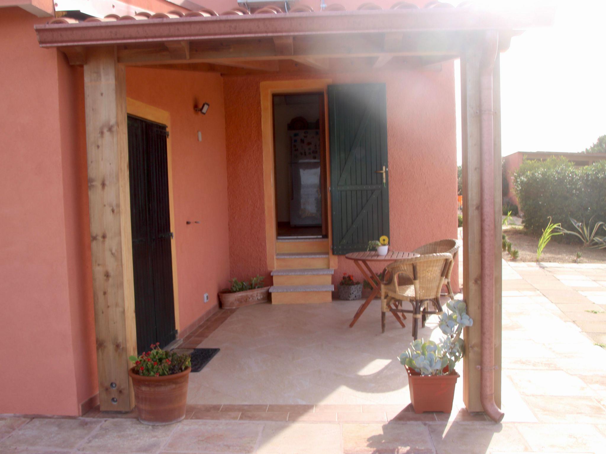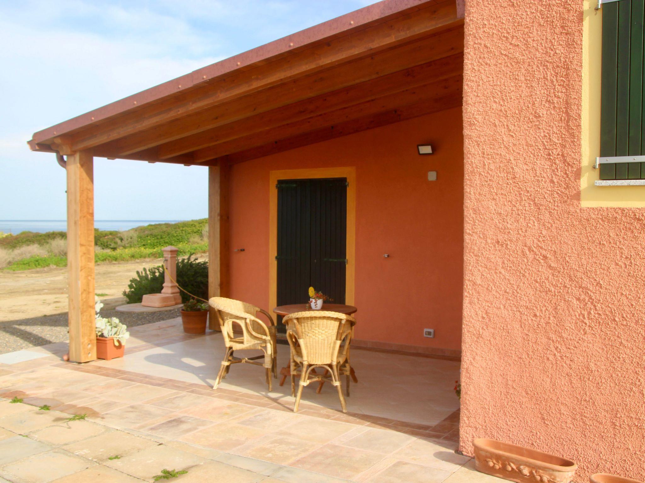 Im Außenbereich steht den Gästen eine überdachte Veranda mit Tisch und Stühlen zur Verfügung, ideal für Mahlzeiten im Freien mit Blick auf das Meer und die Insel San Pietro. Atemberaubende Sonnenuntergänge können auf dem weitläufigen Gelände bewundert werden, das einen mit Gartenstühlen ausgestatteten Aussichtspunkt sowie Hängematten und Liegestühle im Pinienhain für Momente der absoluten Entspannung umfasst. Das nächstgelegene Haus ist über 300 m entfernt, so dass absolute Ruhe garantiert ist.