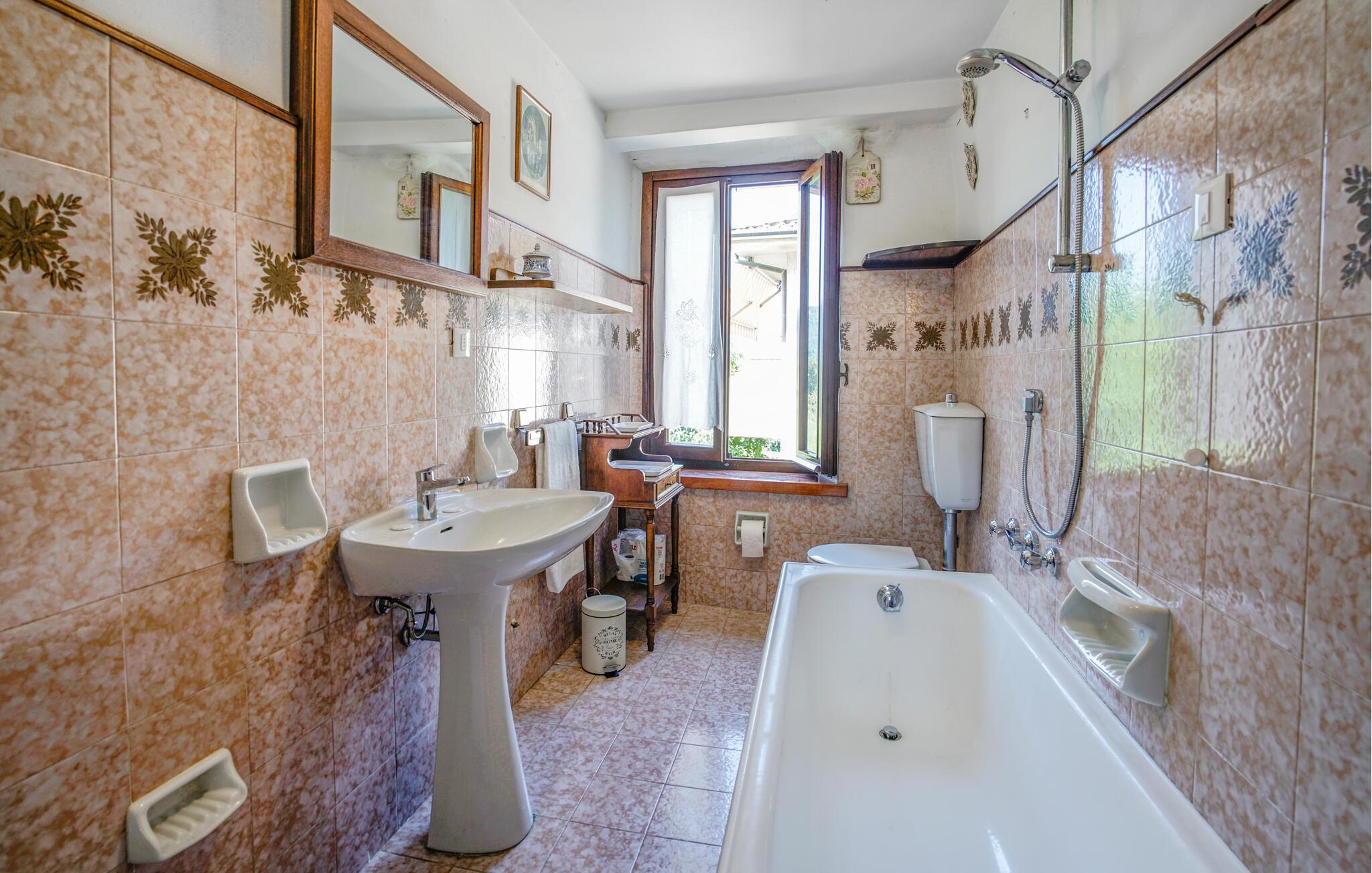 Badezimmer (nr. 1) - WC. Warmes und kaltes Wasser. Dusche und Badewanne