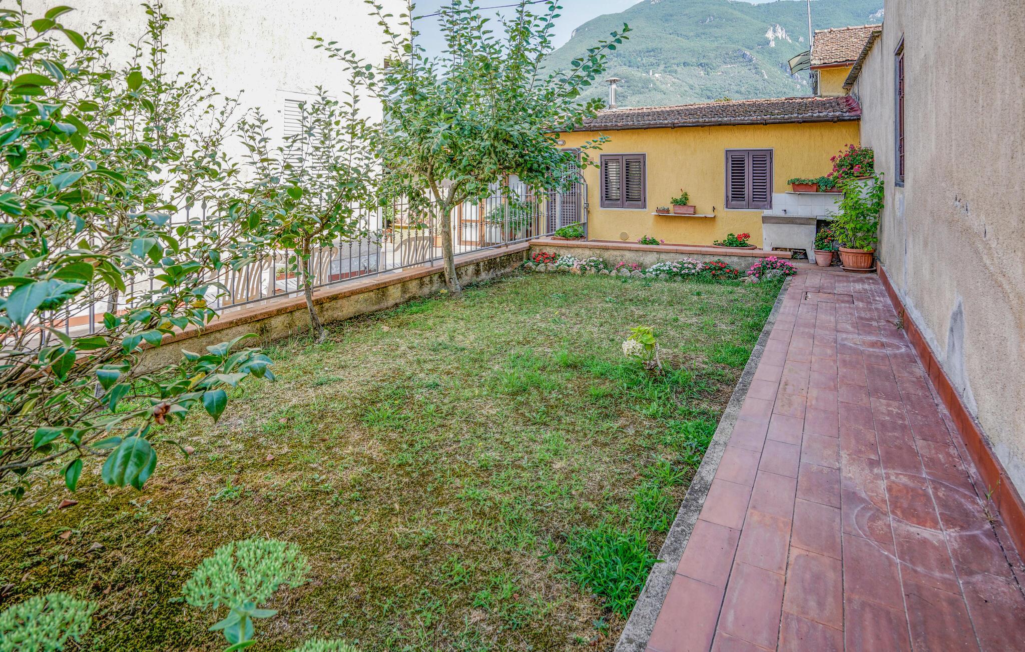 Genießen Sie einen Kaffee und ein paar Sonnenstrahlen im Garten am Haus.
