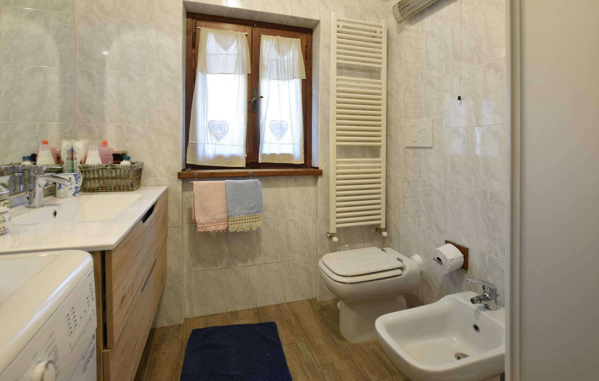 Eingebettet in die mediterrane Berglandschaft der Toskana und von einem romantischen Garten umgeben, wartet dieses charmante Ferienhaus darauf, Sie zu einem entspannten, naturverbundenen Urlaub einzuladen. Kochen Sie leckere Pastagerichte in der modernen, gut ausgestatteten Küche und servieren Sie diese im einladenden Essbereich. Freuen Sie sich auf Spieleabende im gemütlichen Wohnzimmer mit Terrakotta-Böden, Holzbalkendecke und Kamin oder schmökern Sie in einem guten Buch auf dem bequemen Sofa.