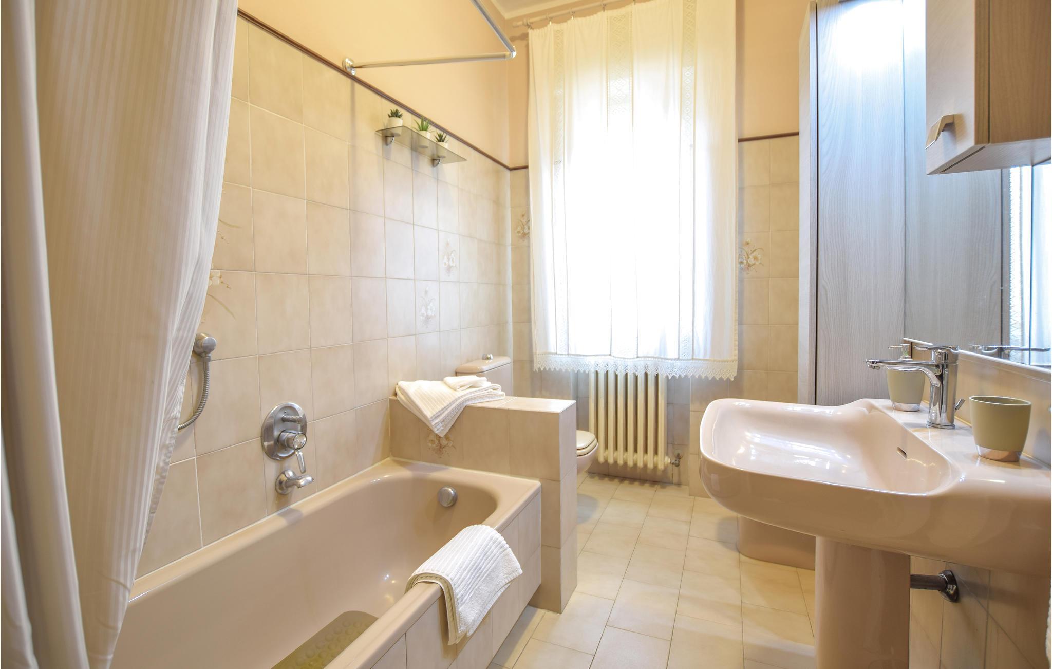 Badezimmer (nr. 1) - WC. Warmes und kaltes Wasser. Dusche und Badewanne