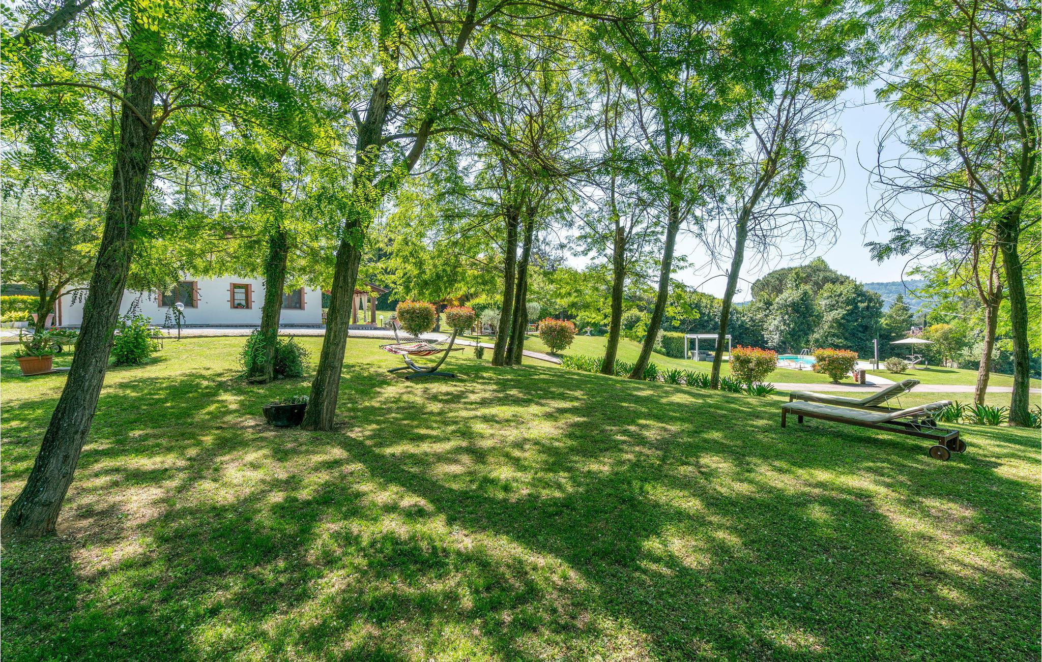 In einem eingezäunten Privatbesitz liegt dieses schöne Ferienhaus, nur 2 km vom malerischen Dorf Camaiore und 18 Km von den berühmten Sandstränden der Versilia entfernt. Das Feriendomizil verfügt über einen großen, angelegten Rasen mit schönem Swimmingpool mit Whirlpool, Steingrill und ausgestatteter Pergola für angenehme Mahlzeiten im Freien. Genießen Sie die ruhige Lage und den Panoramablick auf das Anwesen und den Wald! Diese Ferienunterkunft ist die ideale Lösung für diejenigen, die einen erholsamen Urlaub in Kontakt mit der Natur der Toskana verbringen möchten. Um fit zu bleiben, stehen Ihnen im Kellerraum Sportgeräte zur Verfügung. Empfehlenswert ist ein Ausflug in die wunderschönen Apuanischen Alpen, aus denen der berühmte weiße Marmor stammt. Einige Entfernungen für Aktivitäten und Ausflüge: Reitschule 4 km, die schönen Strände von Lido di Camaiore 9 km, Tennisplatz 9 km, Golfplatz 14 km. Zur bezaubernden Stadt Lucca mit intakter Stadtmauer und romanischen Kirchen sind es 22 km. Hier finden auch große Veranstaltungen statt wie das Lucca- Summer Festival mit Konzerten internationaler Künstler, und das Lucca-Comics, ein Muss für alle, die das Fantasy-Genre lieben. Bei Pisa (30 km) erwartet Sie die wunderschöne Piazza dei Miracoli mit dem Dom, Baptisterium und dem weltberühmten Schiefen Turm. Zur charmanten Stadt Florenz sind es 95 km. Hier, im Geburtsort der Renaissance, sollten Sie die beeindruckende Kathedrale Santa Maria del Fiore, den nahe gelegenen Glockenturm von Giotto, den Palazzo Vecchio, die Kirche Santa Croce und die einmalige Uffizi-Galerie mit ihren Meisterwerken besuchen! Im Preis inbegriffen sind die Serviceleistungen (dreimal pro Woche in den frühen Morgenstunden, die ungefähr zwei Stunden dauern), sowohl für den Gärtner zur Pflege des Gartens als auch für den spezialisierten Techniker, der mit der Reinigung und Überprüfung der chemischen Werte des Pools beauftragt ist. Zur Ihrer Verfügung steht auch ein Smart-TV mit Netflix-Verbindung.